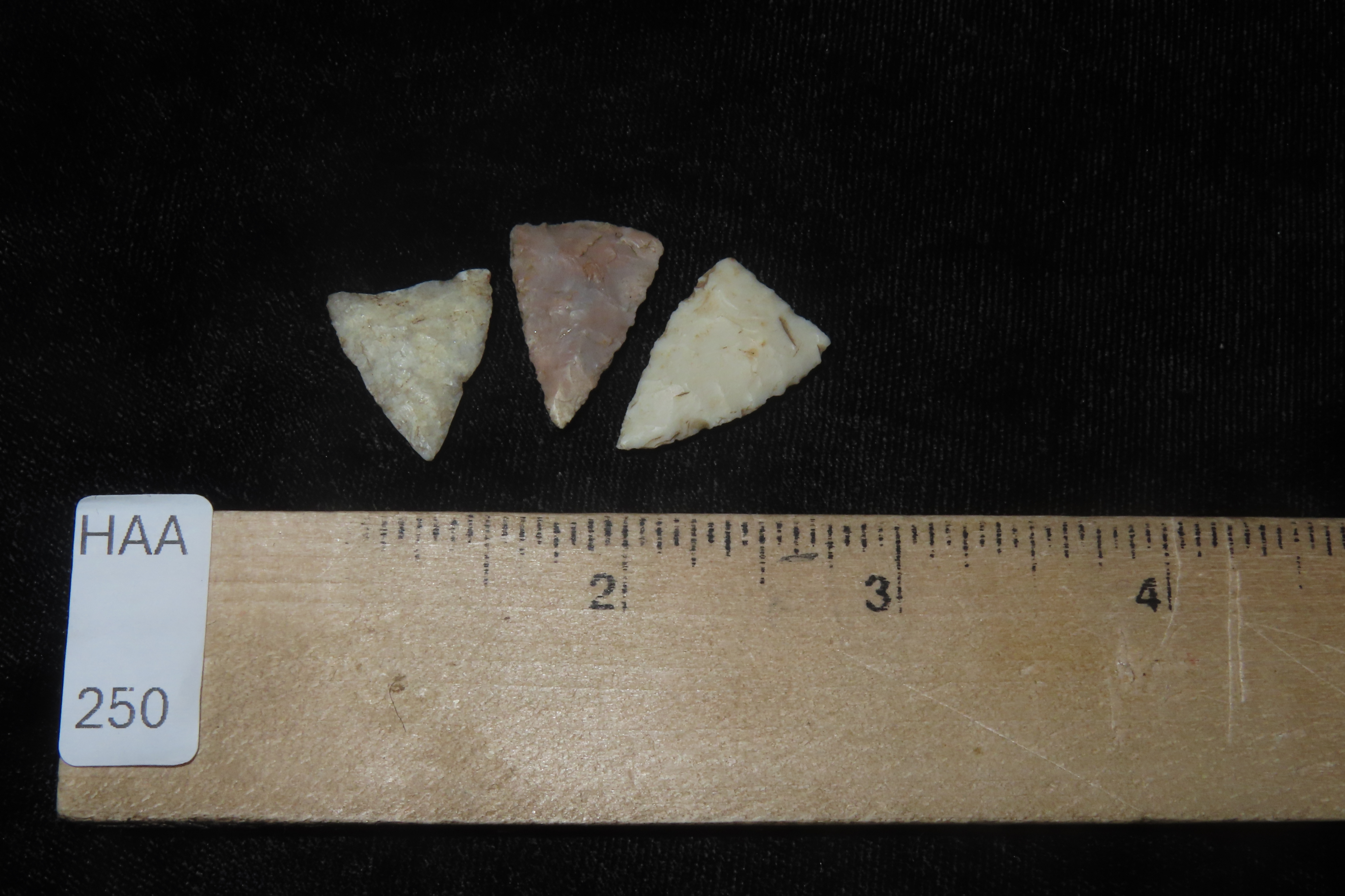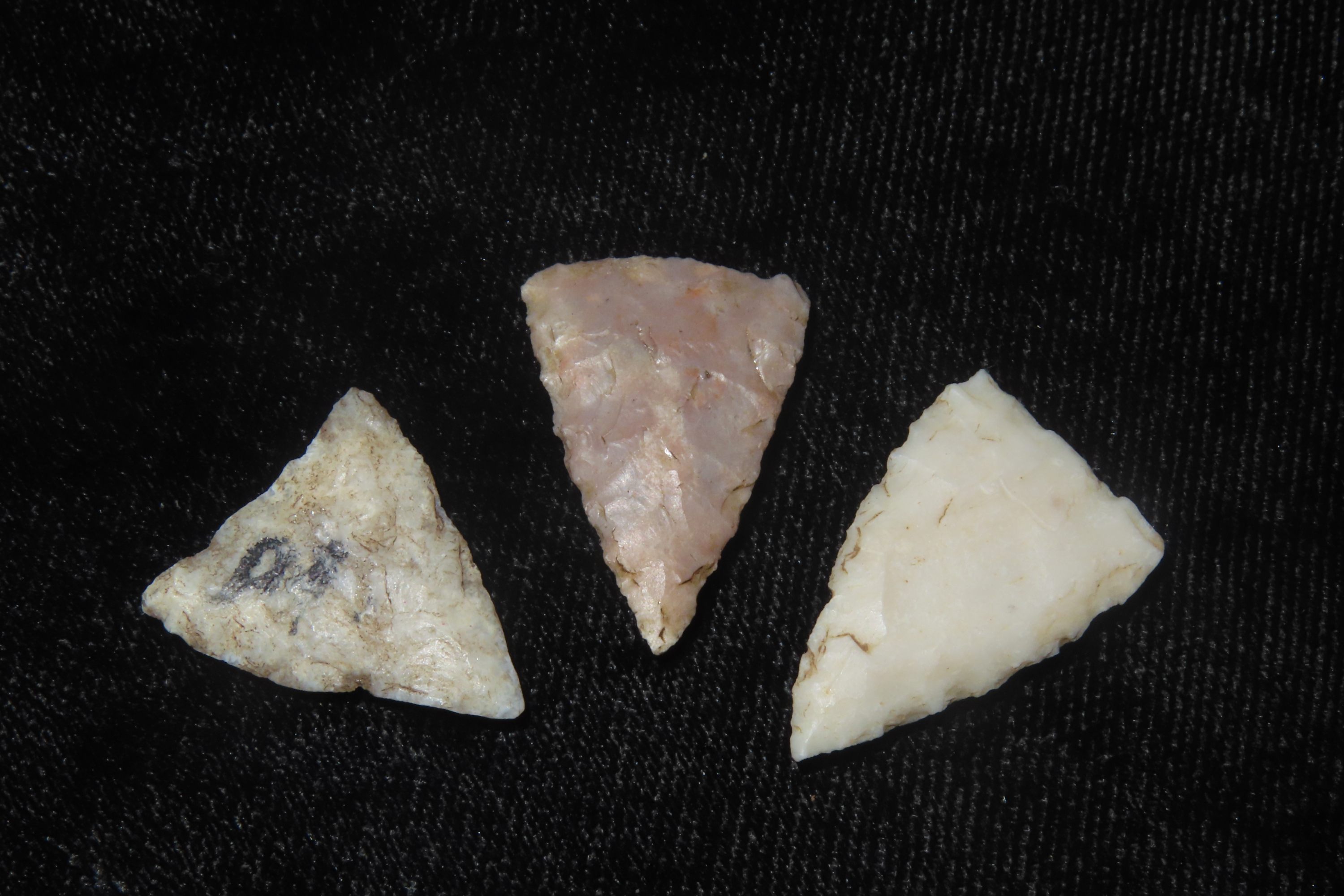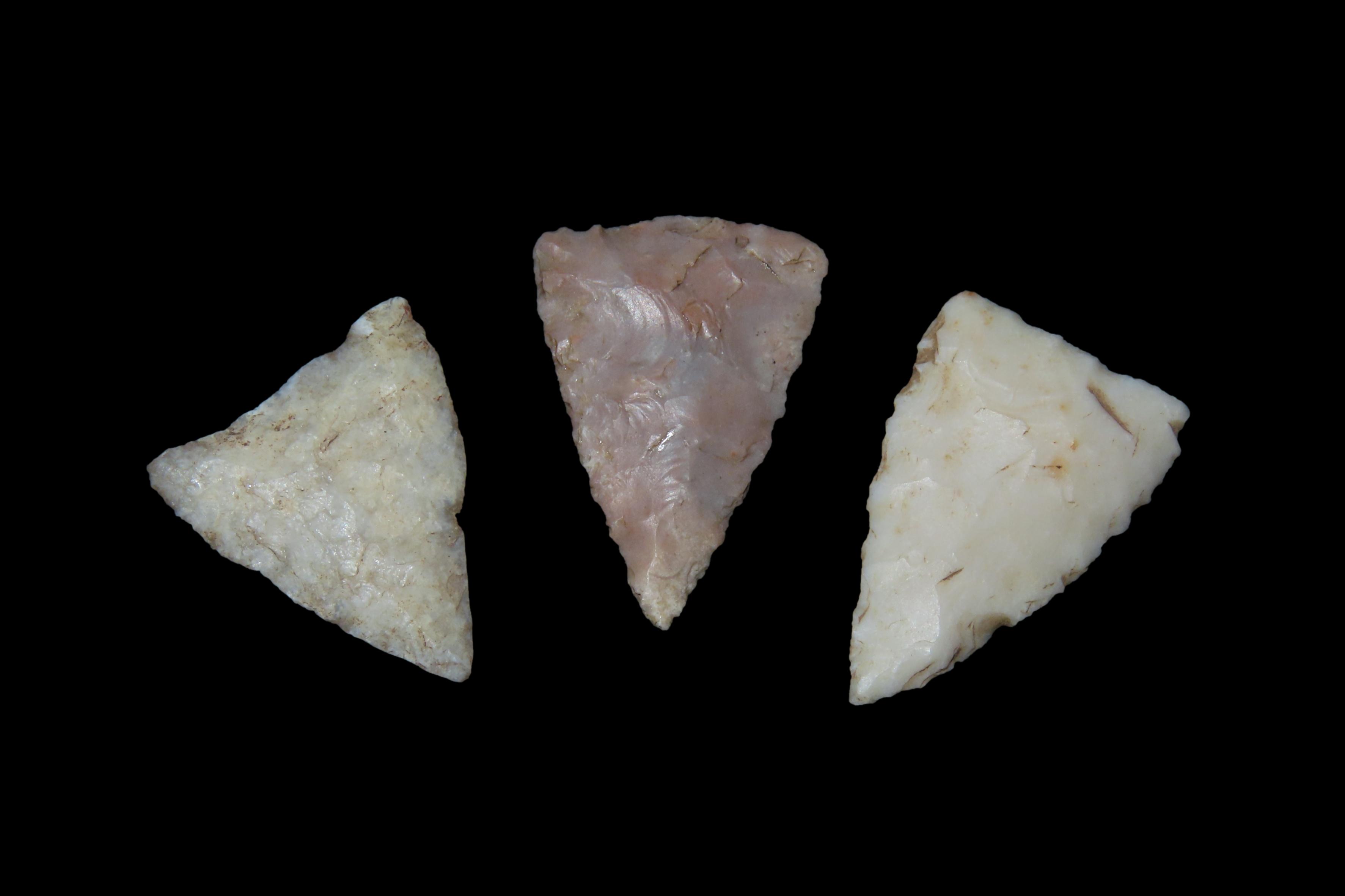Lot of 3 Cahokia Triangles, Bird points, Madison County Illinois, Found by Ron Knowles
