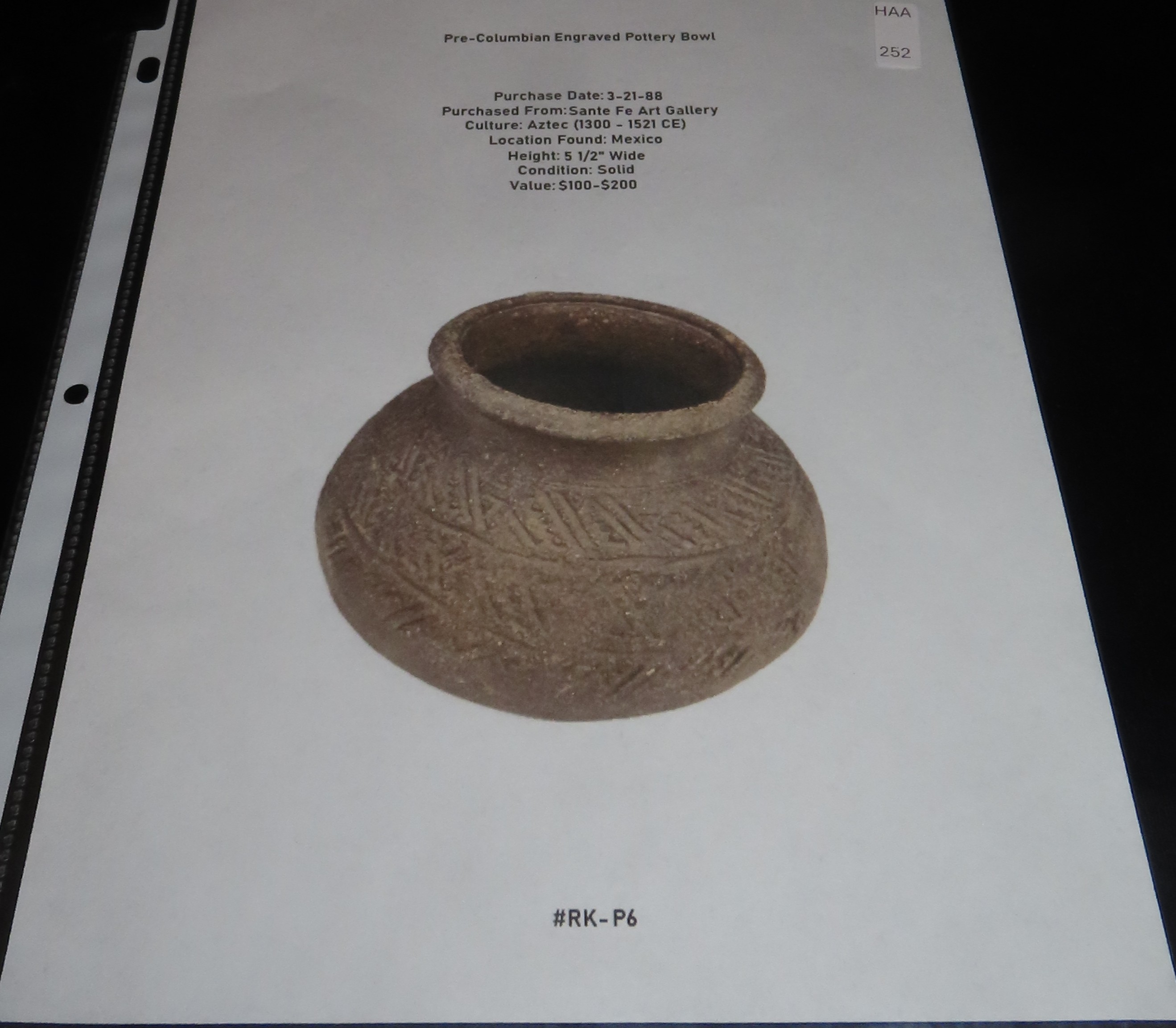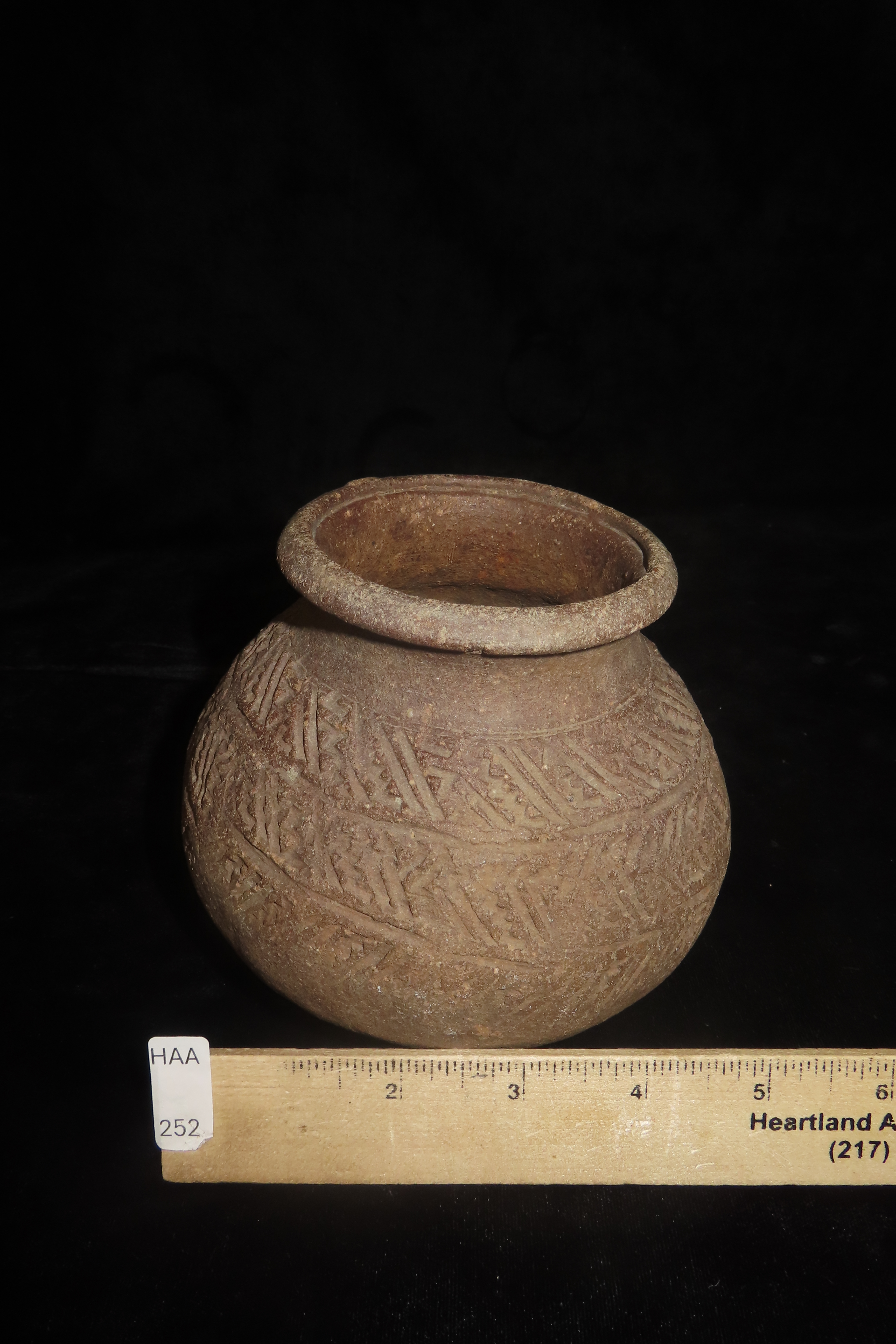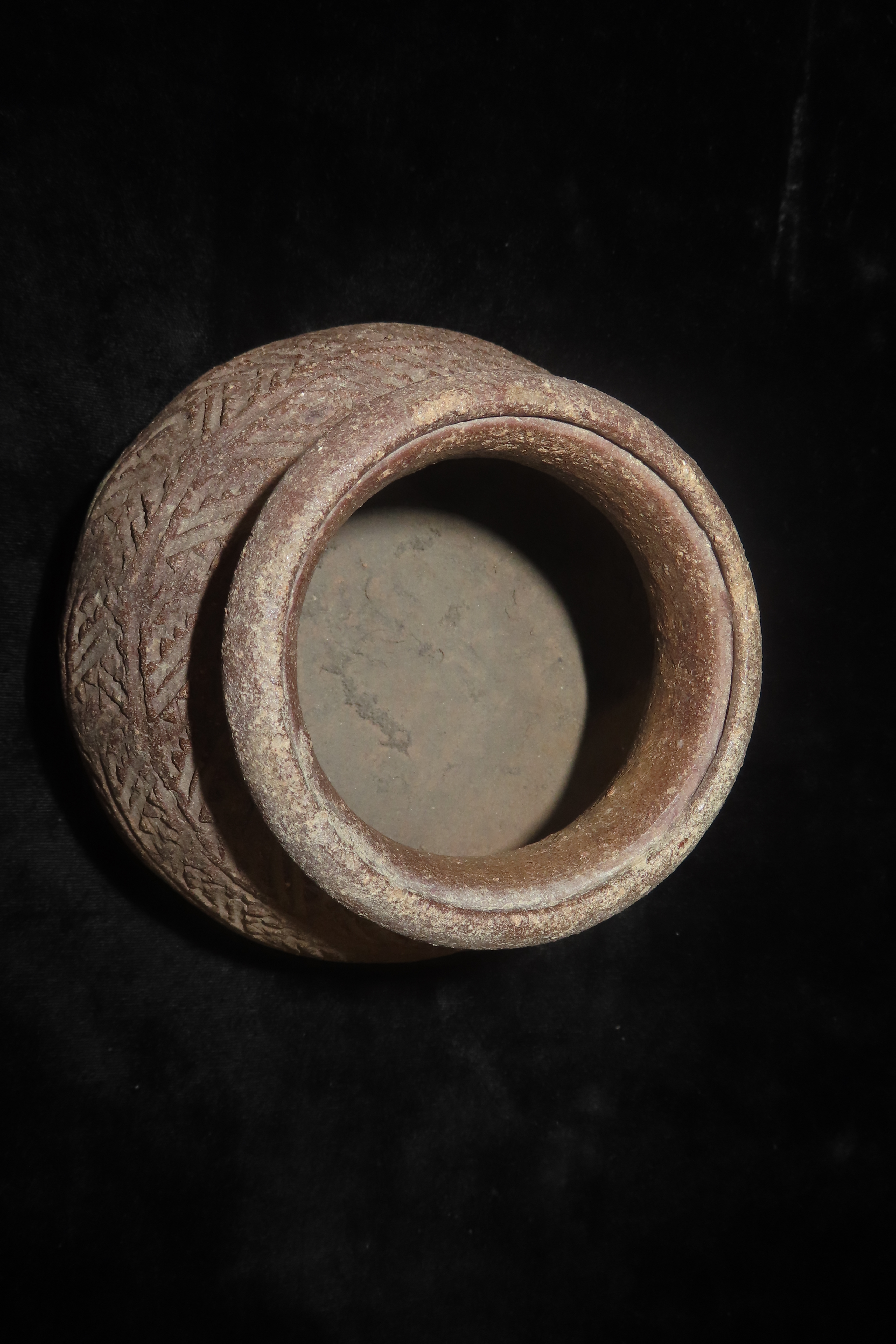 5 1/2″ Pre-Columbian Aztec Style Engraved pottery Bowl, Solid, Mexico, #RK-P6