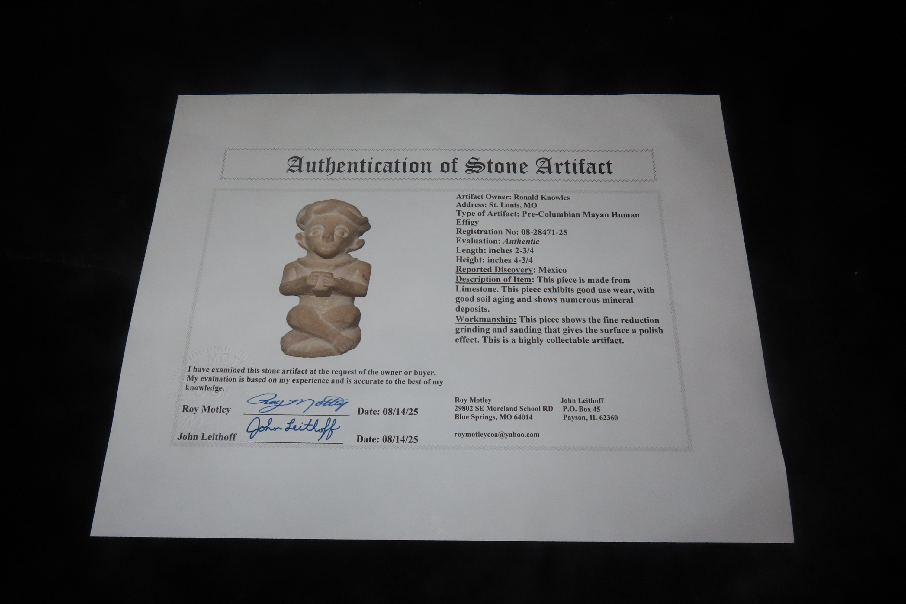 4 3/4″ Pre-Columbian Mayan Human Effigy Figure, Mexico, Motley COA
