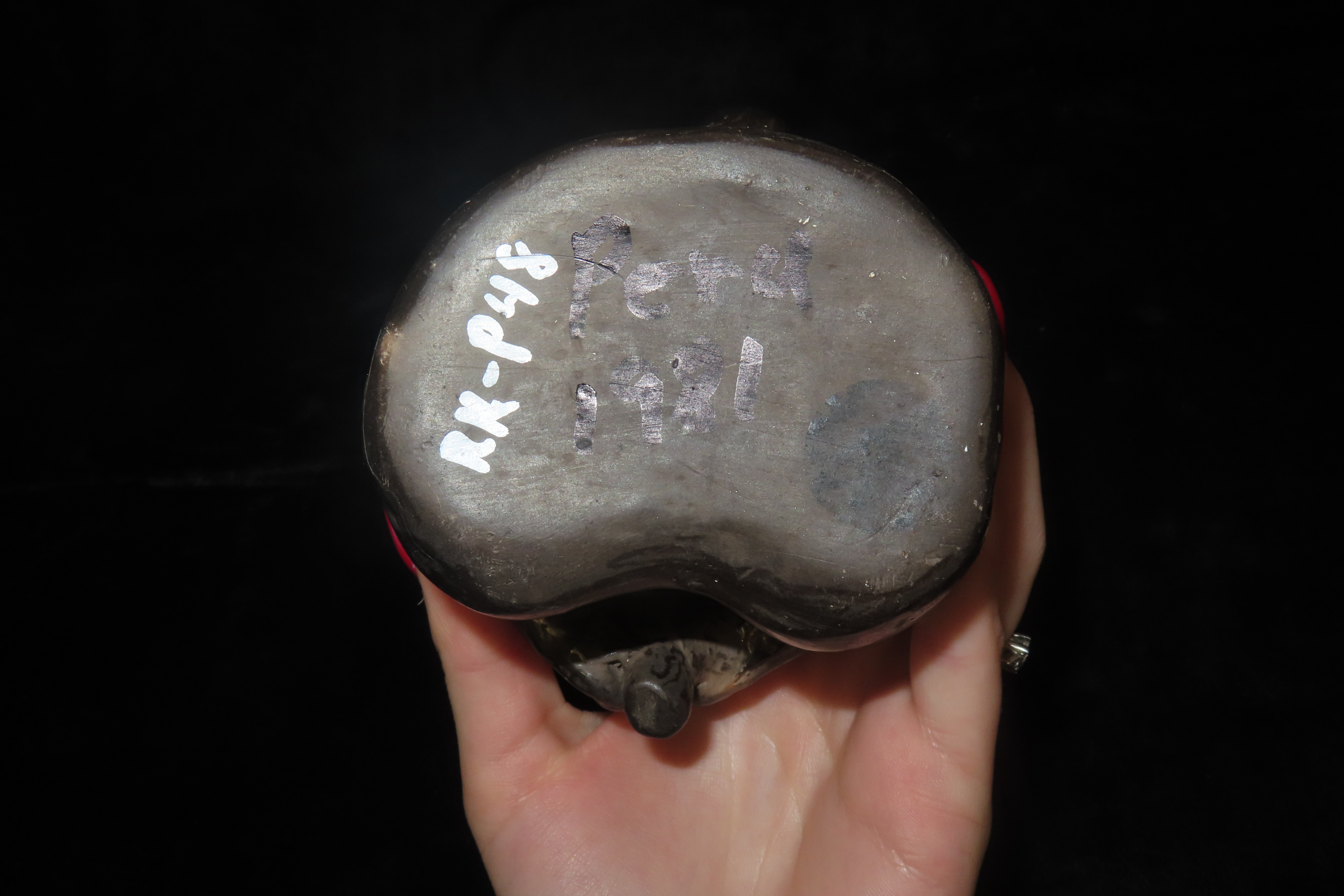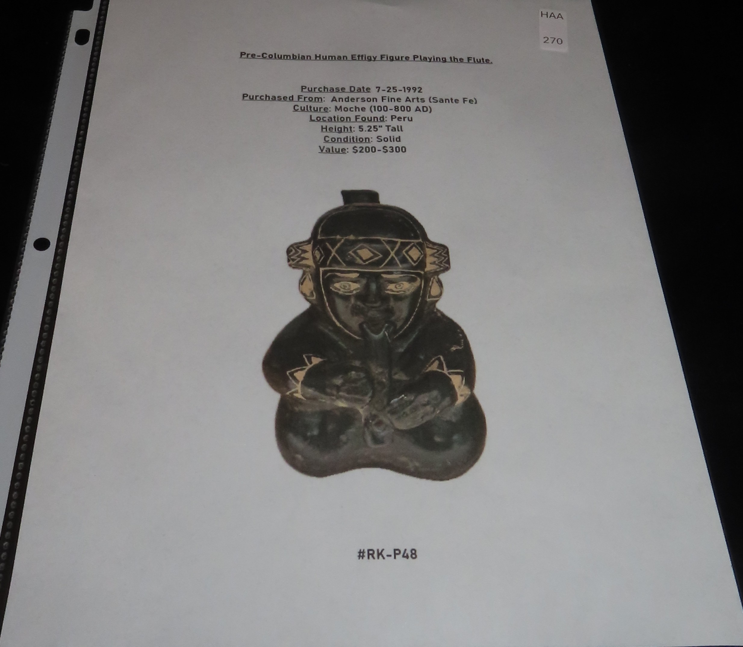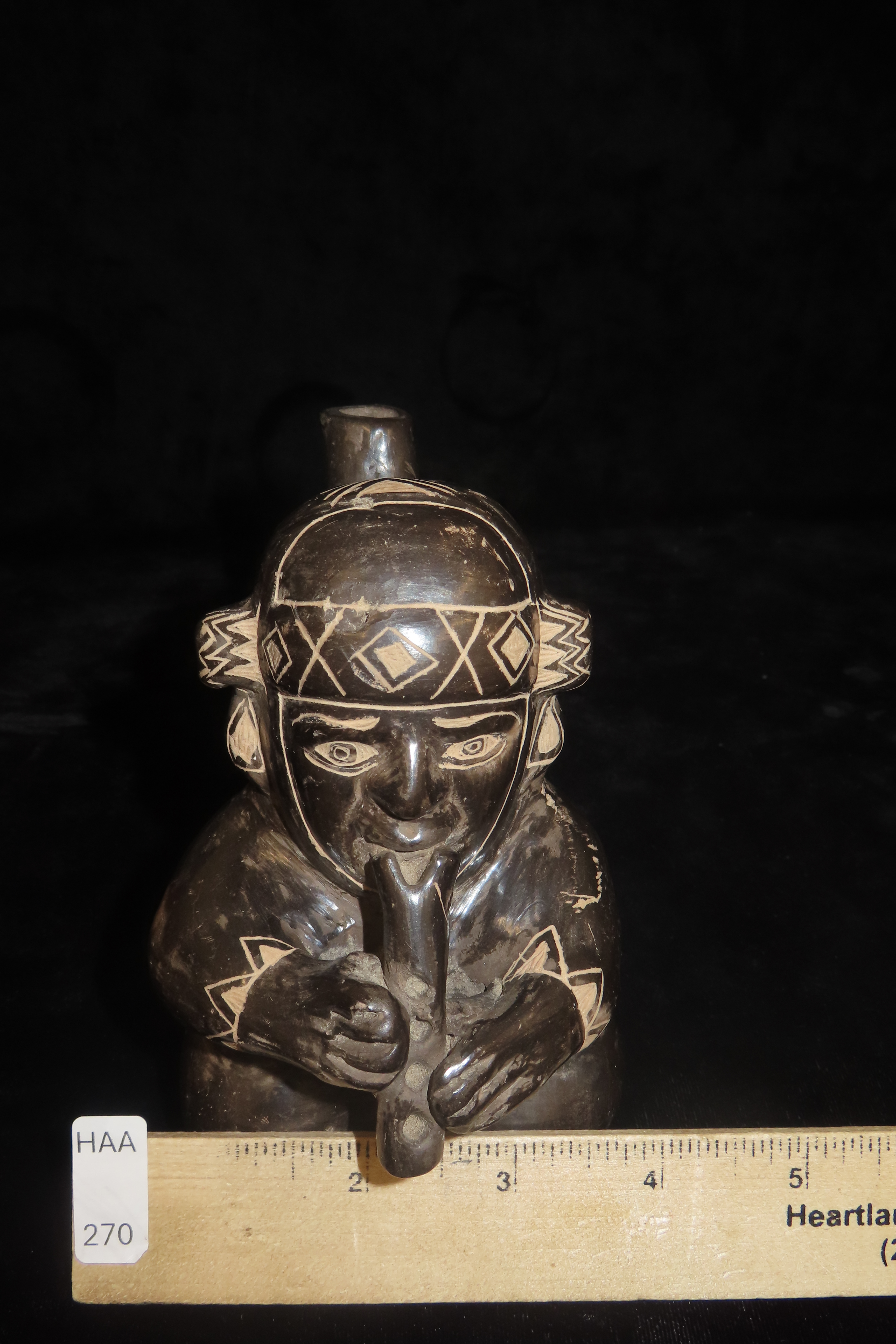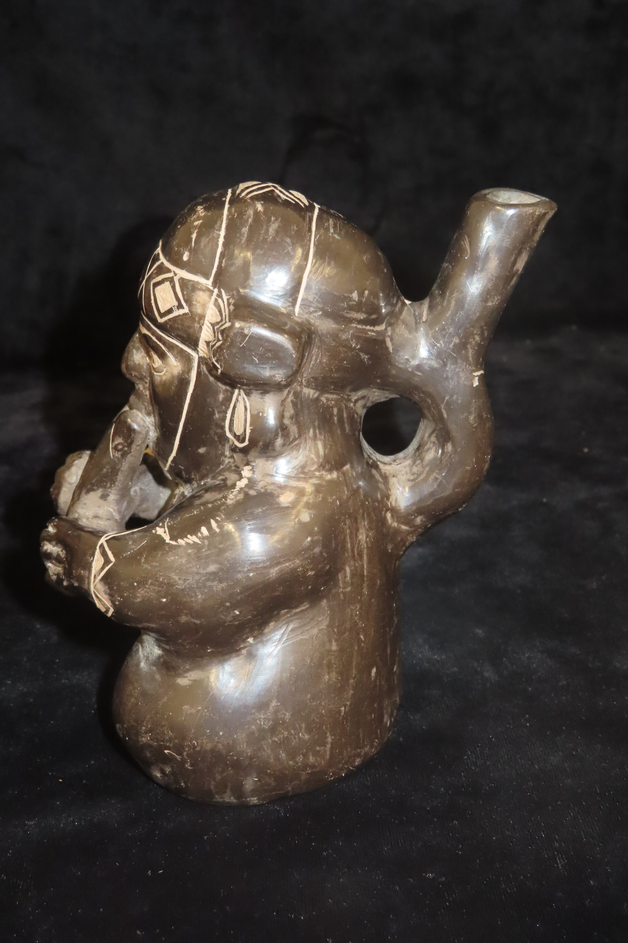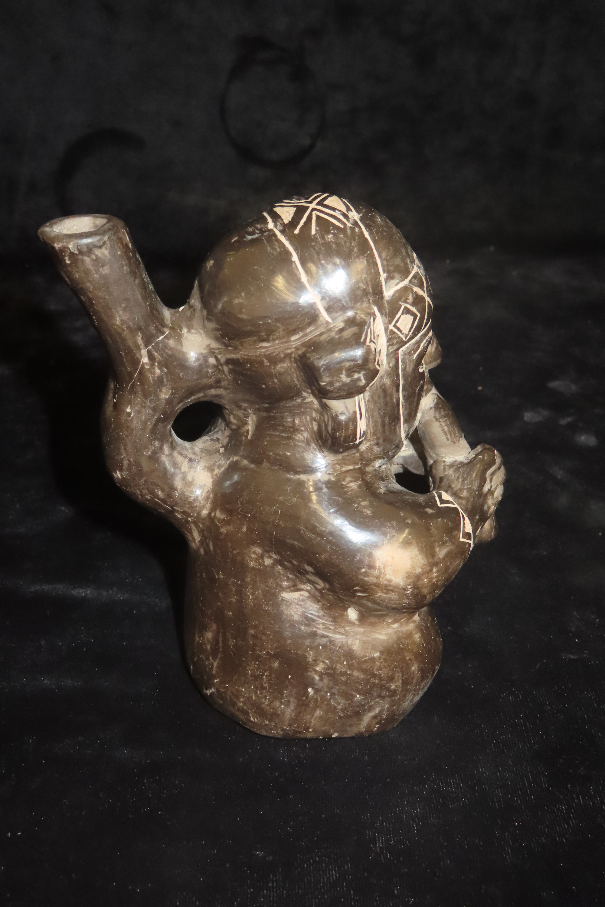 5 1/4″ Pre-Columbian Moche Style Human Effigy Stirrup Bottle, Solid, Peru, #RK-P48