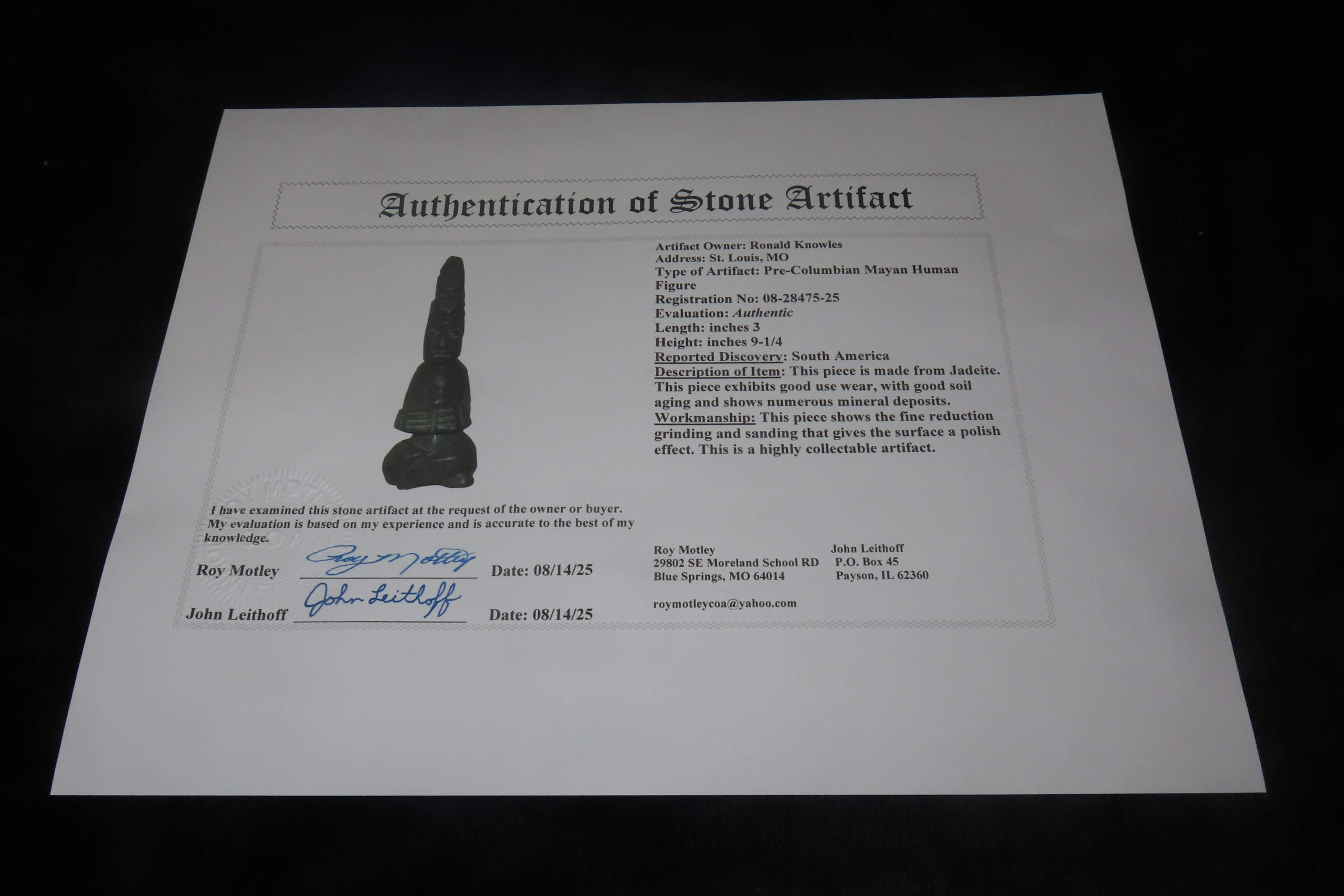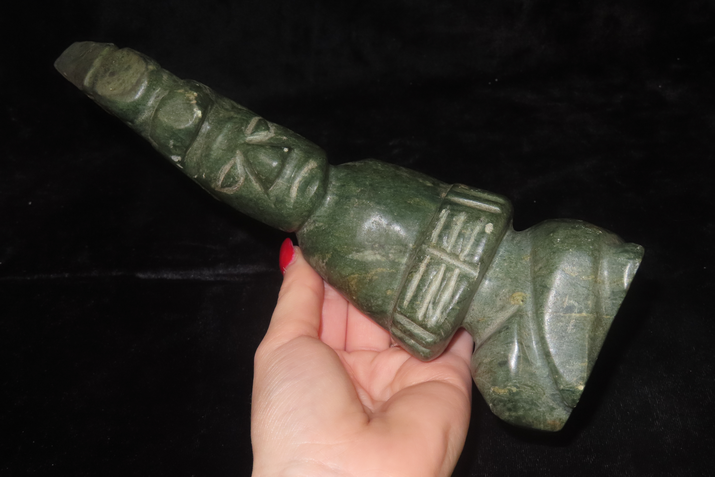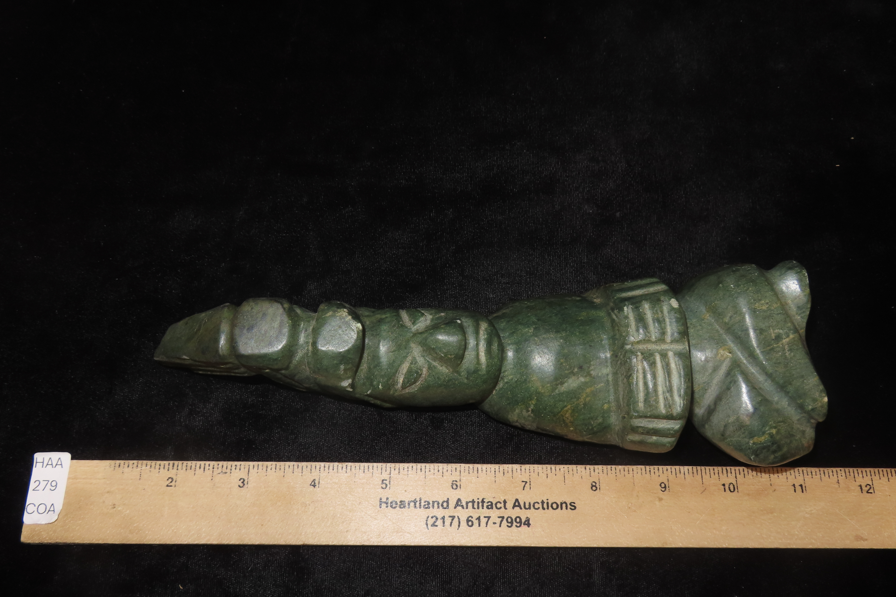 9 1/4″ Pre-Columbian Mayan Human Figure, South America, Motley COA, Jadeite