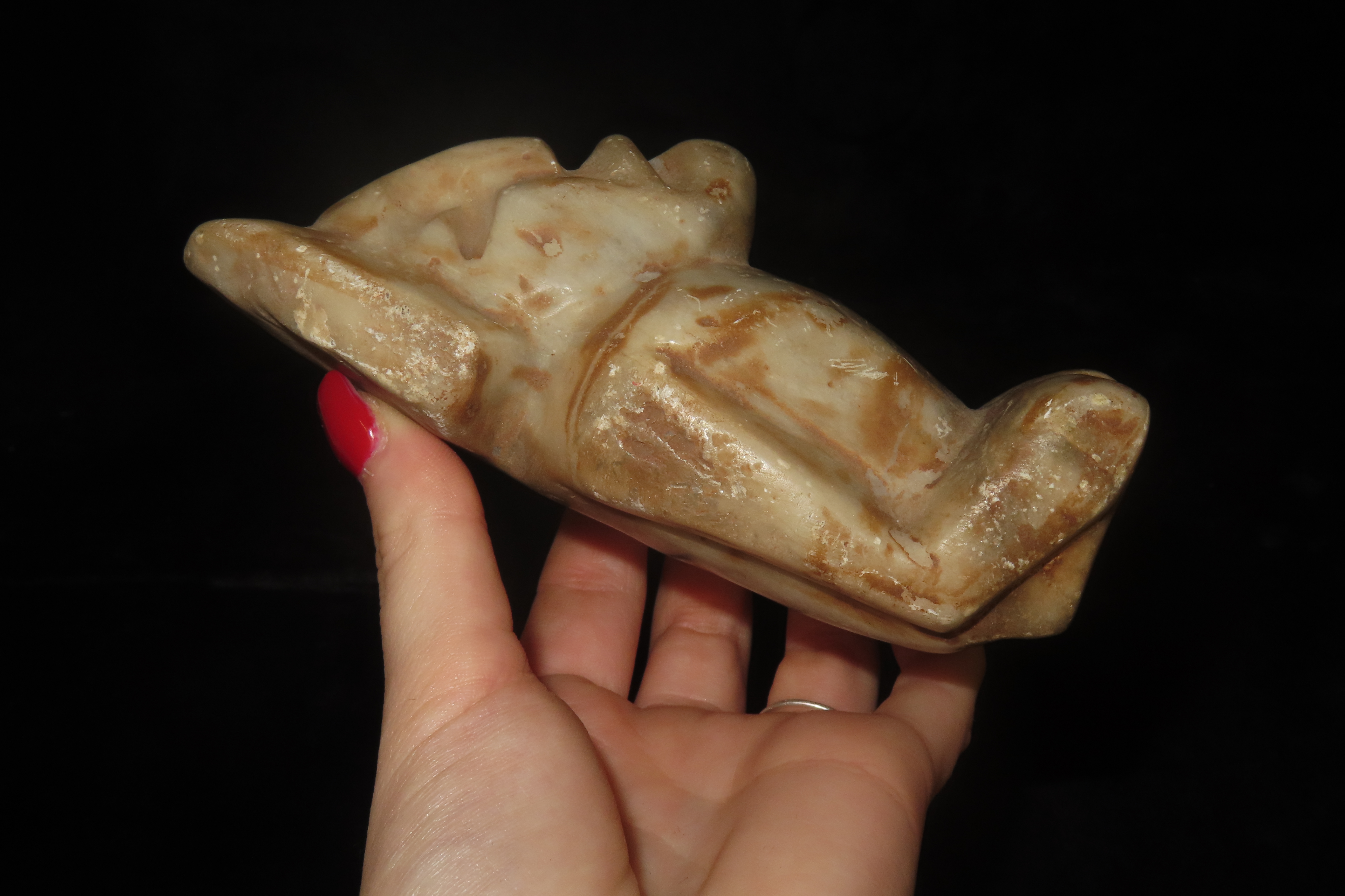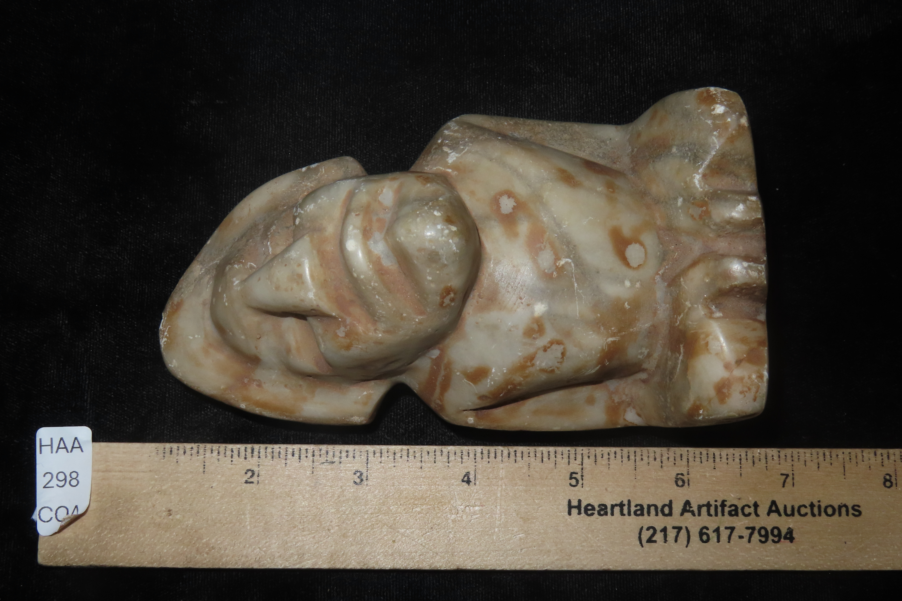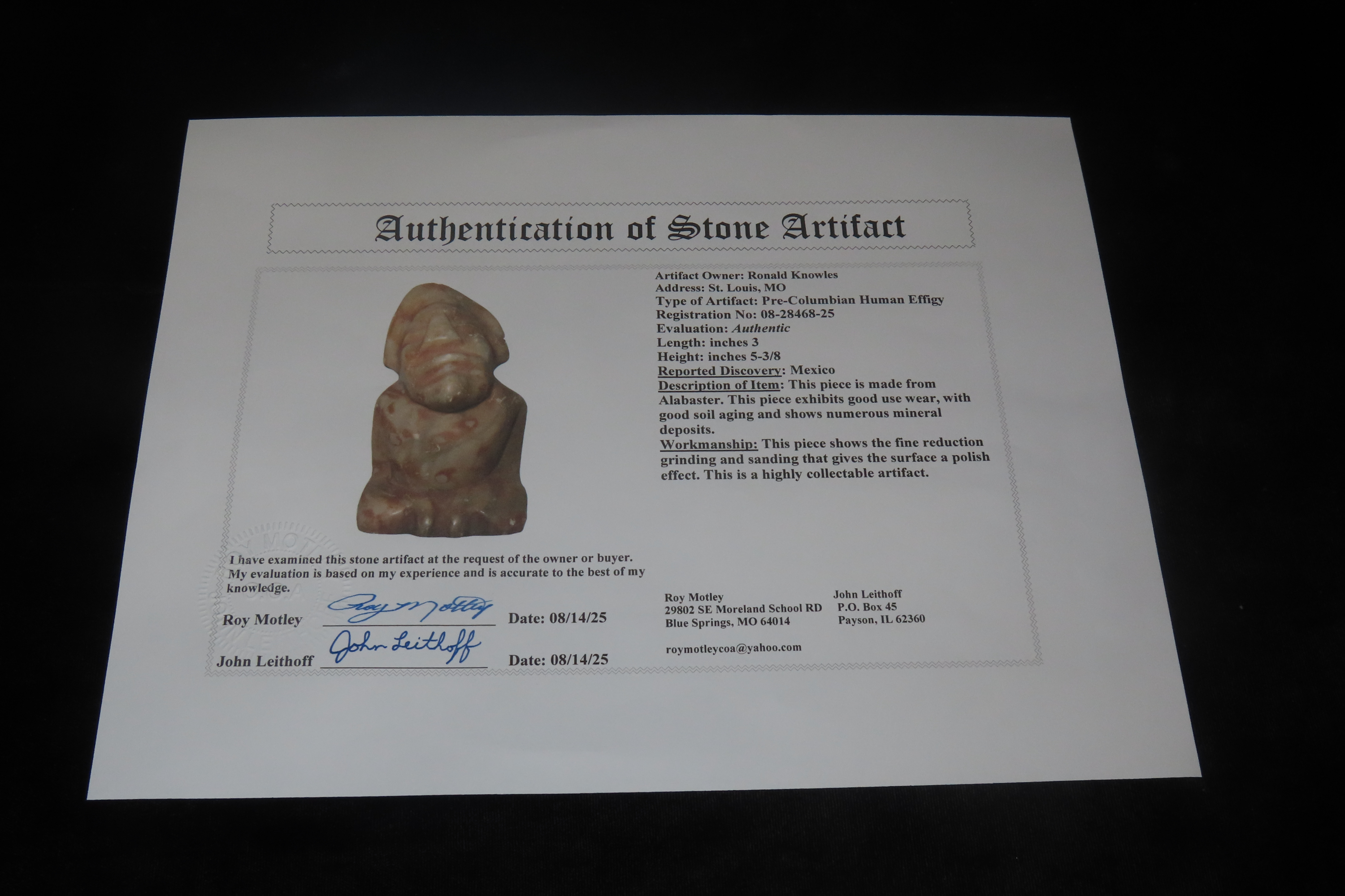5 3/8" Human Effigy Statue, Mexico, Motley COA, Alabaster