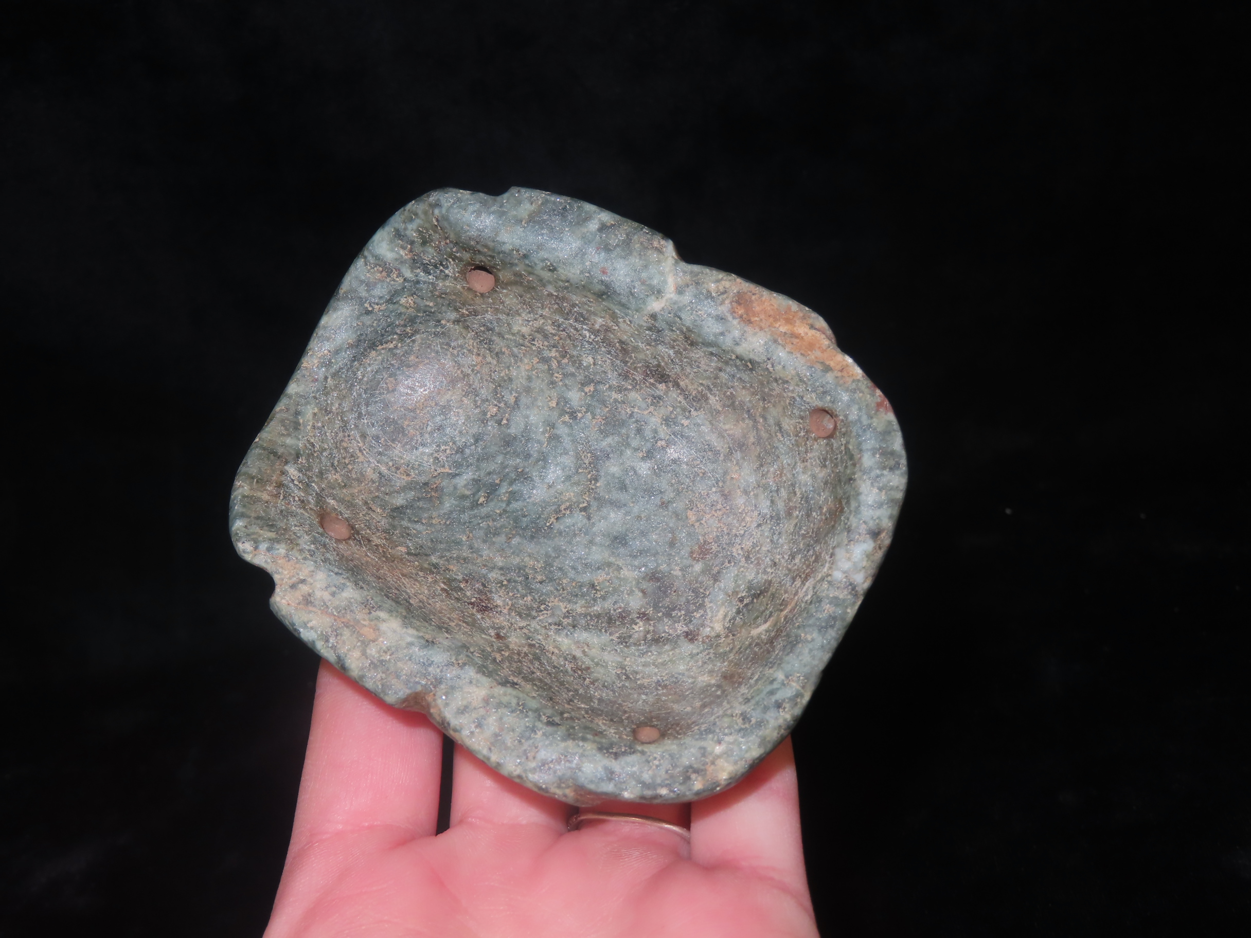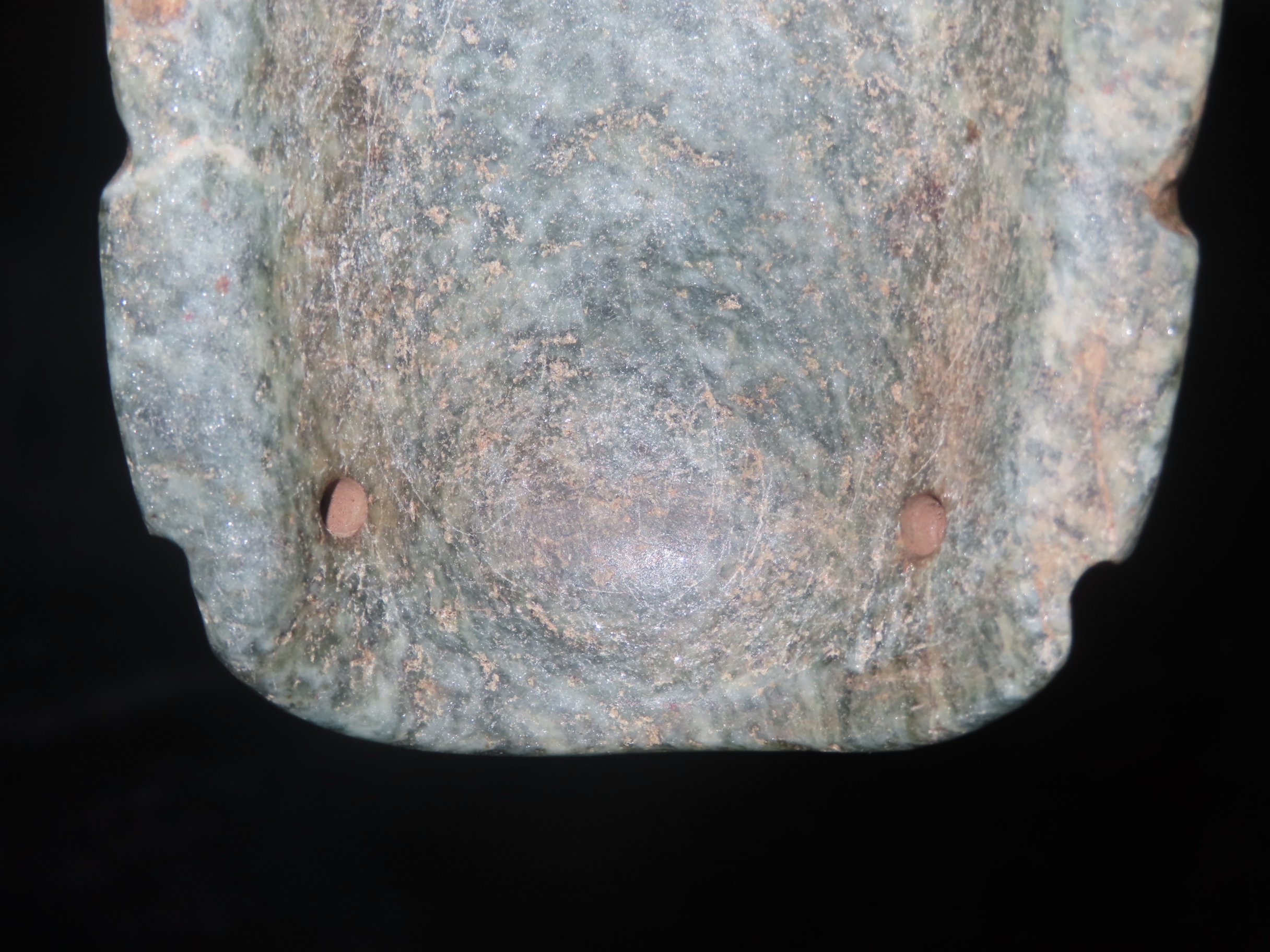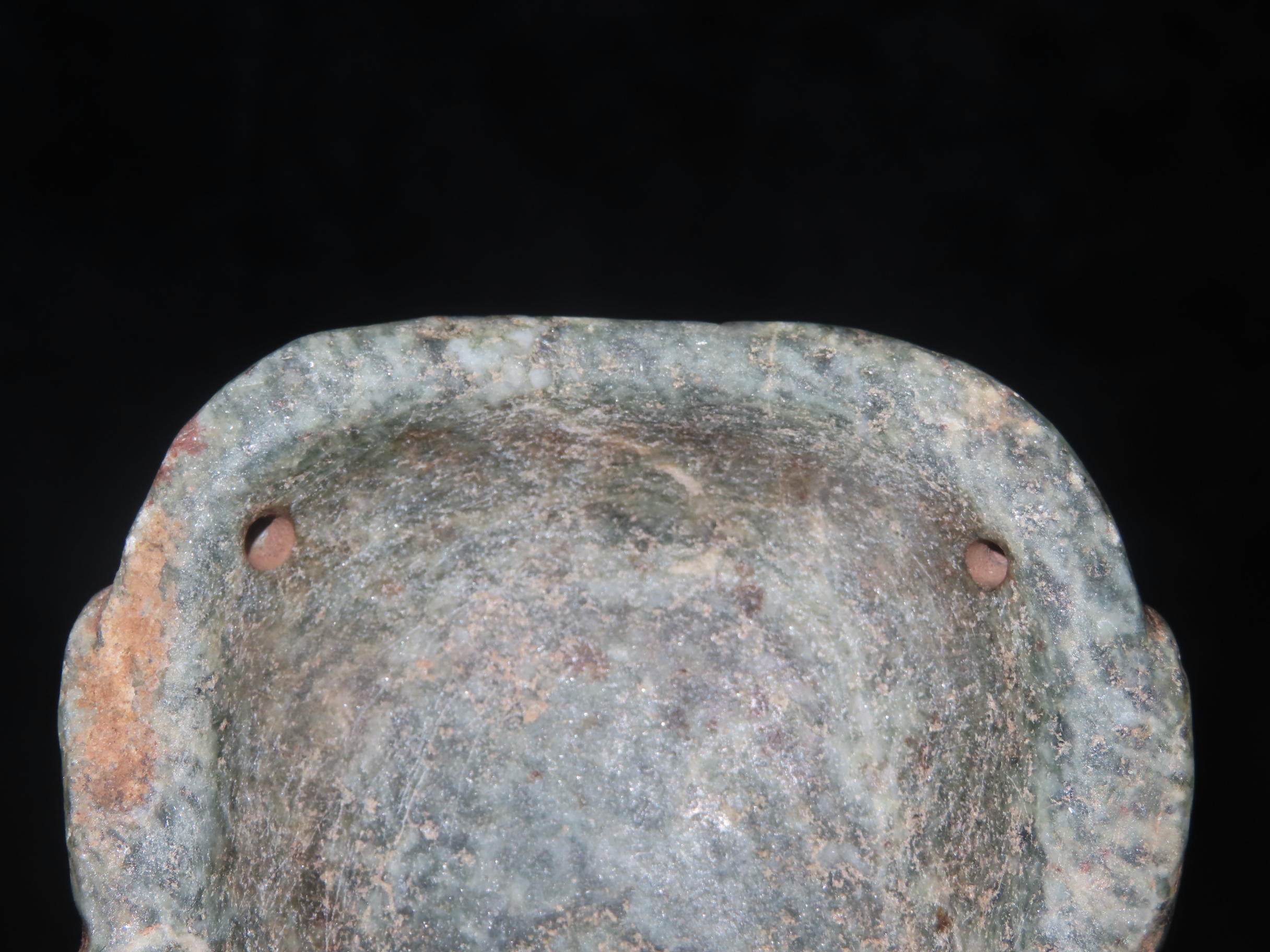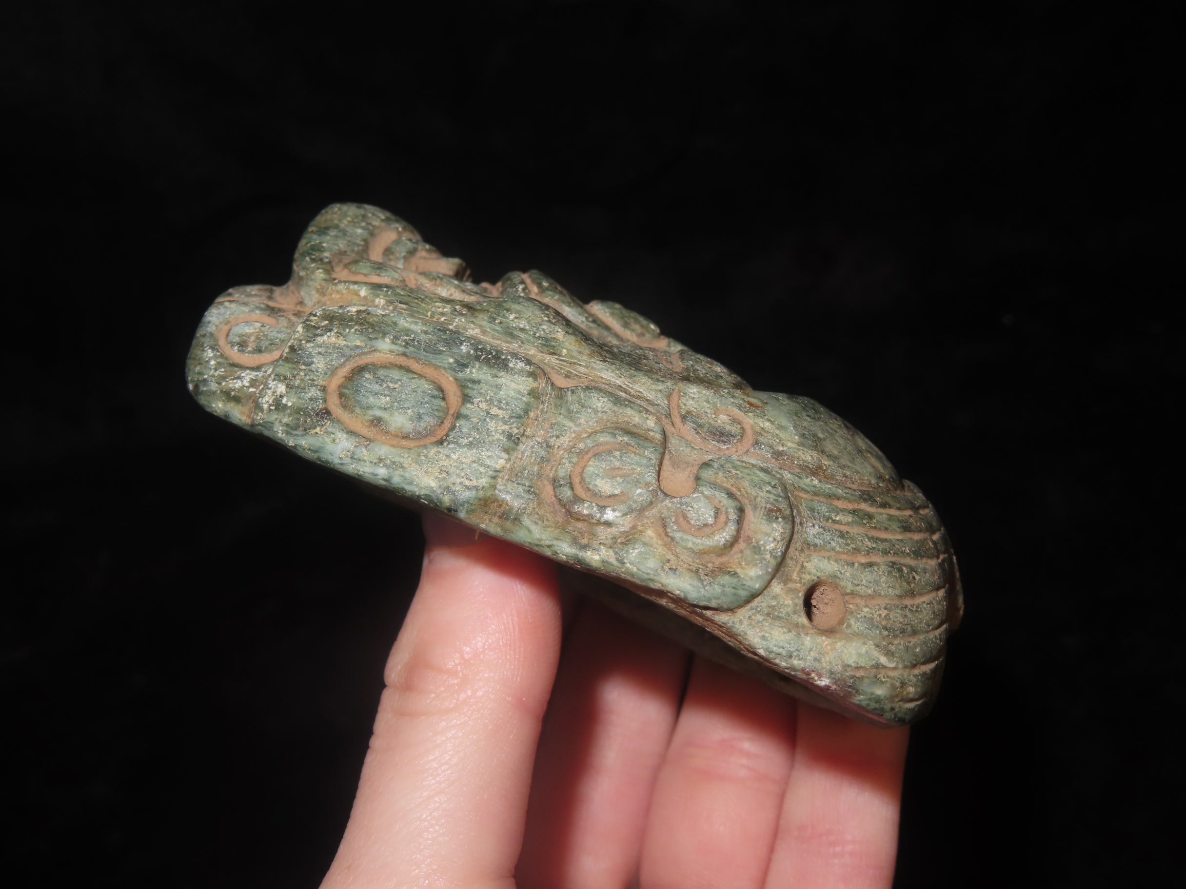 3 3/8″ Olmec Jaguar Transformation Mask, Mexico, Motley COA, Beautiful Green Jadeite, Nice Polish