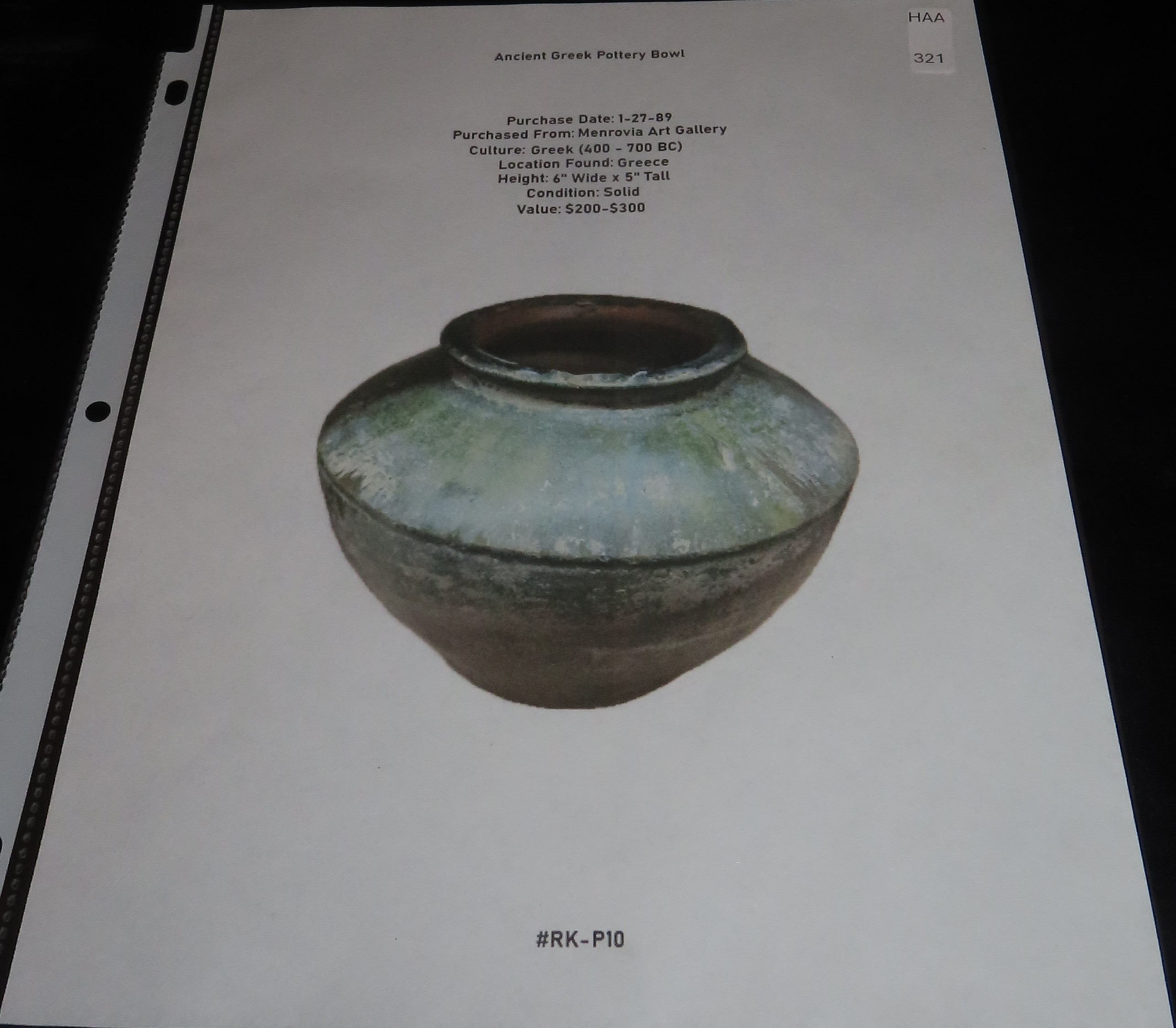 6″ Ancient Greek Pottery Bowl, #RK-P10, ex Monrovia Art Gallery