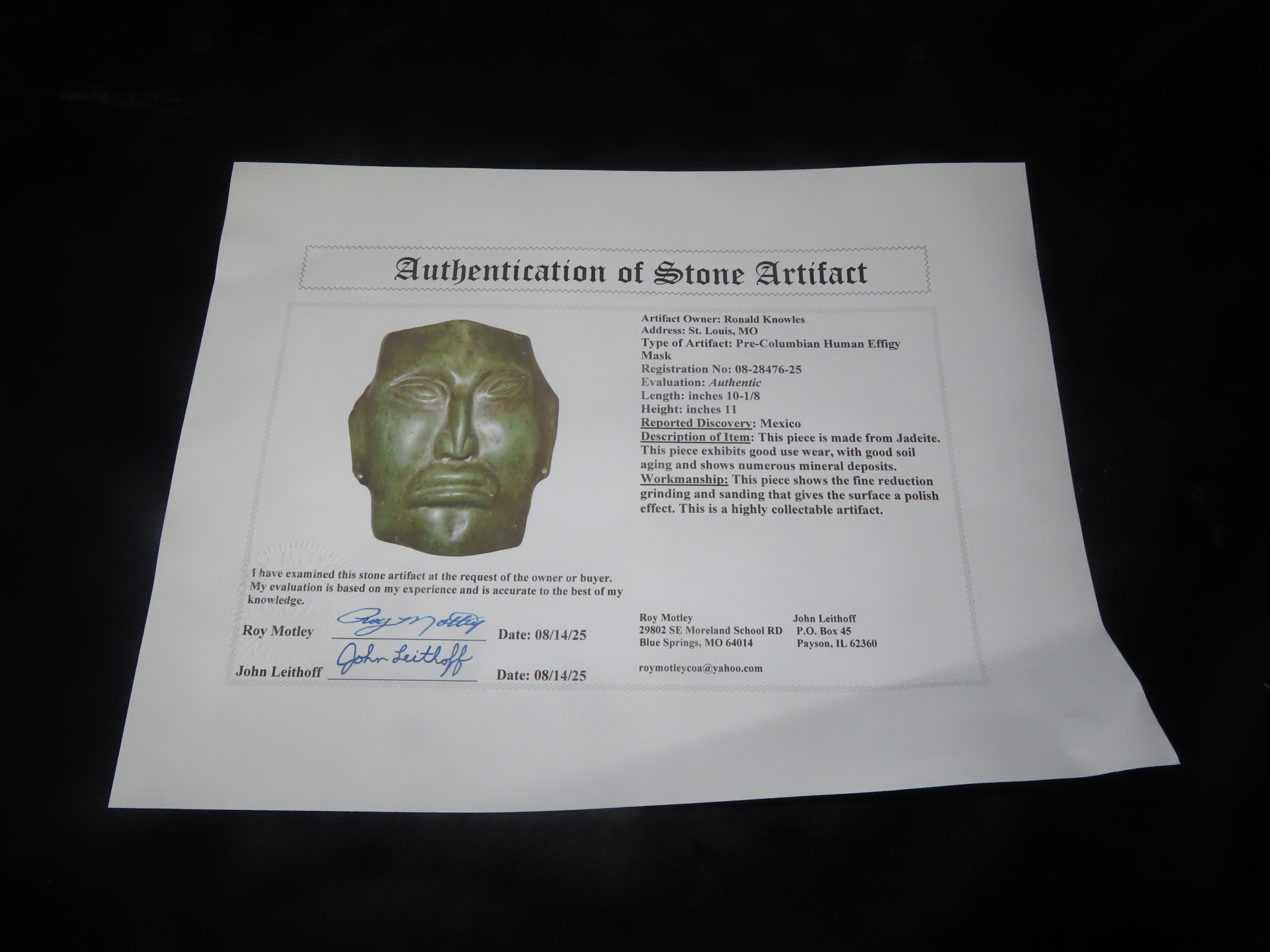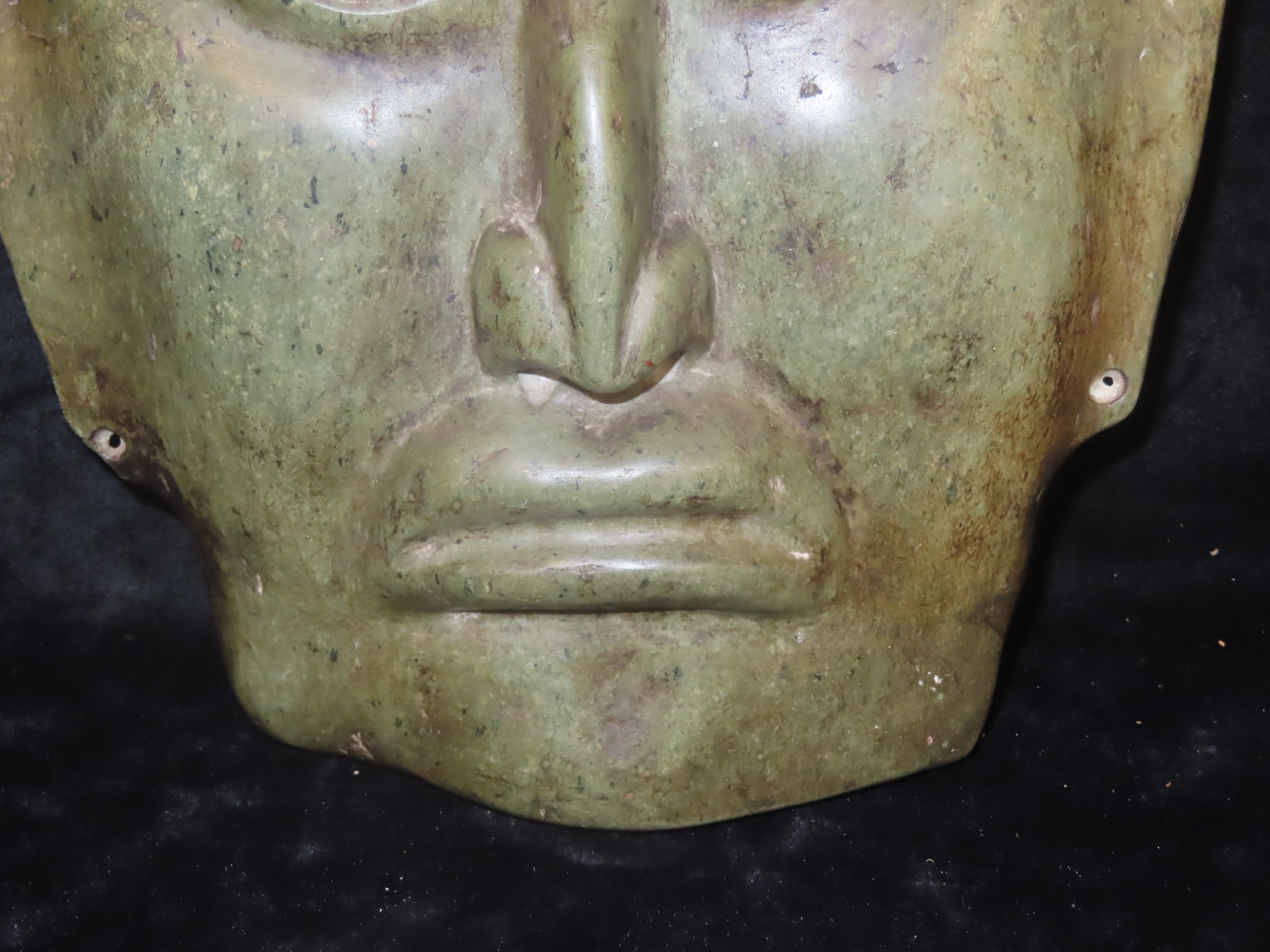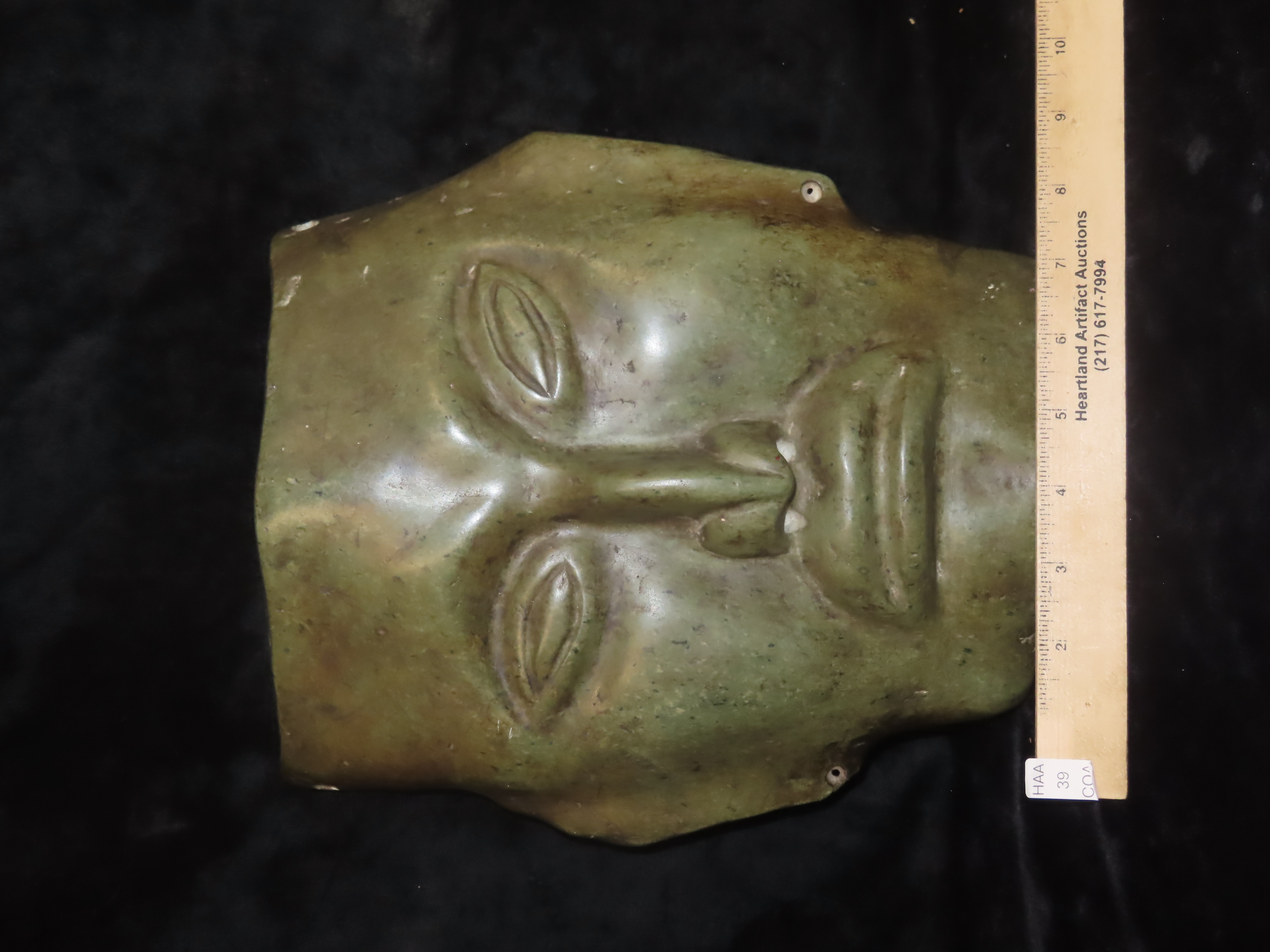 Huge 11″ Tall Human Effigy Mask, Jadeite, Mexico, Motley COA, Amazing Large Example, Super Detail & Wonderful Polish