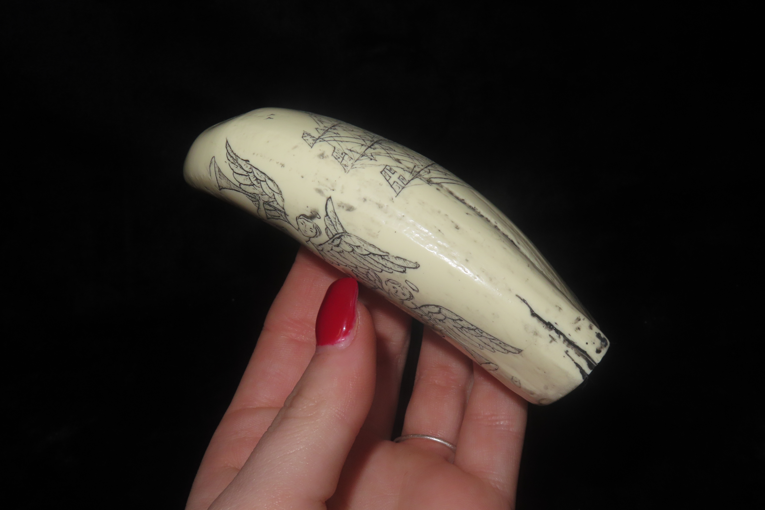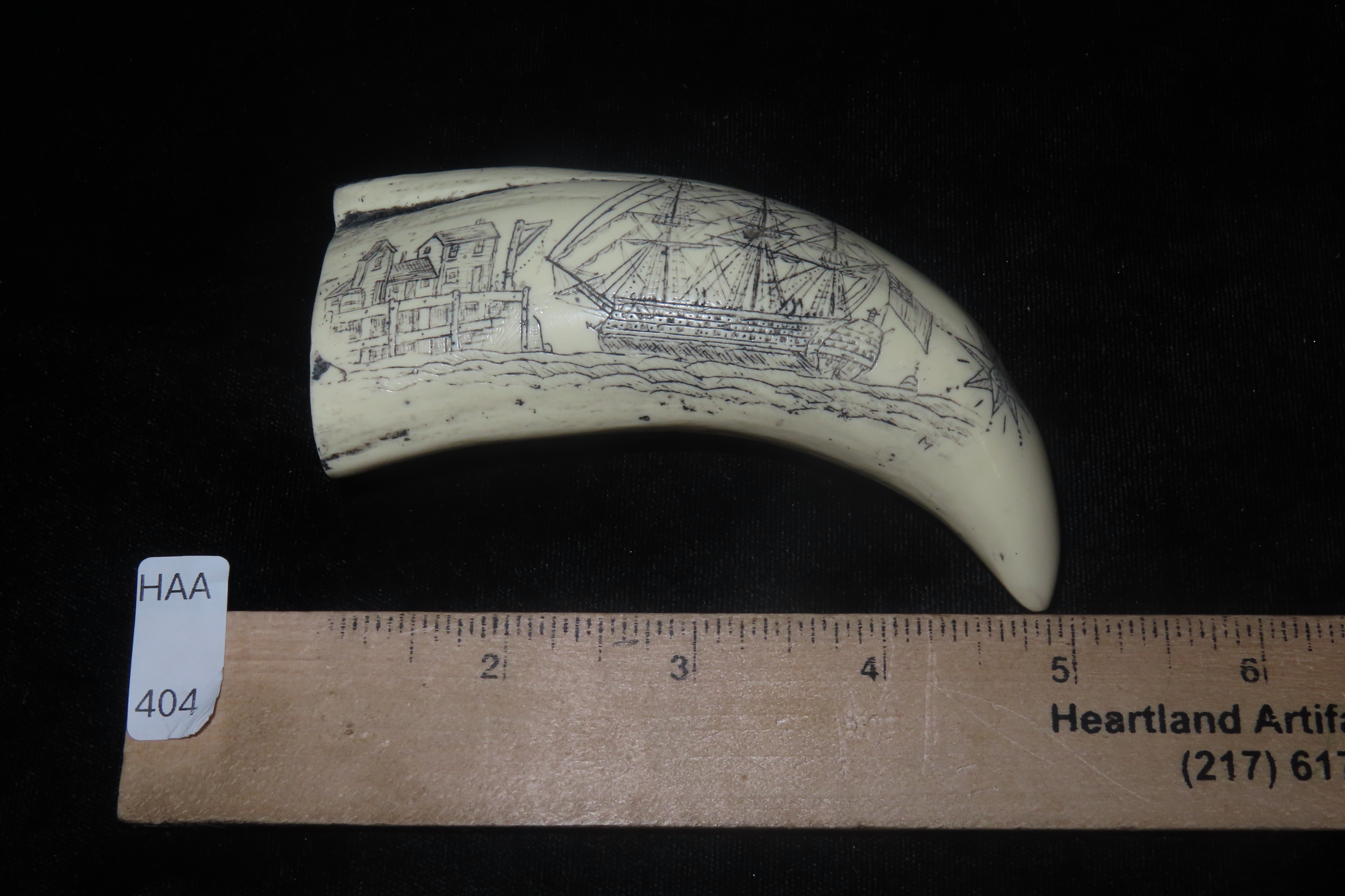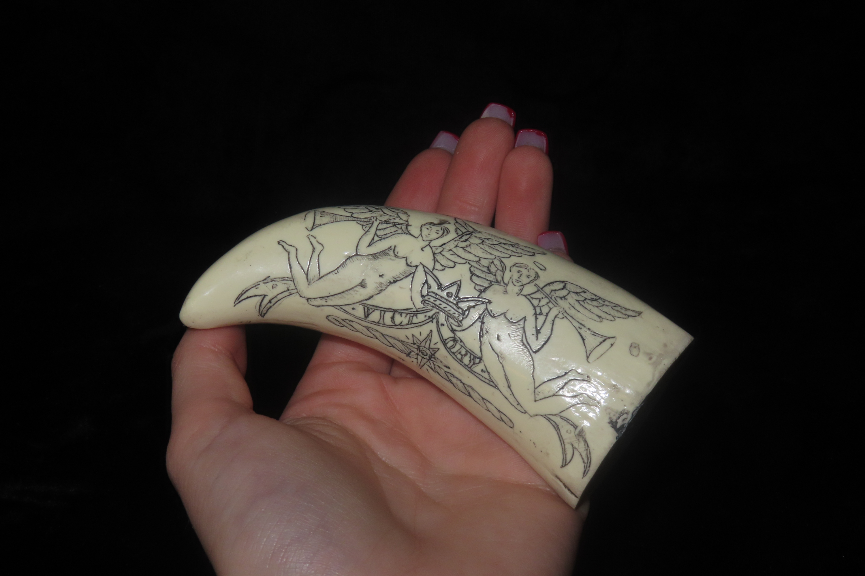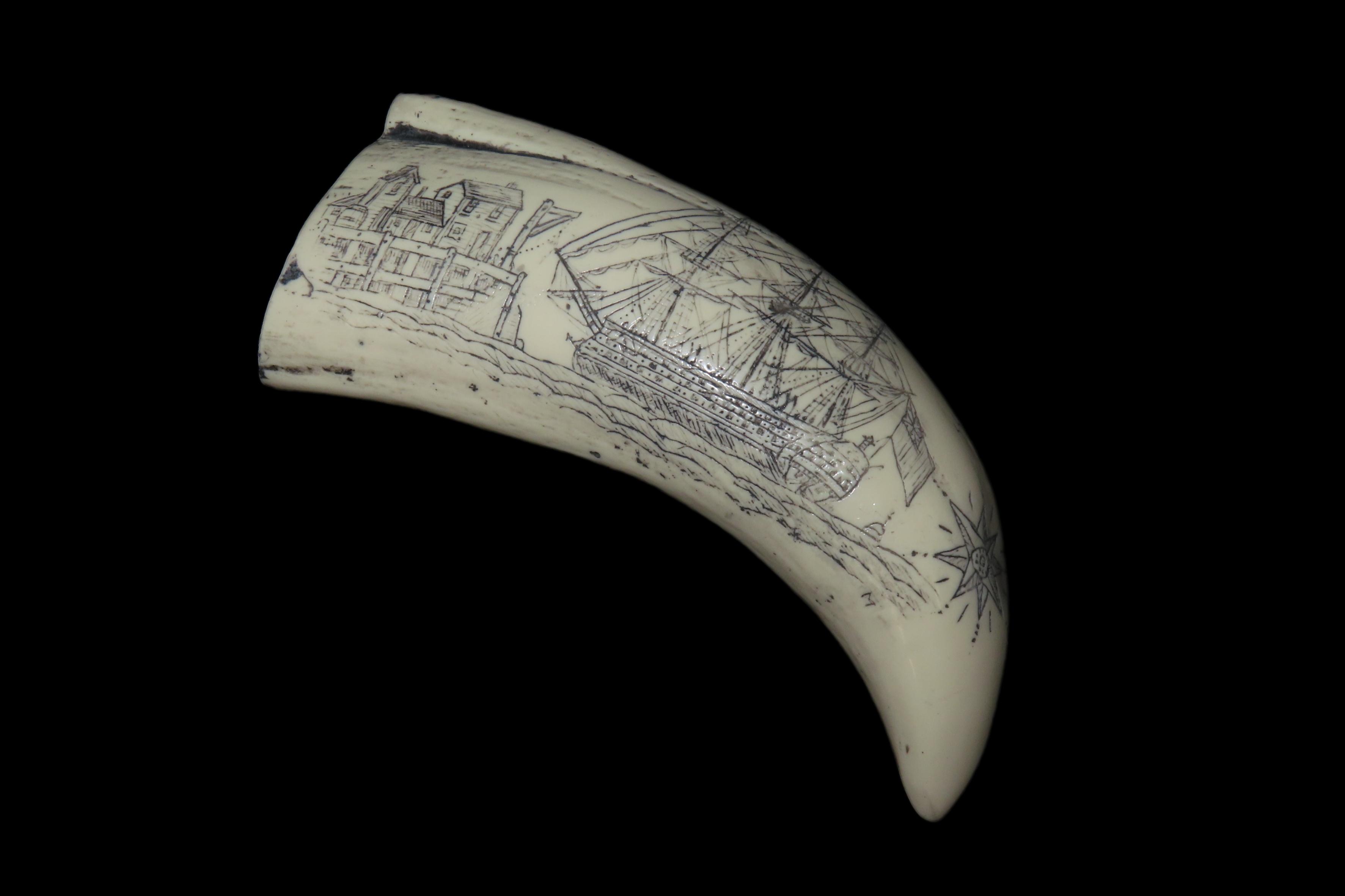 Vintage Scrimshaw Walrus Tooth Carving, Reproduction, Intricate Design
