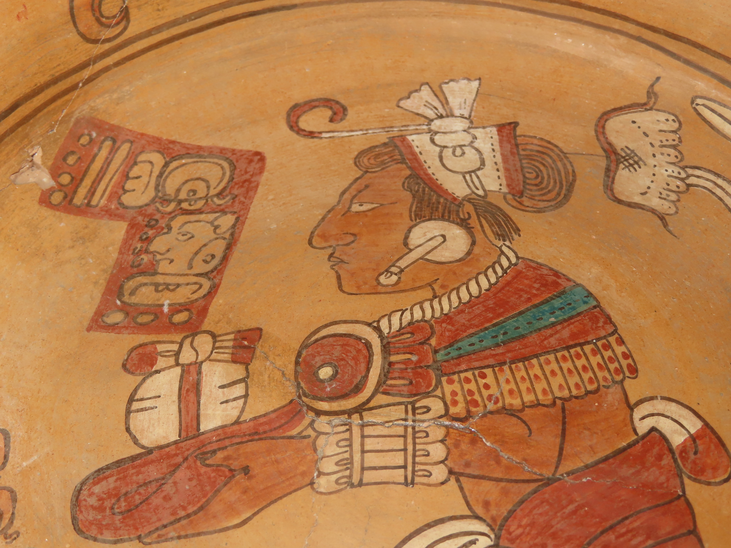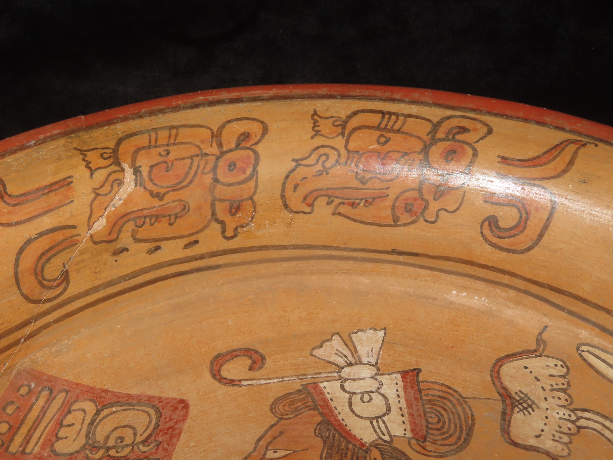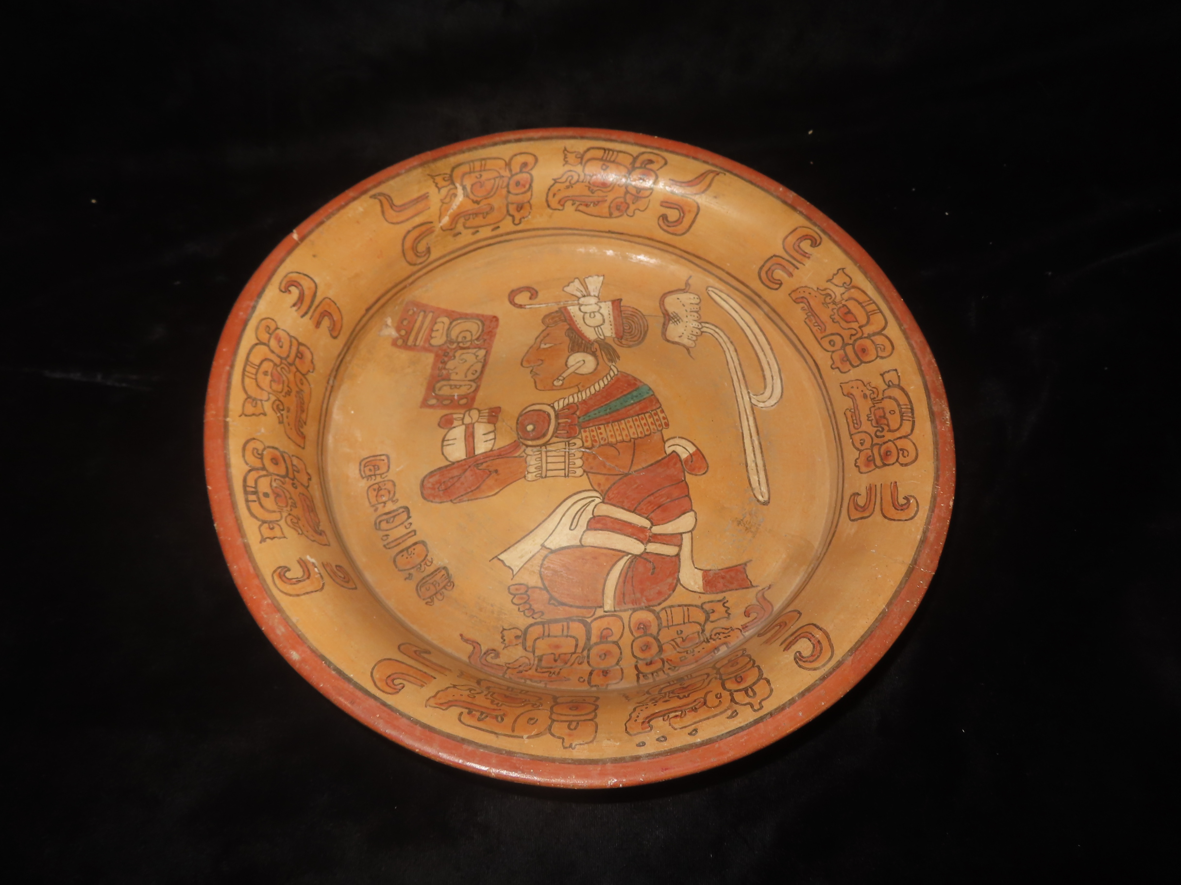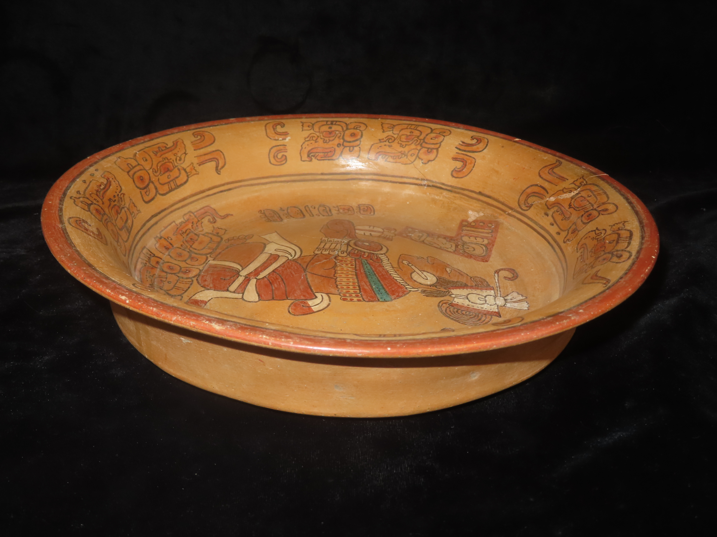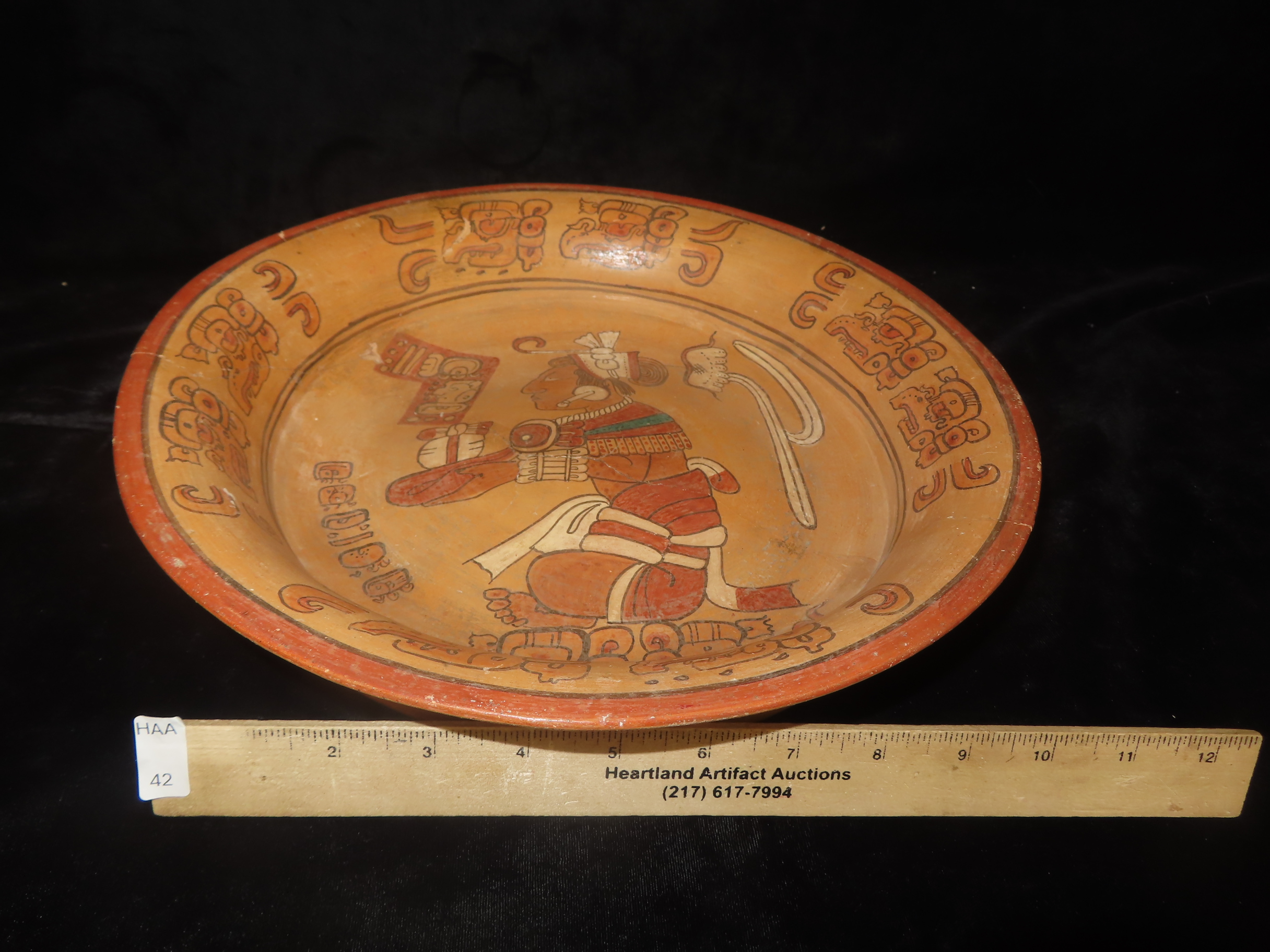 12 3/4″ Pre-Columbian Mayan Style Pictorial Bowl, Solid w/Pressure Crack, Mexico, #RK-P78