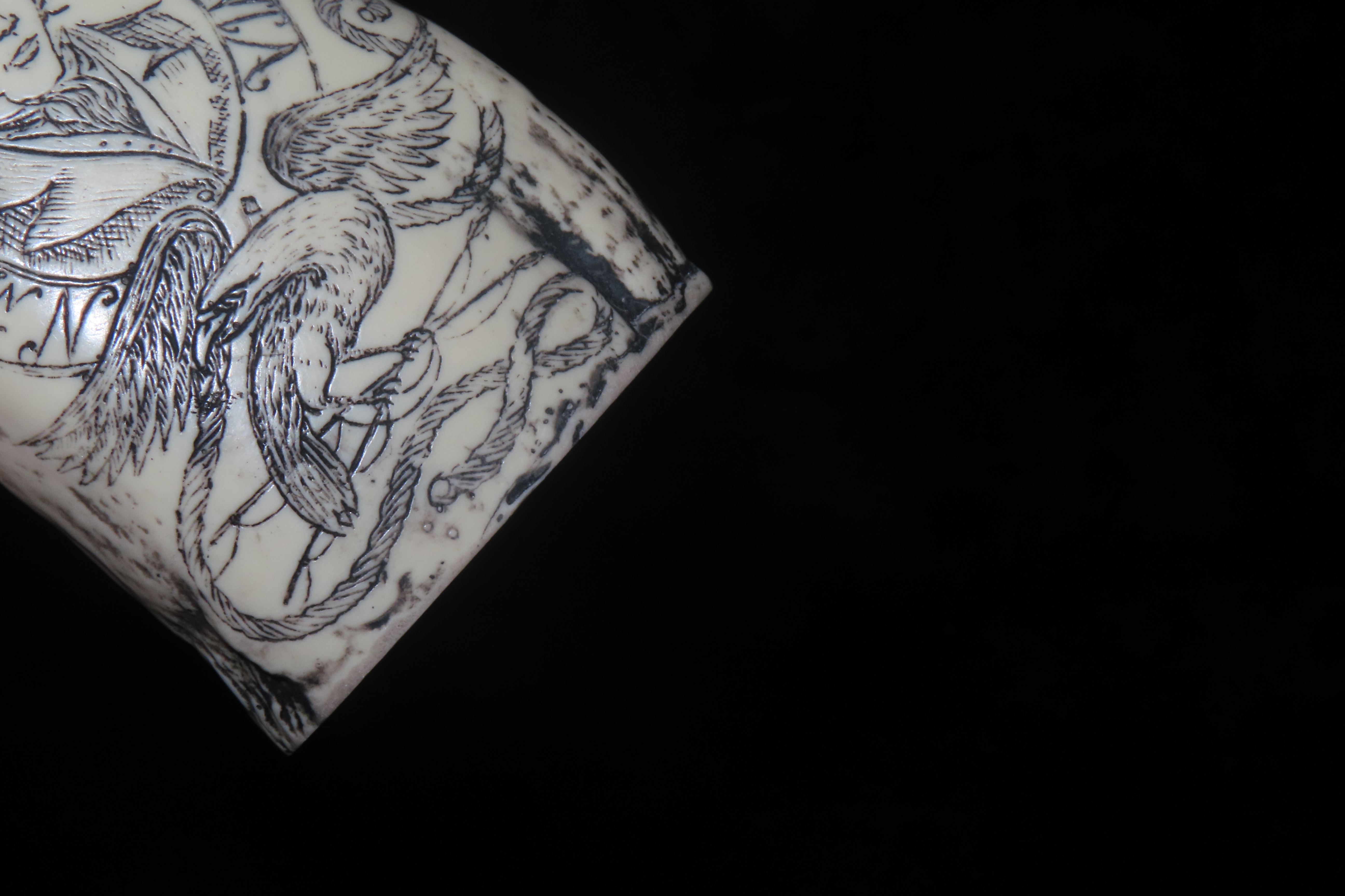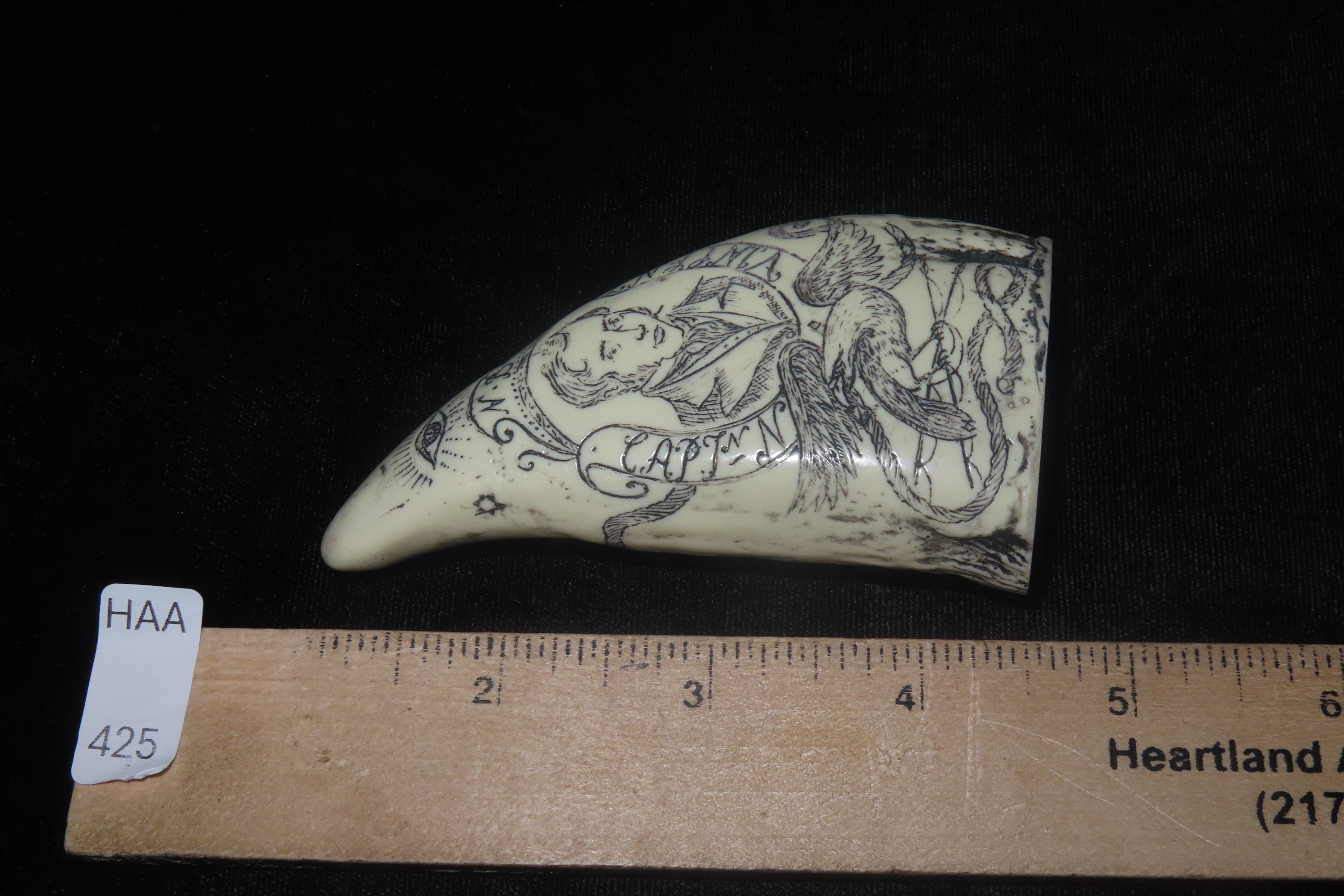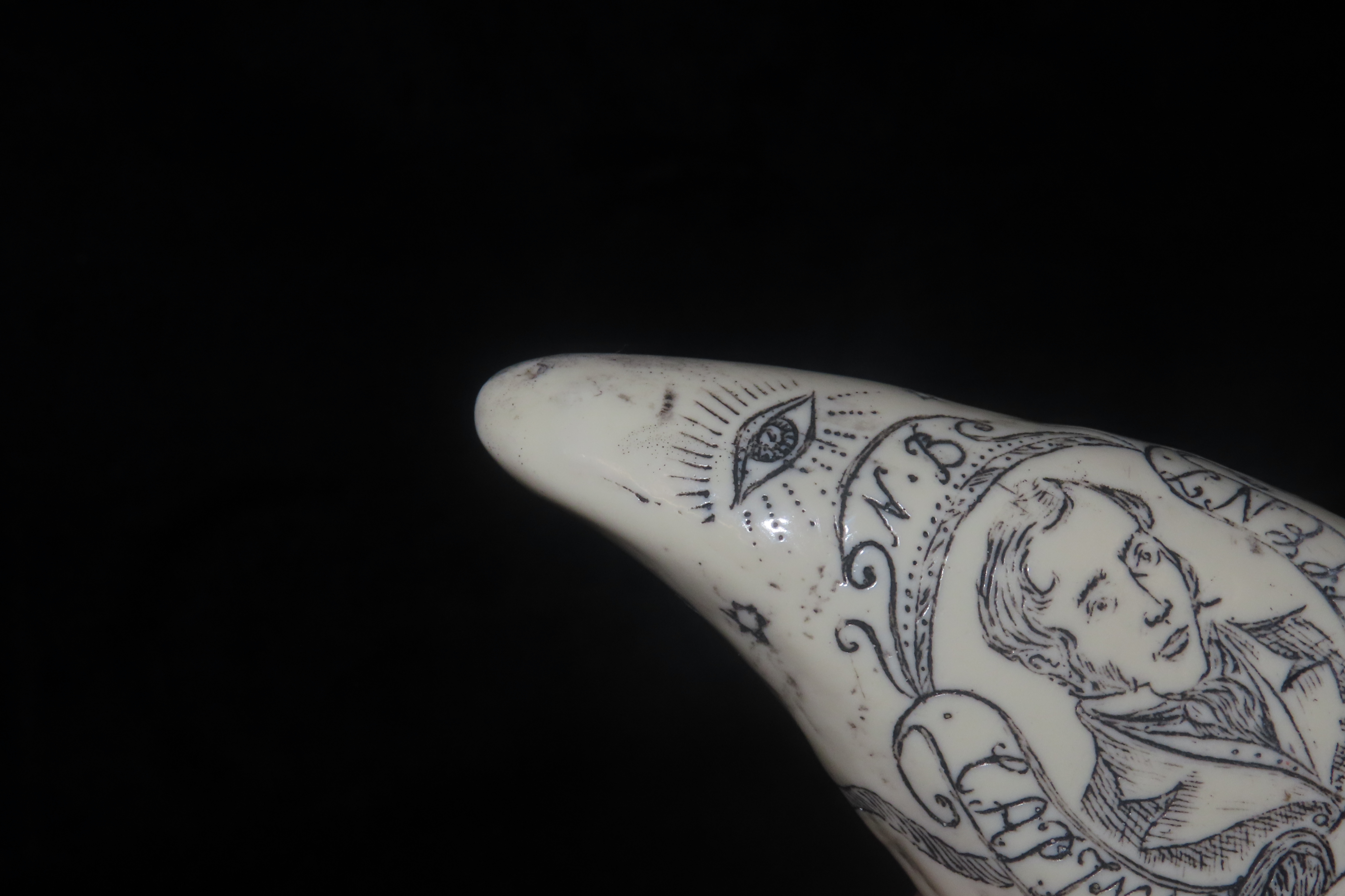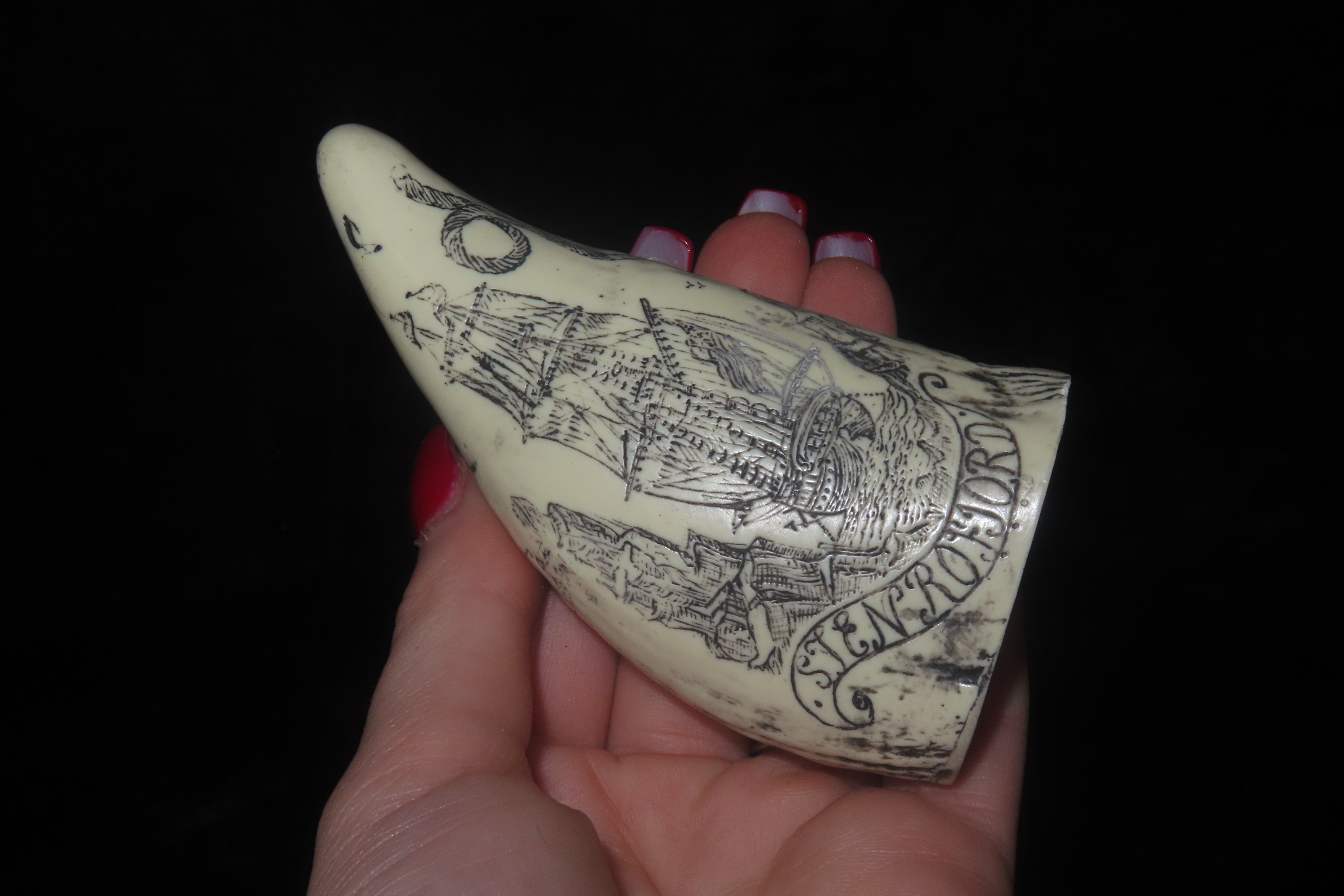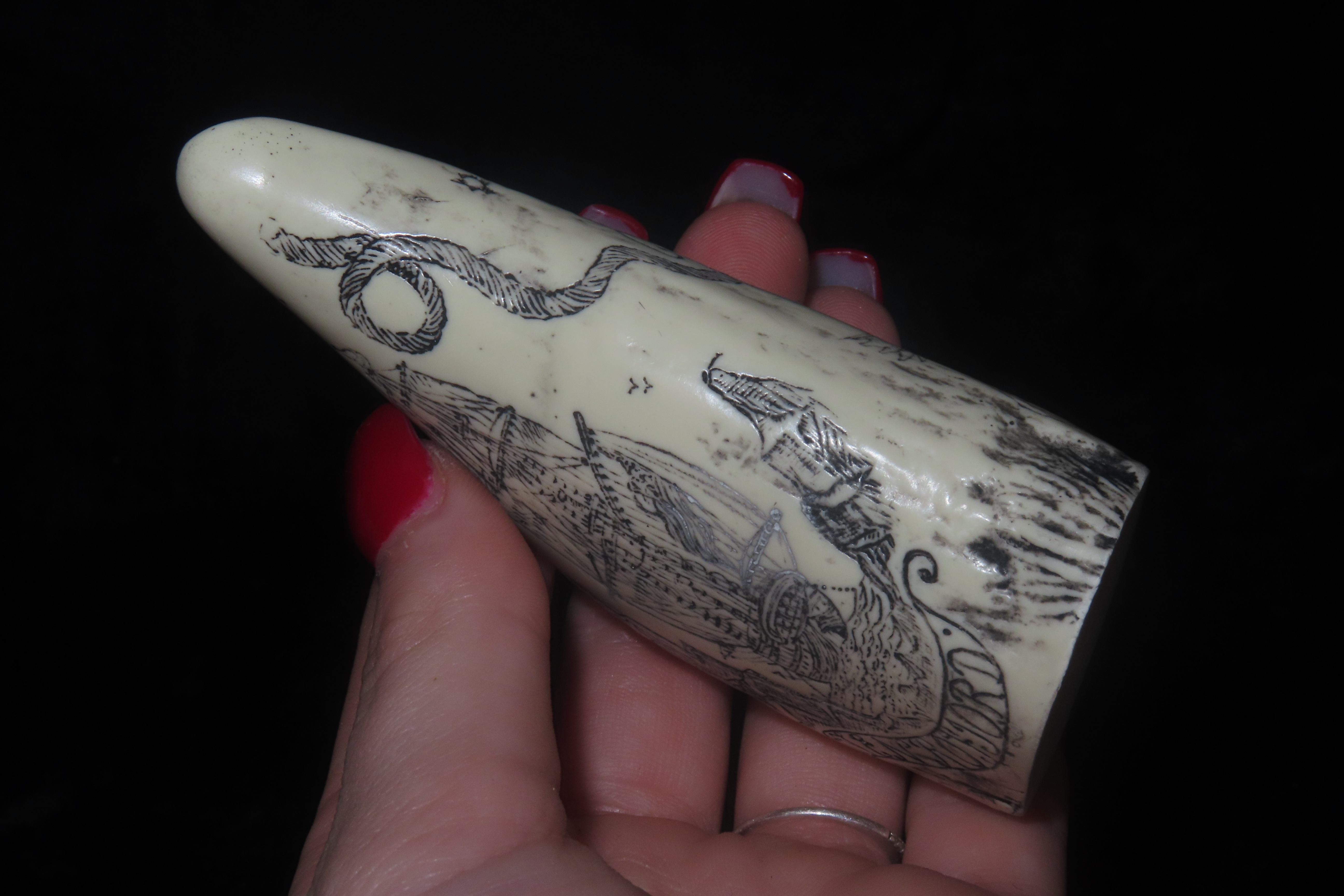 Vintage Scrimshaw Walrus Tooth Carving, Reproduction, Intricate Design