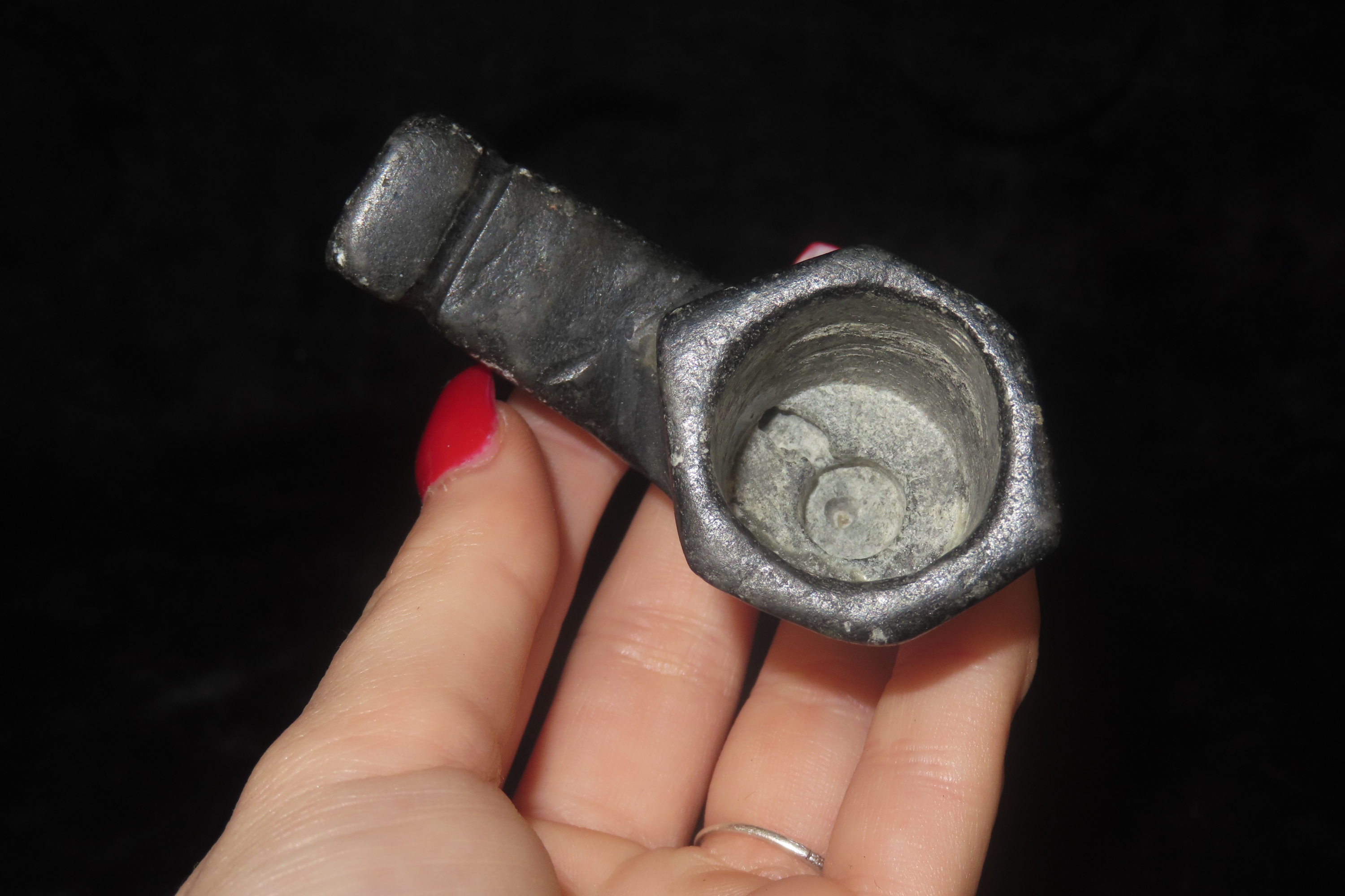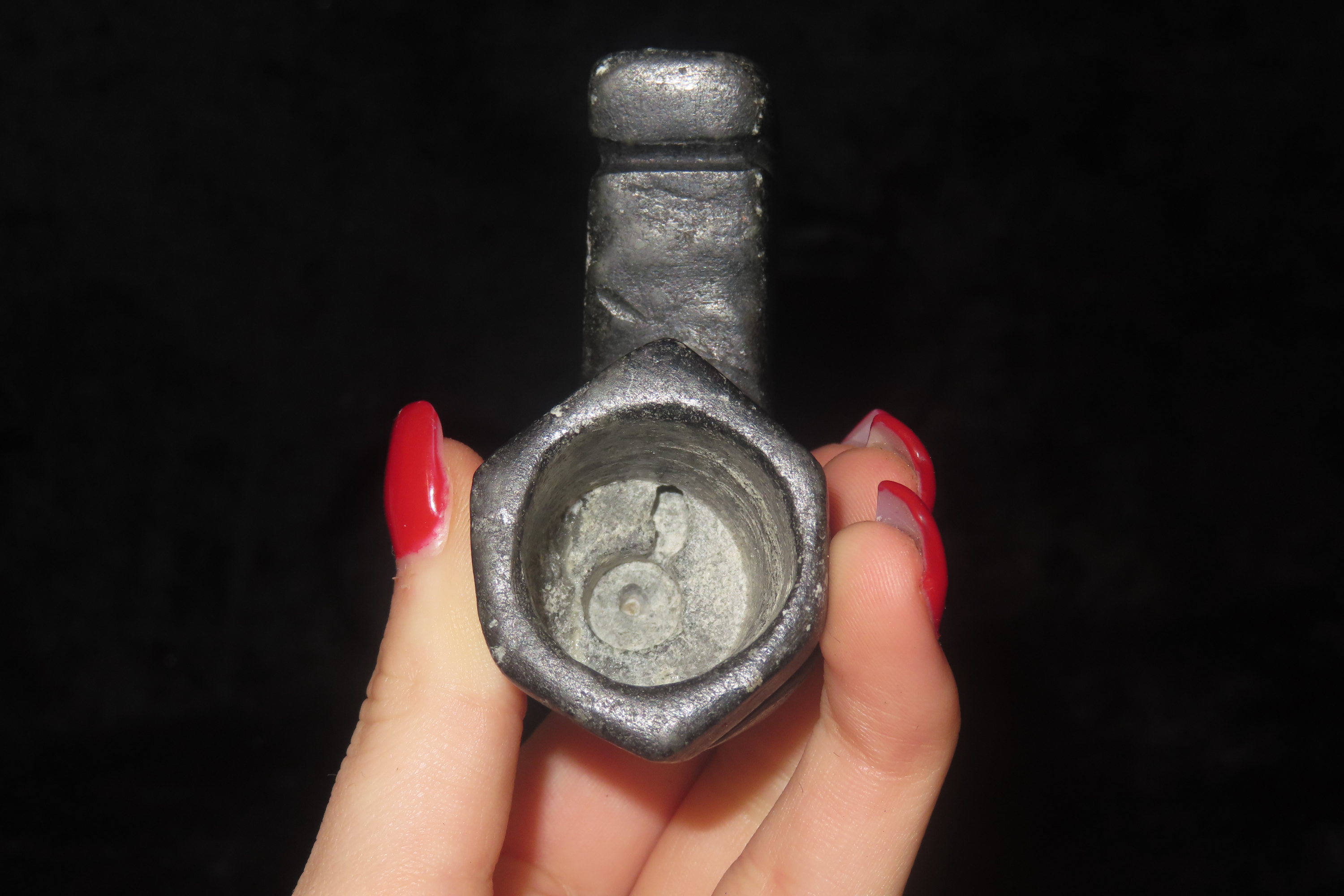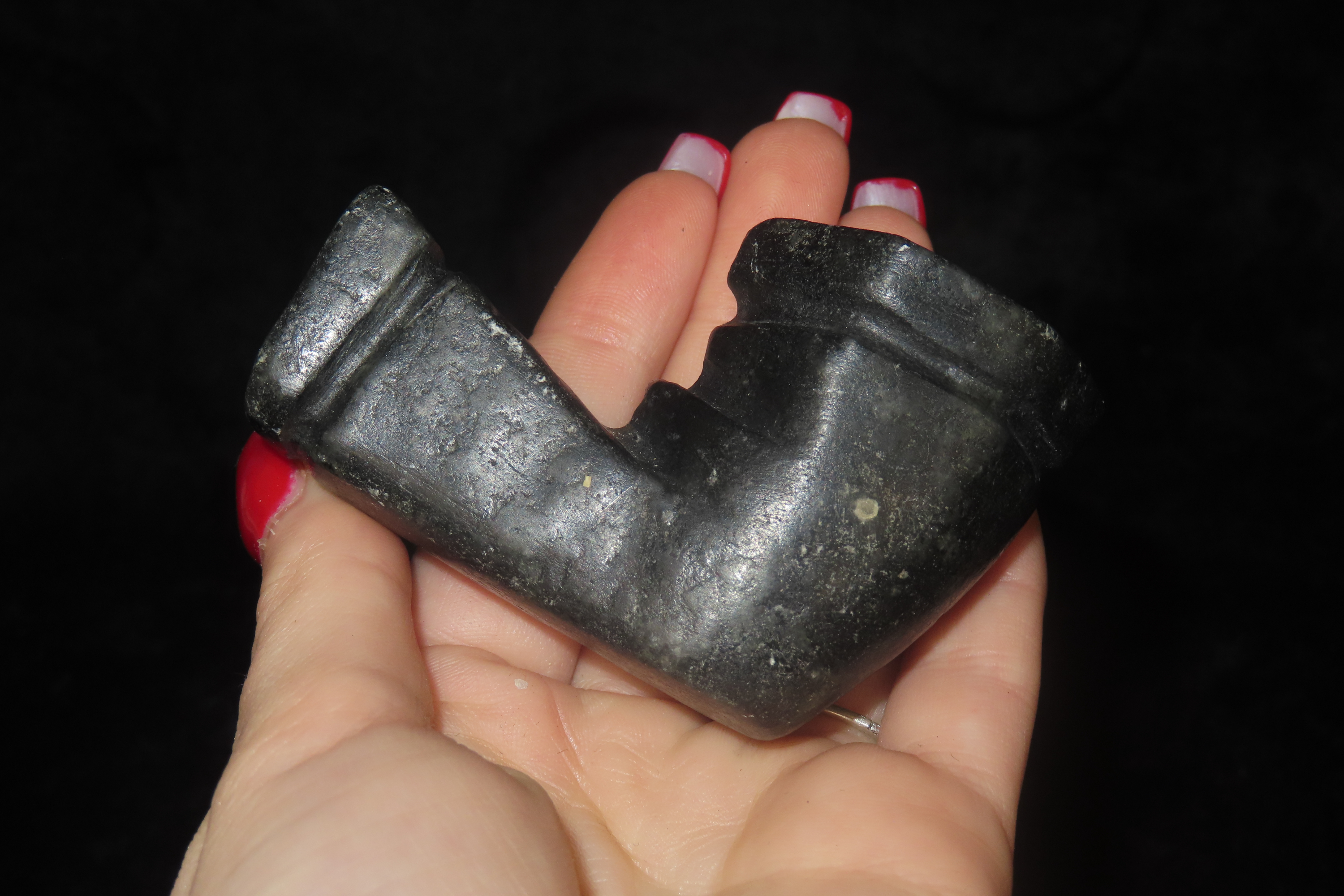 Early 1900’s Carved Stone Elbow Pipe, found along the Mississippi River by Ron Knowles
