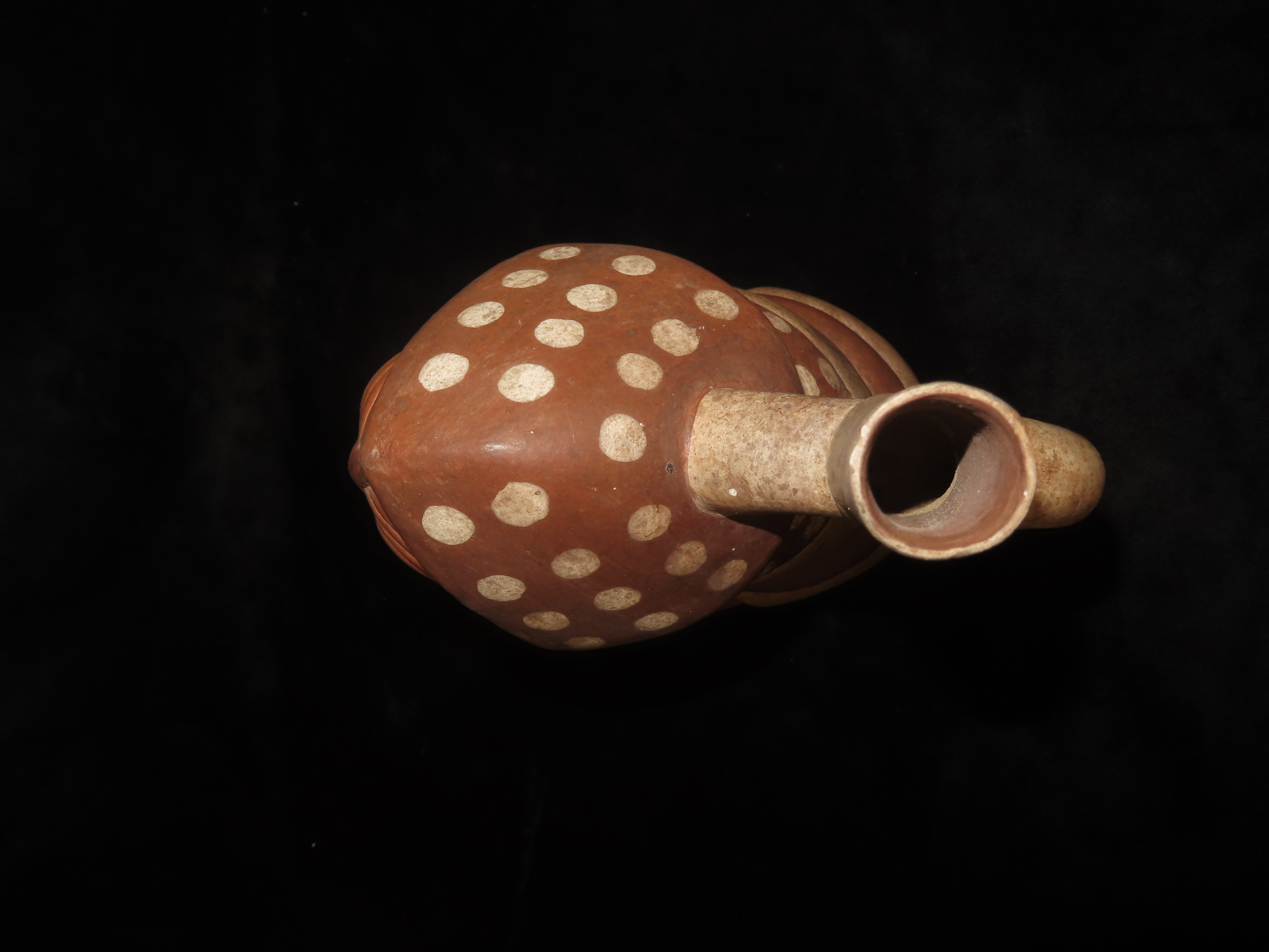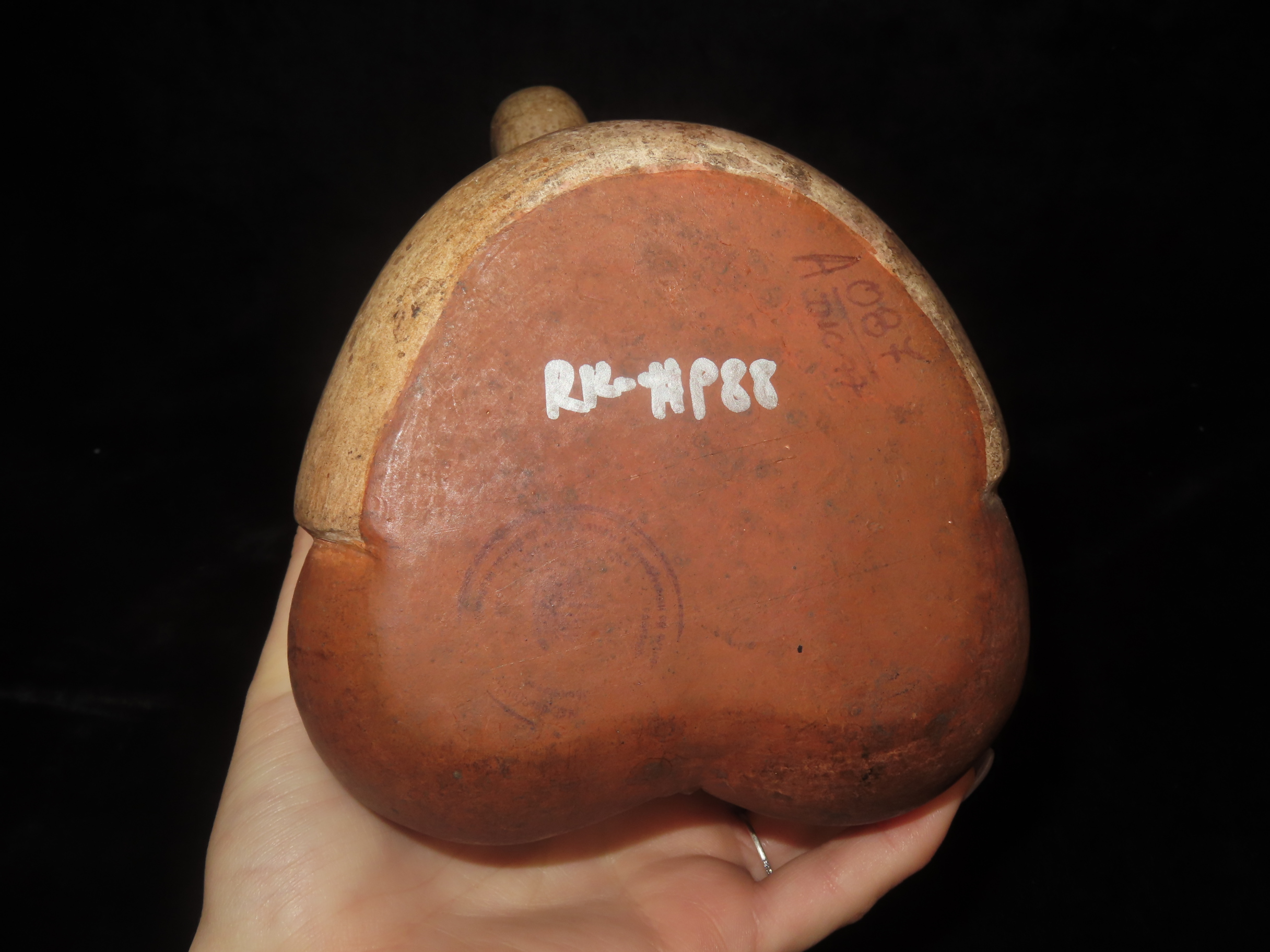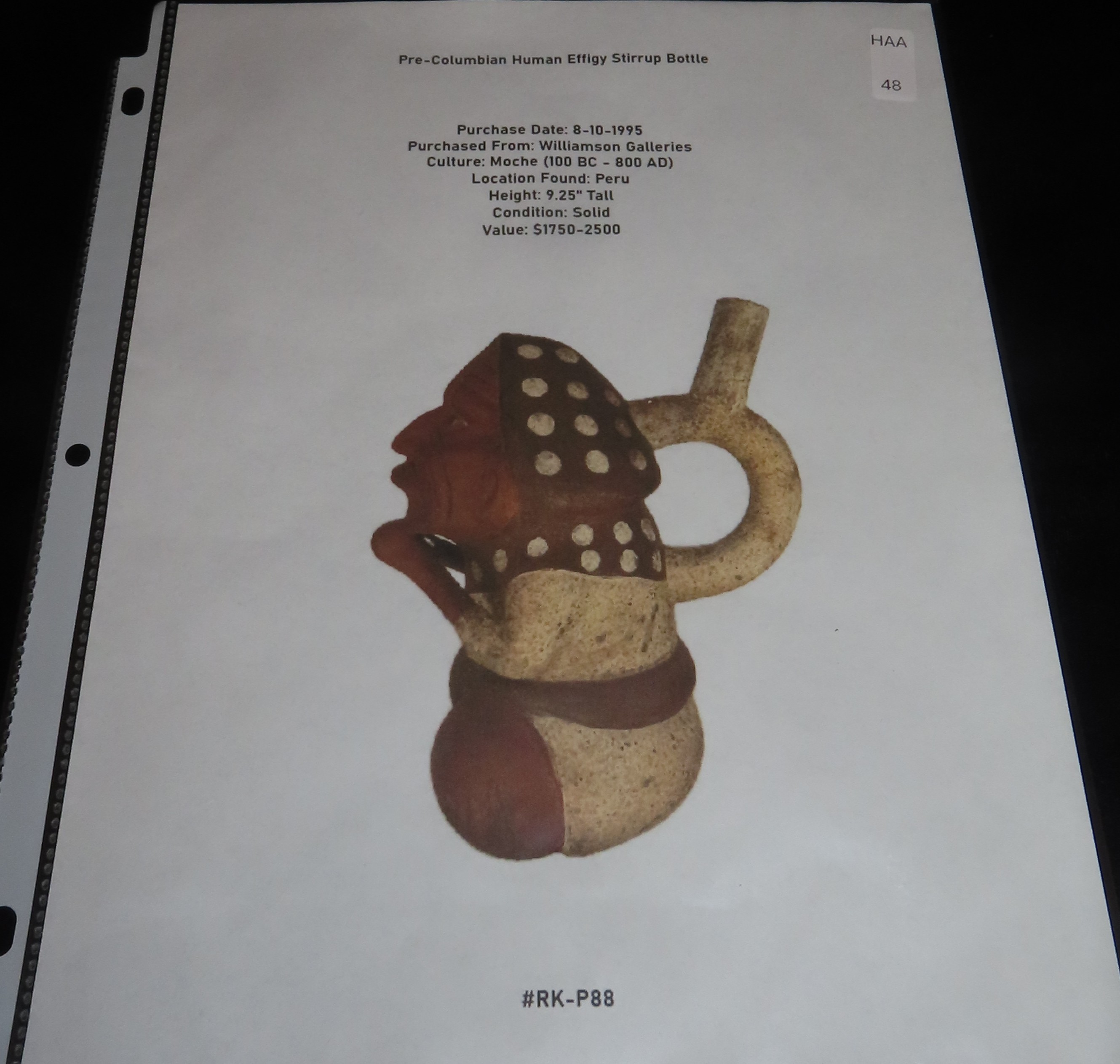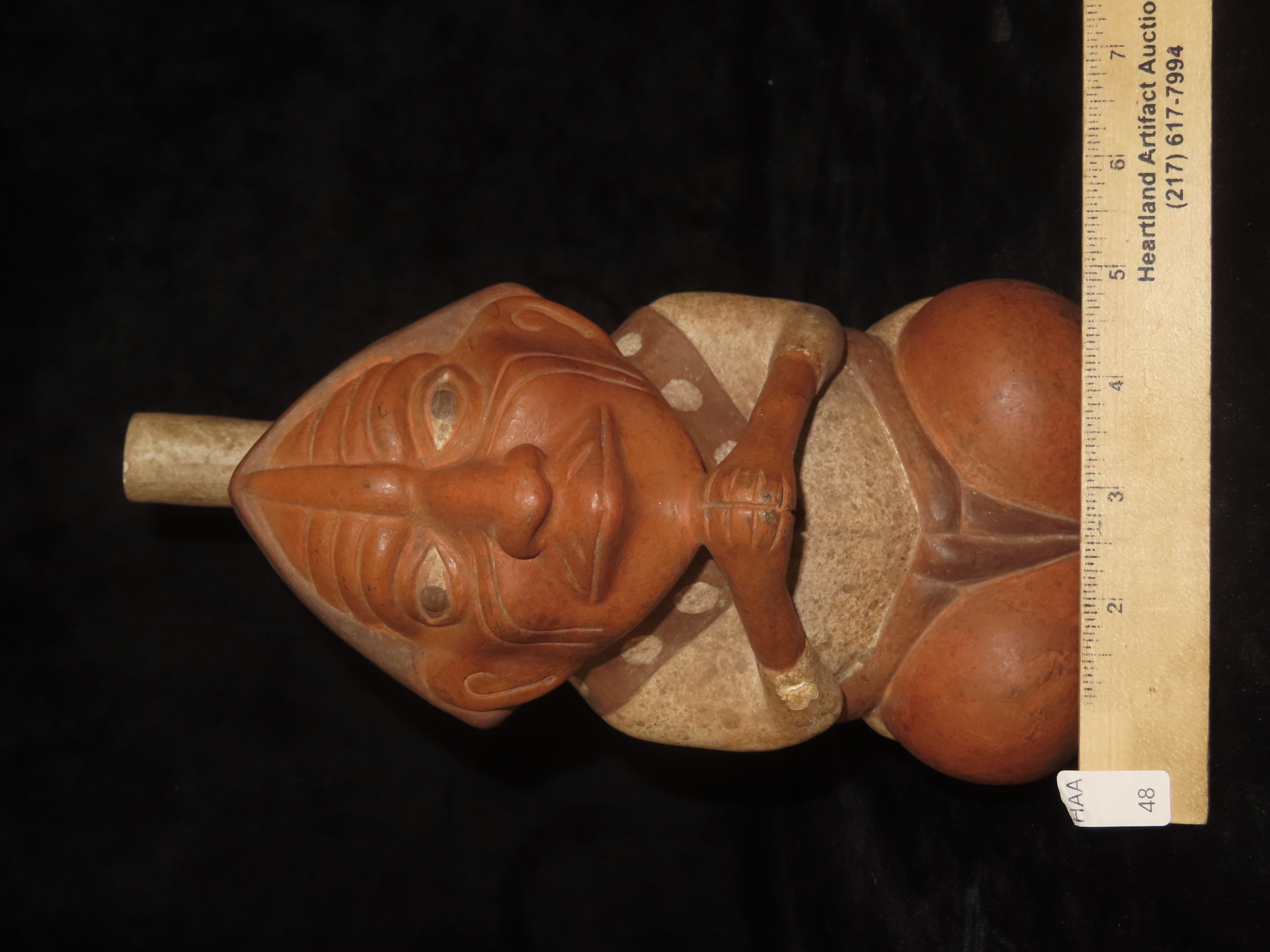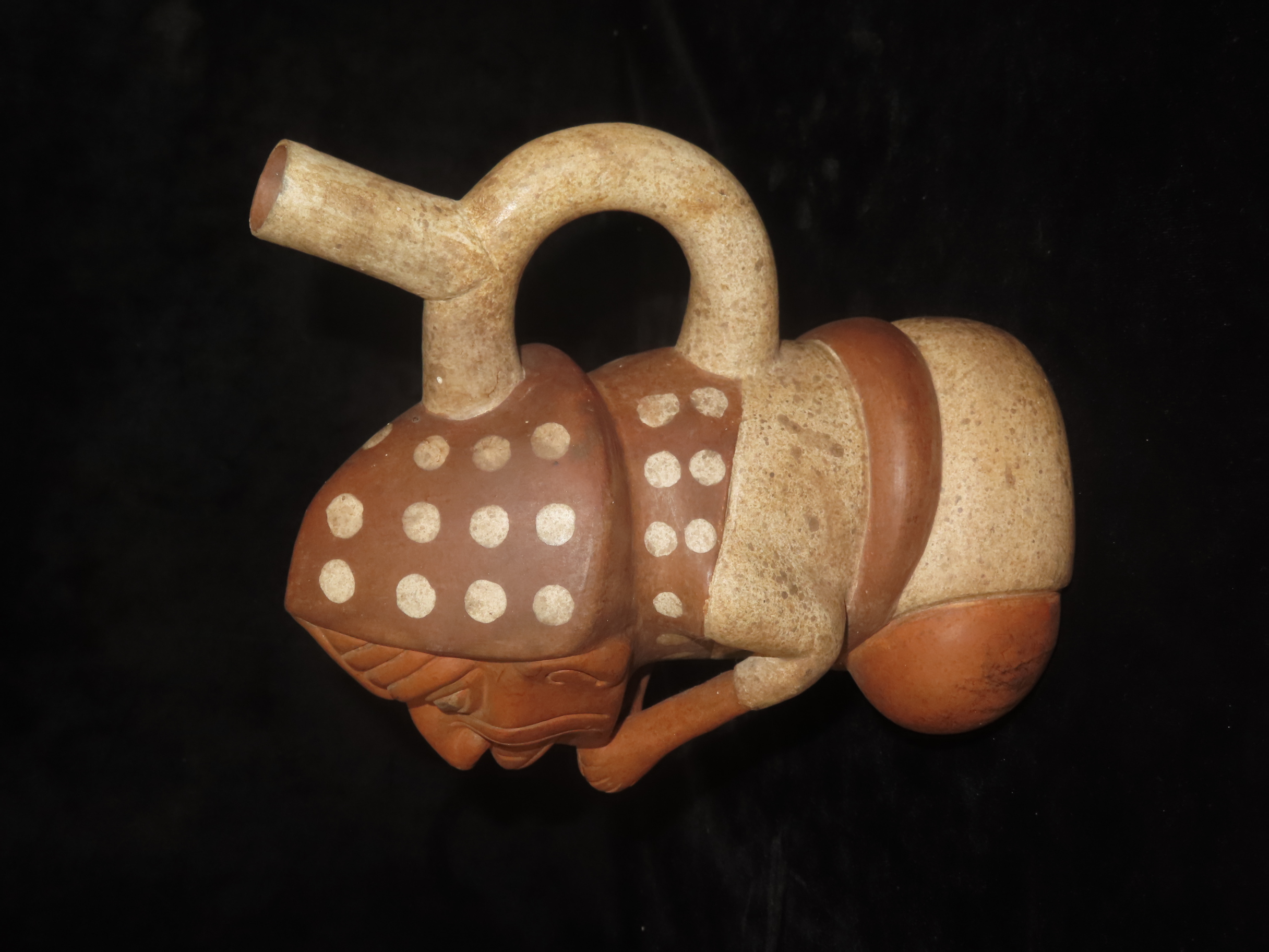 9 1/4″ Tall Pre-Columbian Moche Style Human Effigy Stirrup Bottle, Solid, Peru, #RK-P88
