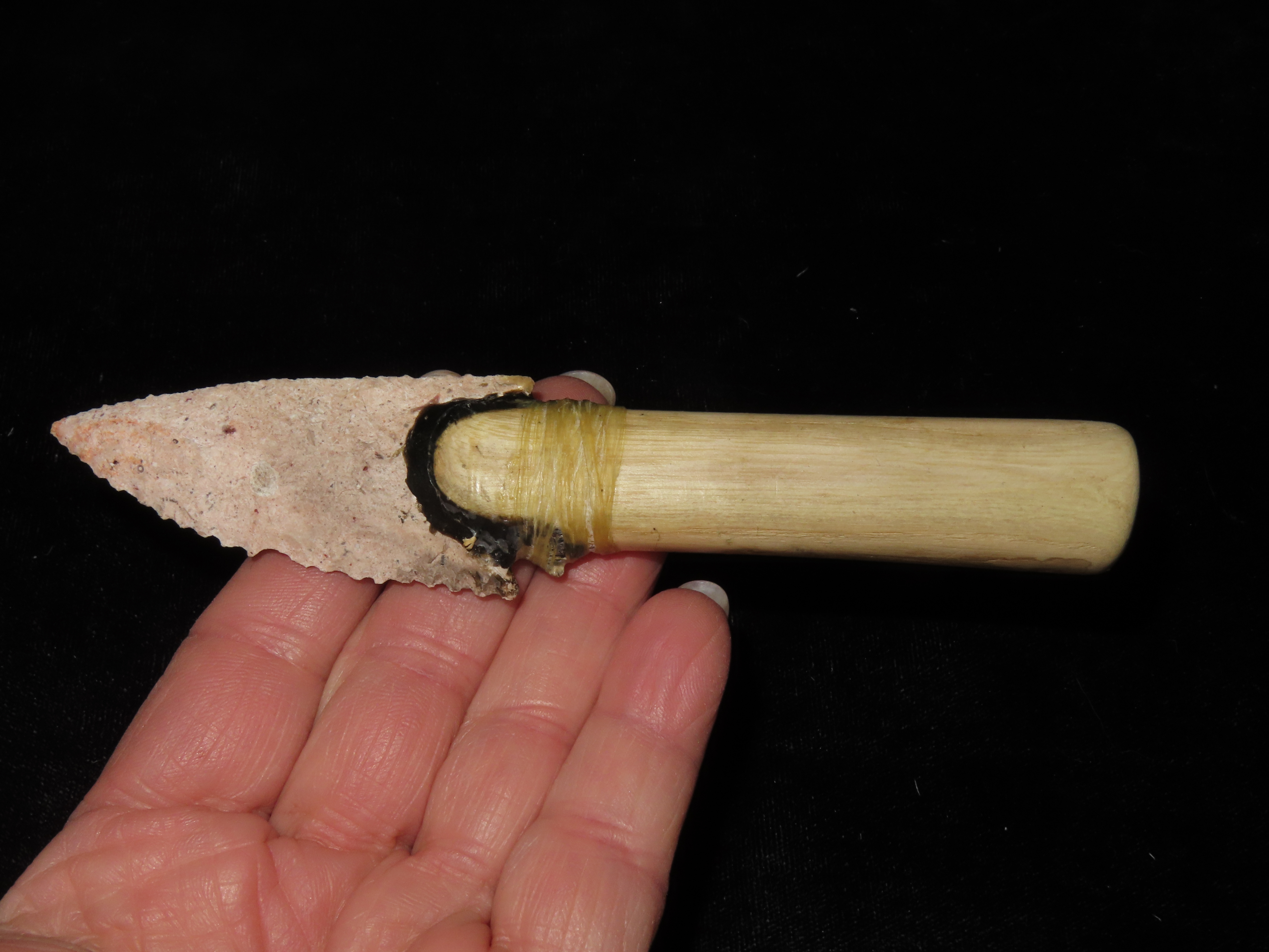 Nice Old Arrowhead Modernly Hafted like the Ancient Indians Did, Wood Handle with Pine Pitch & Sinew
