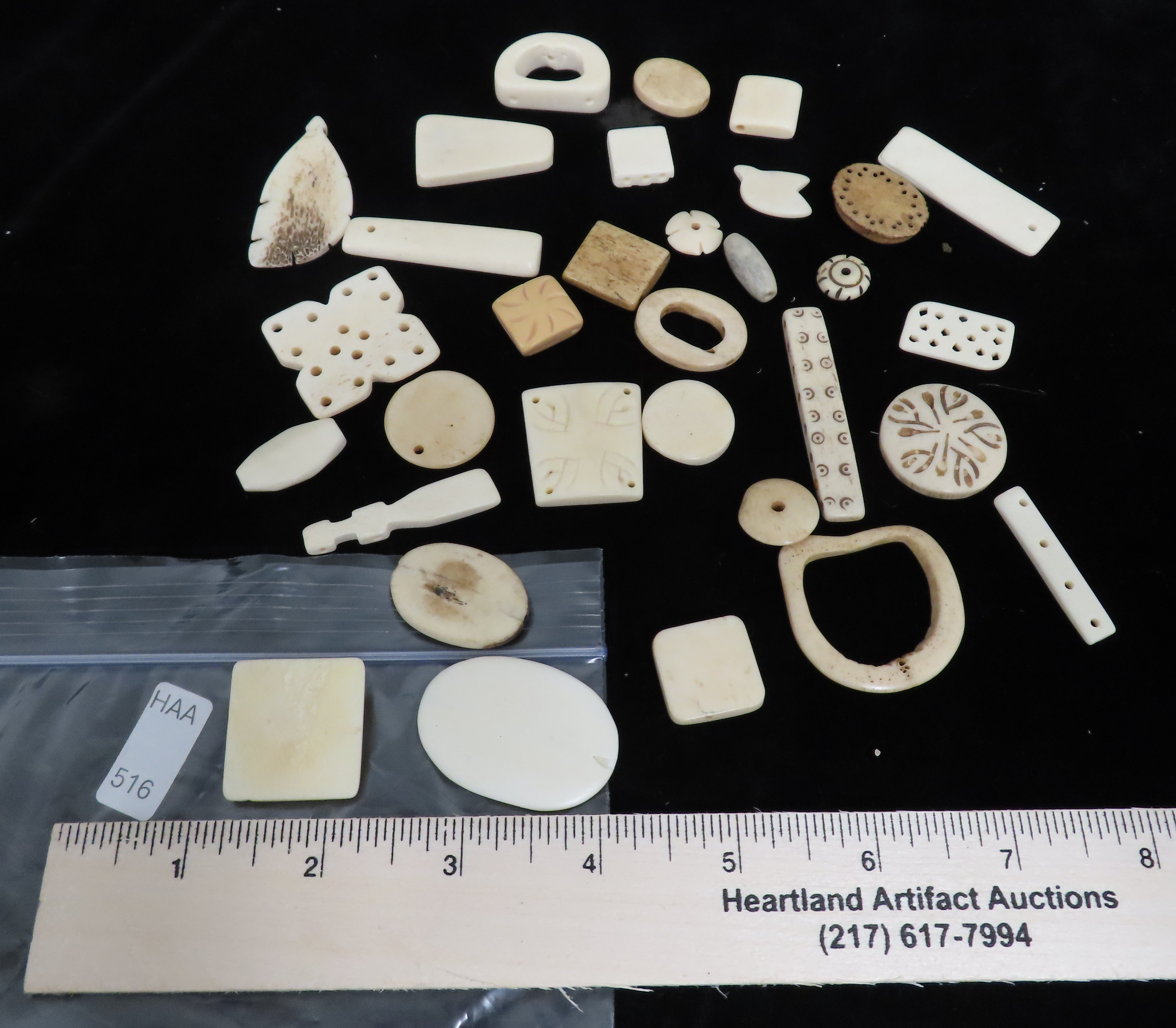 Lot of Tourist Trade early 1900’s Carved Bone Pendants & Beads from the Dakotas