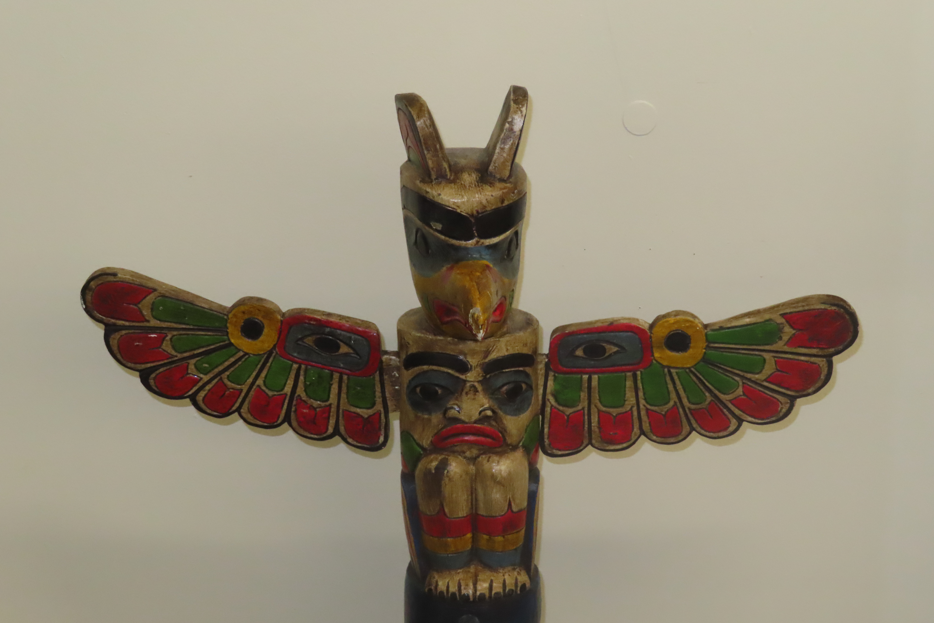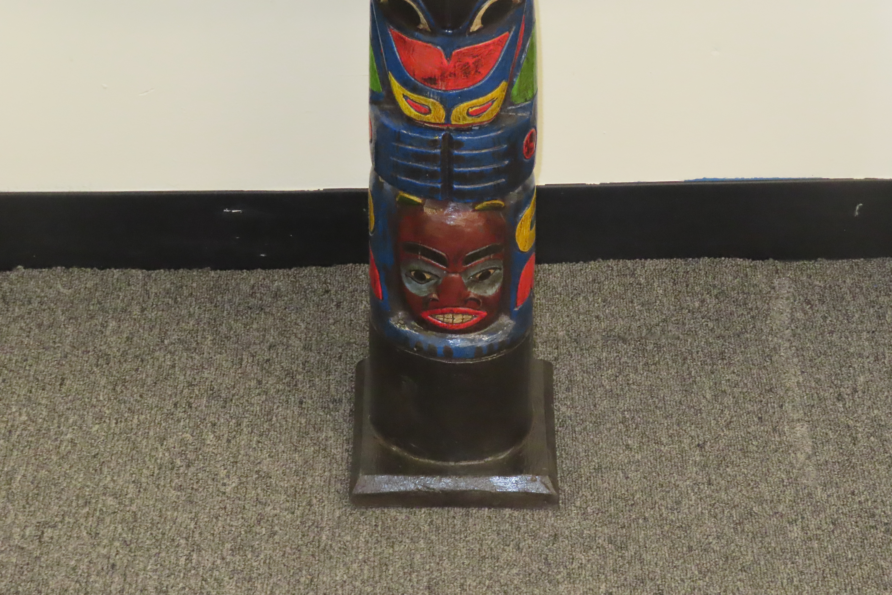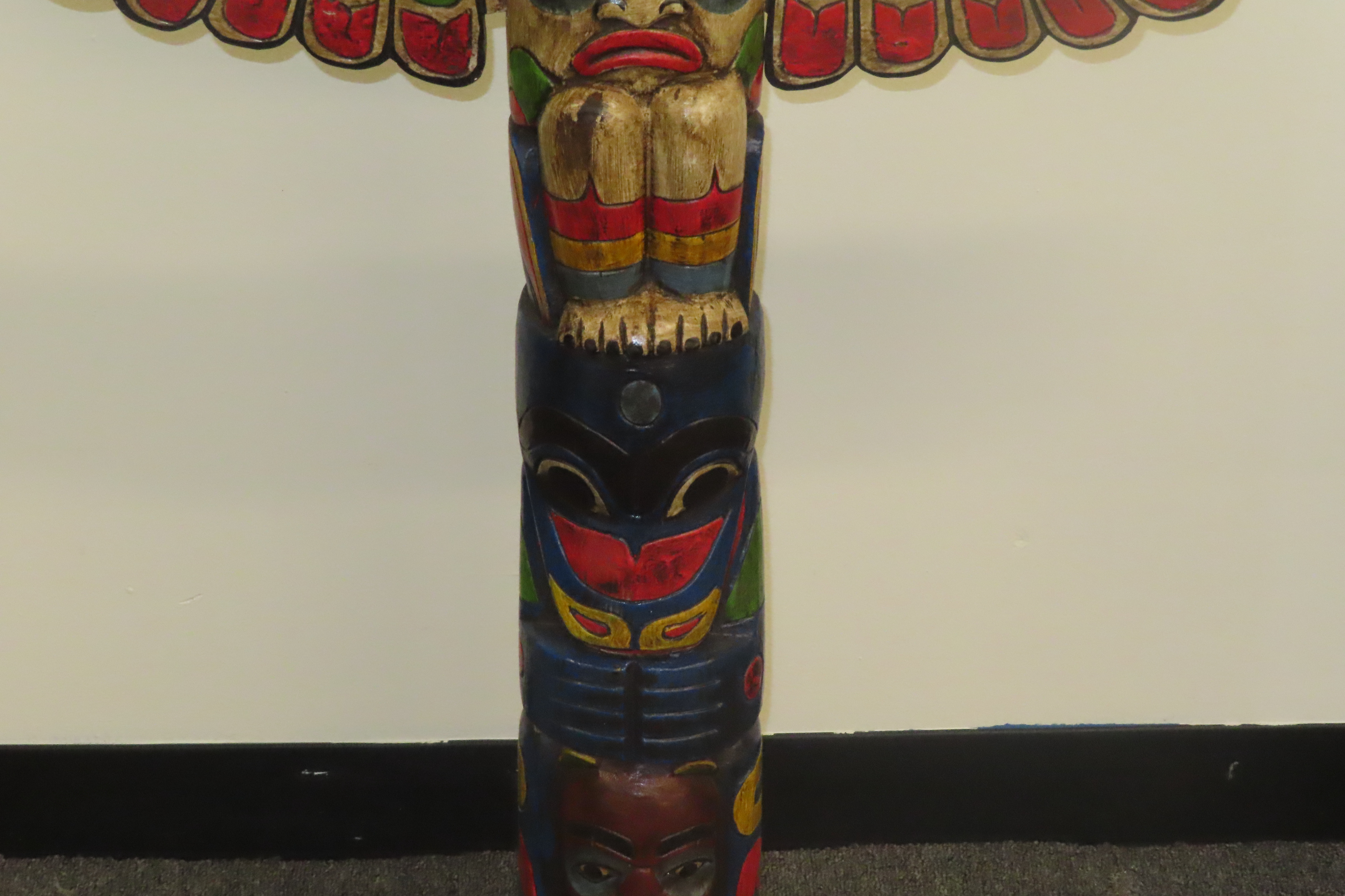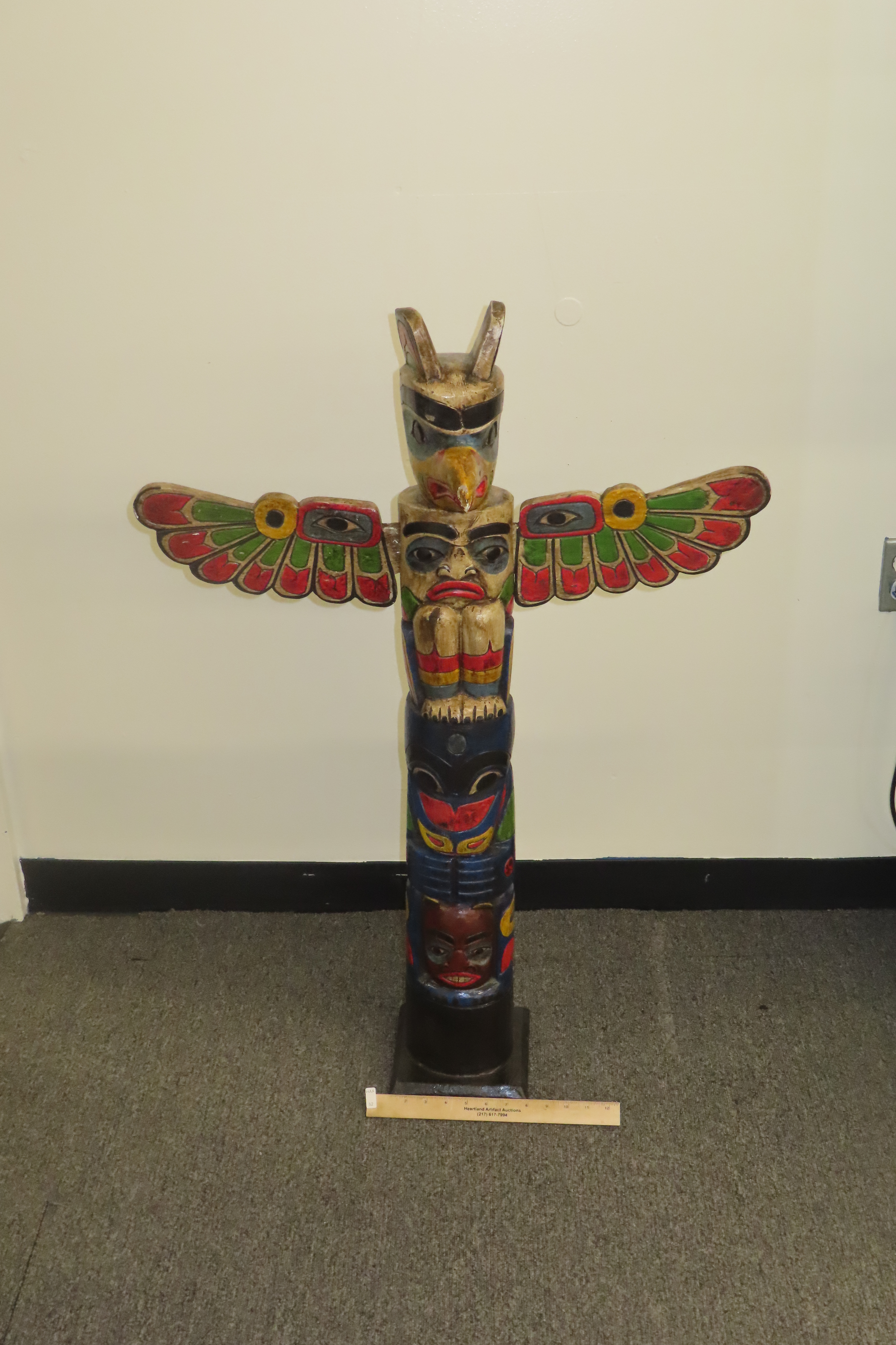 39 1/4″ Tall Northwest Coast Style Wooden Totem Pole
