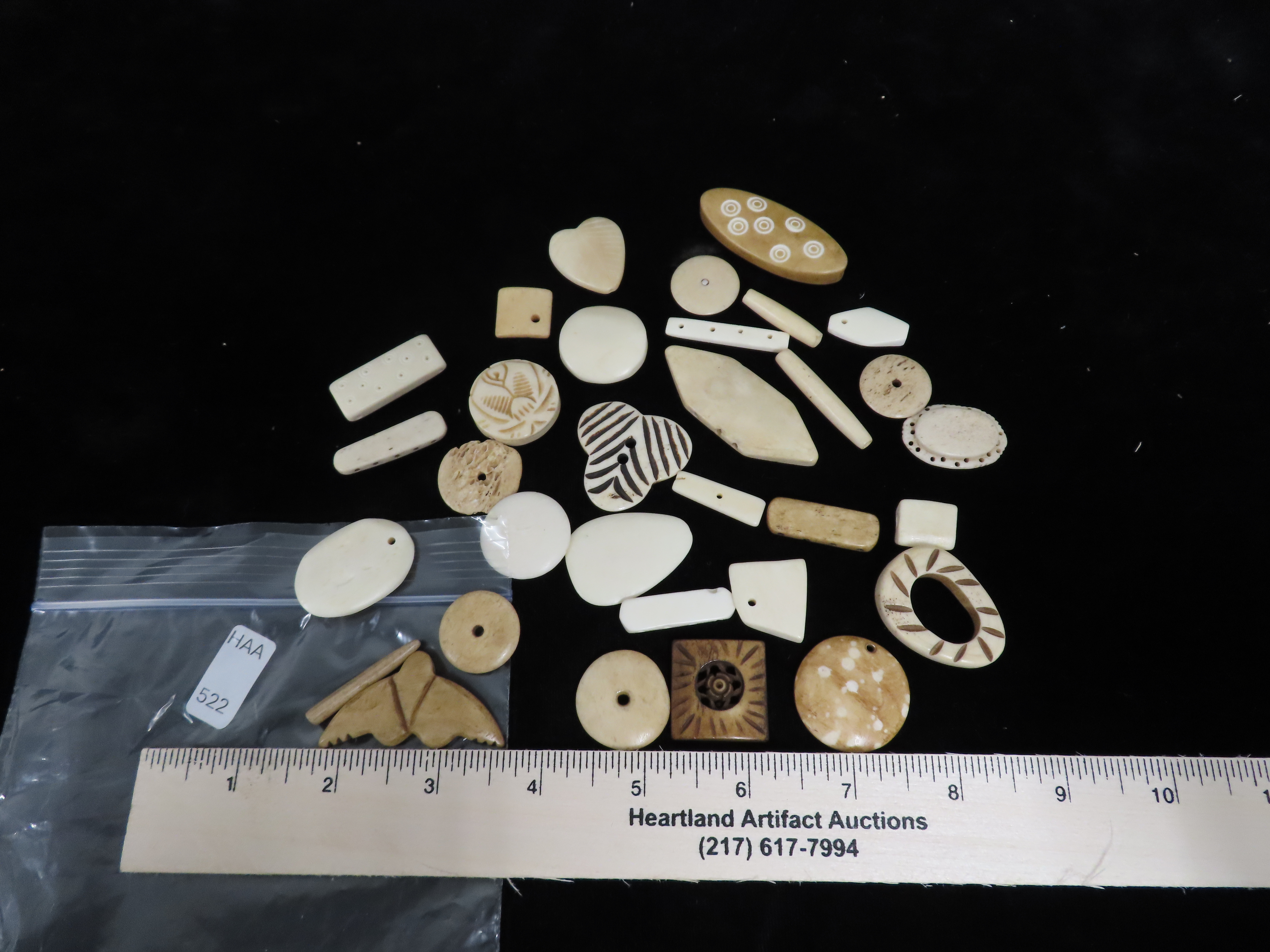 Lot of Tourist Trade early 1900’s Carved Bone Pendants & Beads from the Dakotas