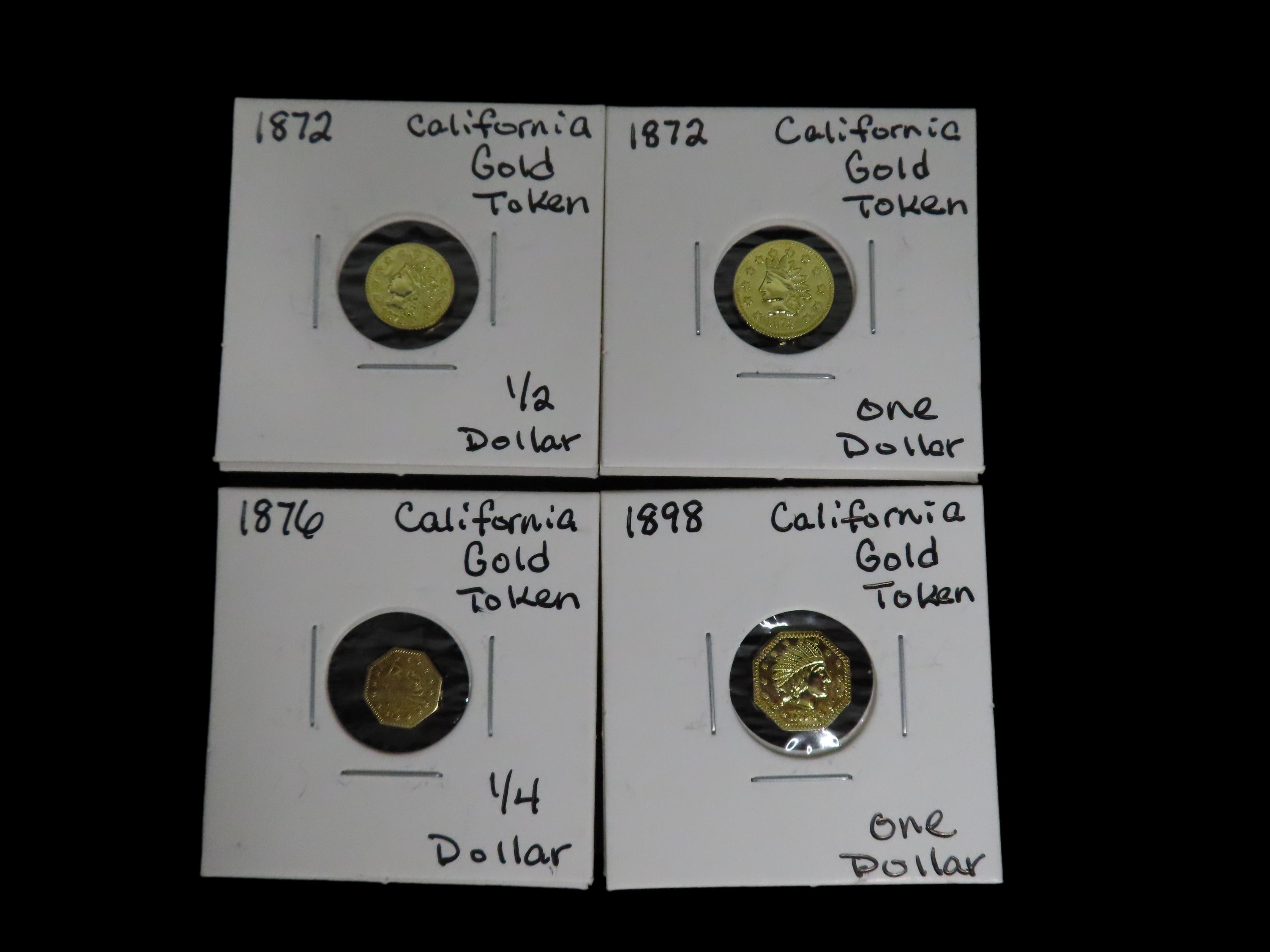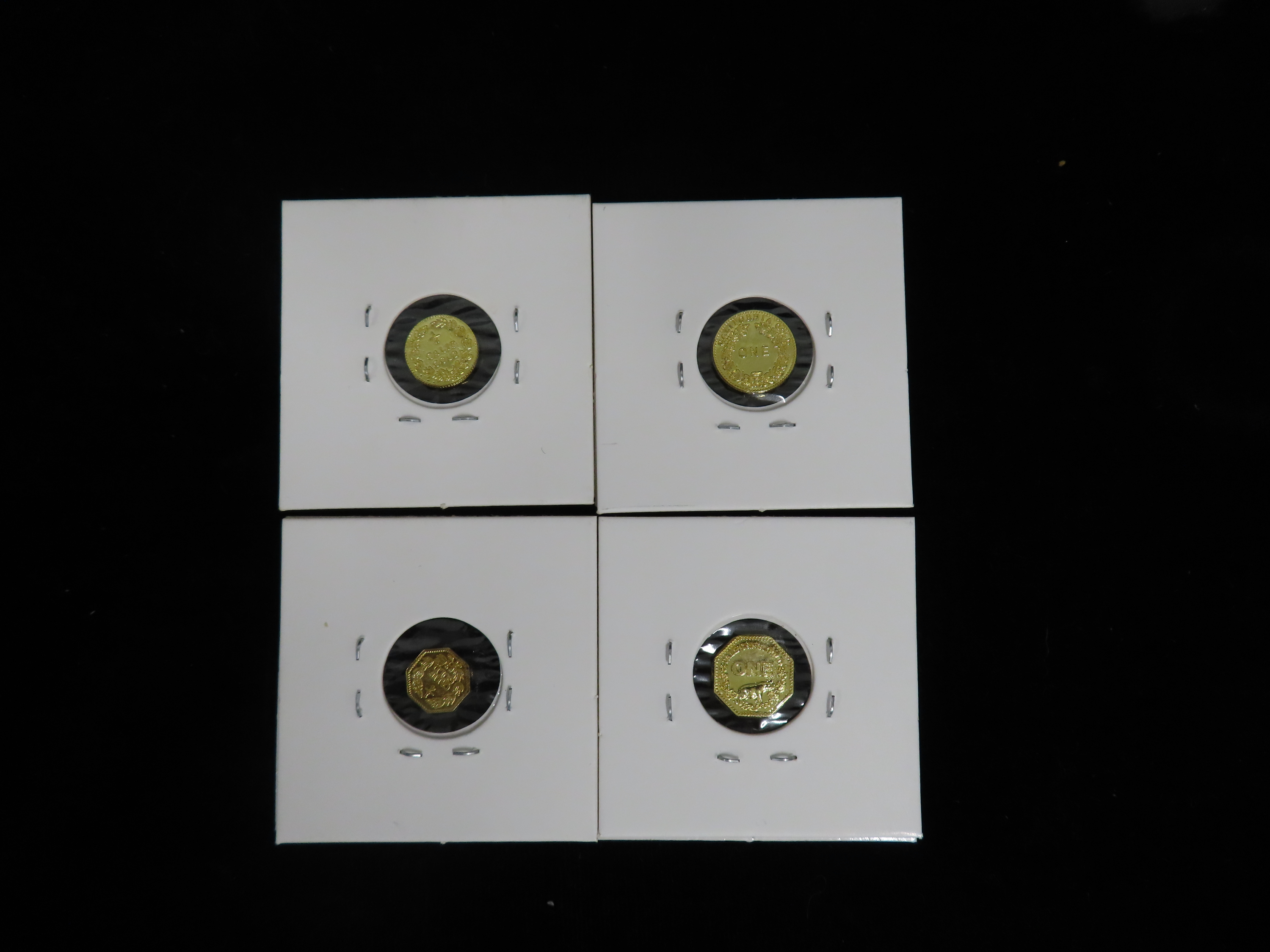 Lot of 4 Gold Plated Reproduction Gold Tokens, California