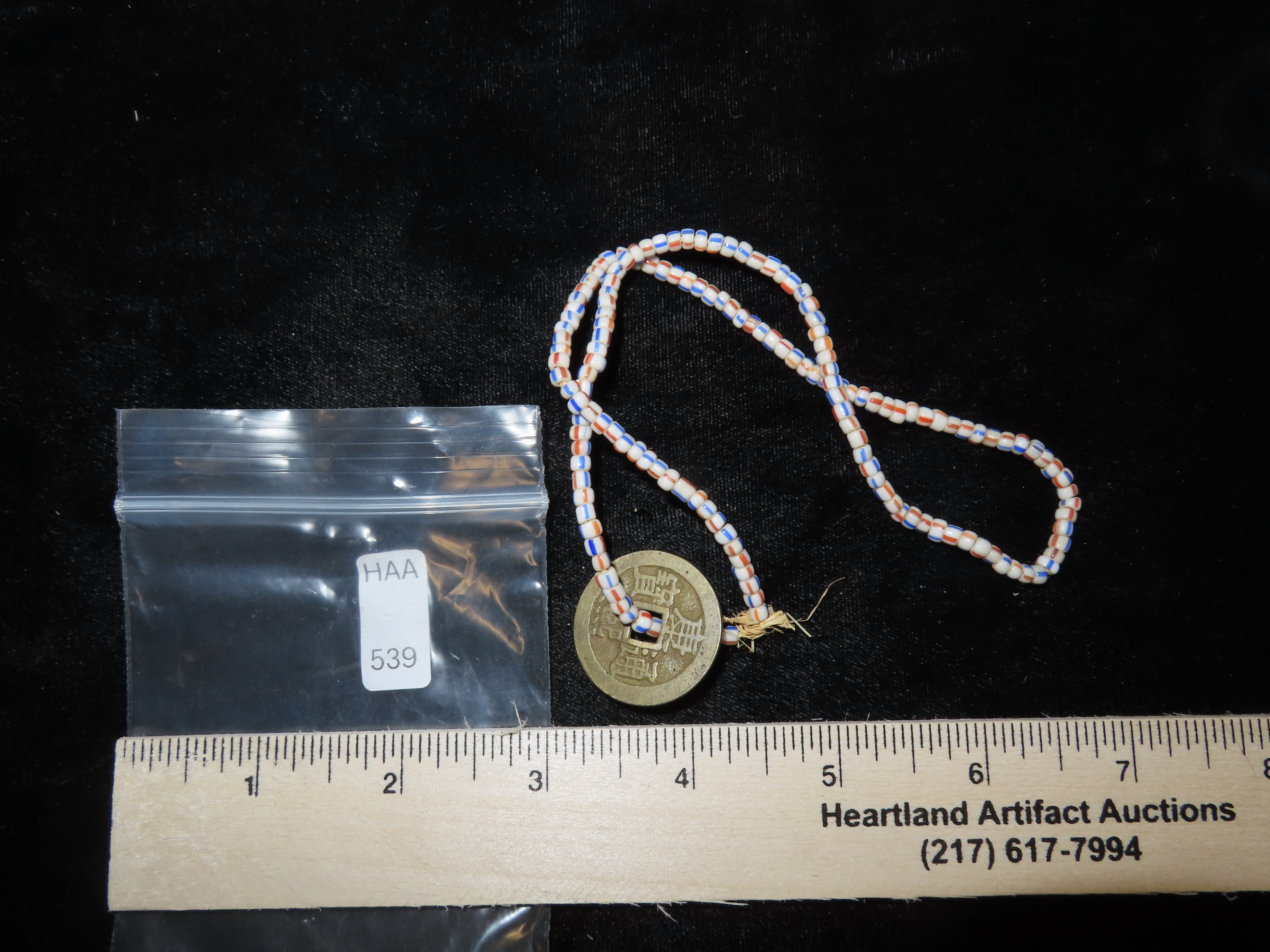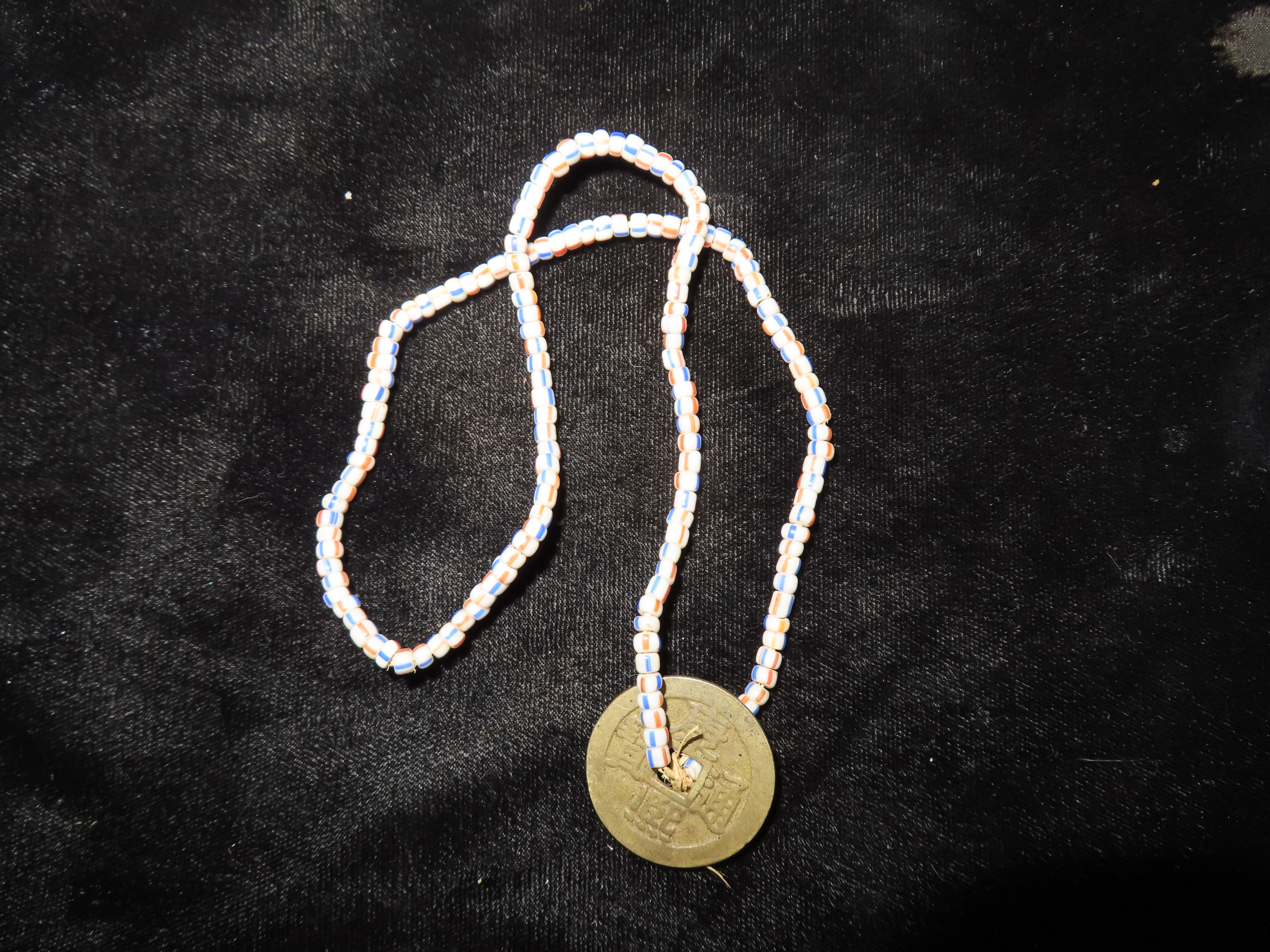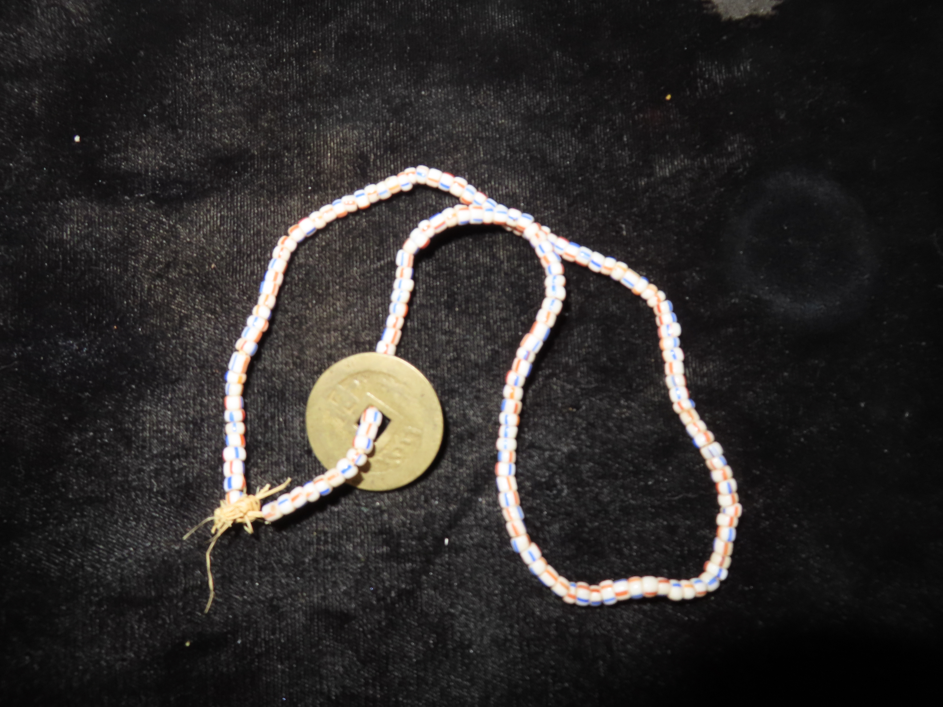 Trade Bead Necklace with Old Foreign Coin, Columbia River Area