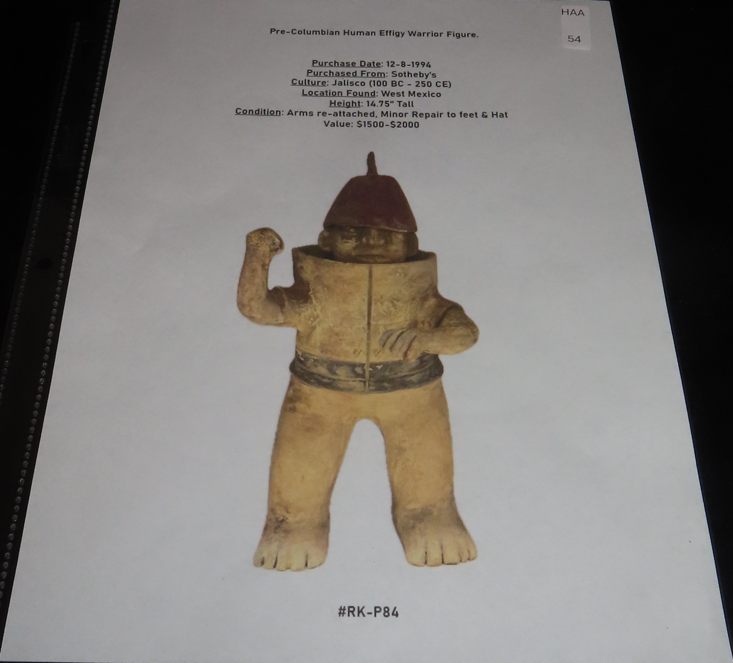14 3/4″ Tall Pre-Columbian Jalisco Style Human Effigy Warrior Figure, Solid, West Mexico, #RK-P84