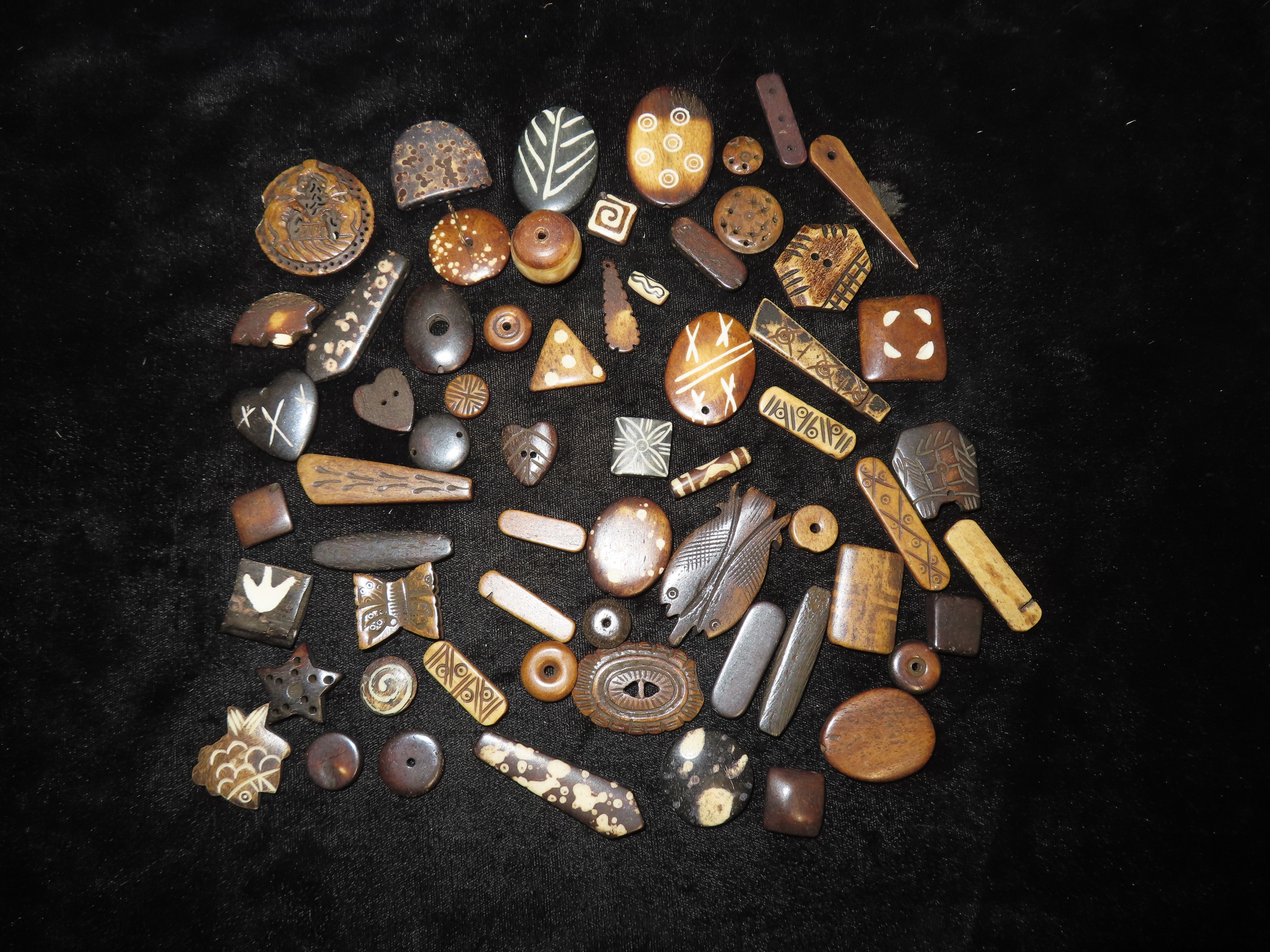 Huge Lot of Vintage Carved Bone Beads & Pendants
