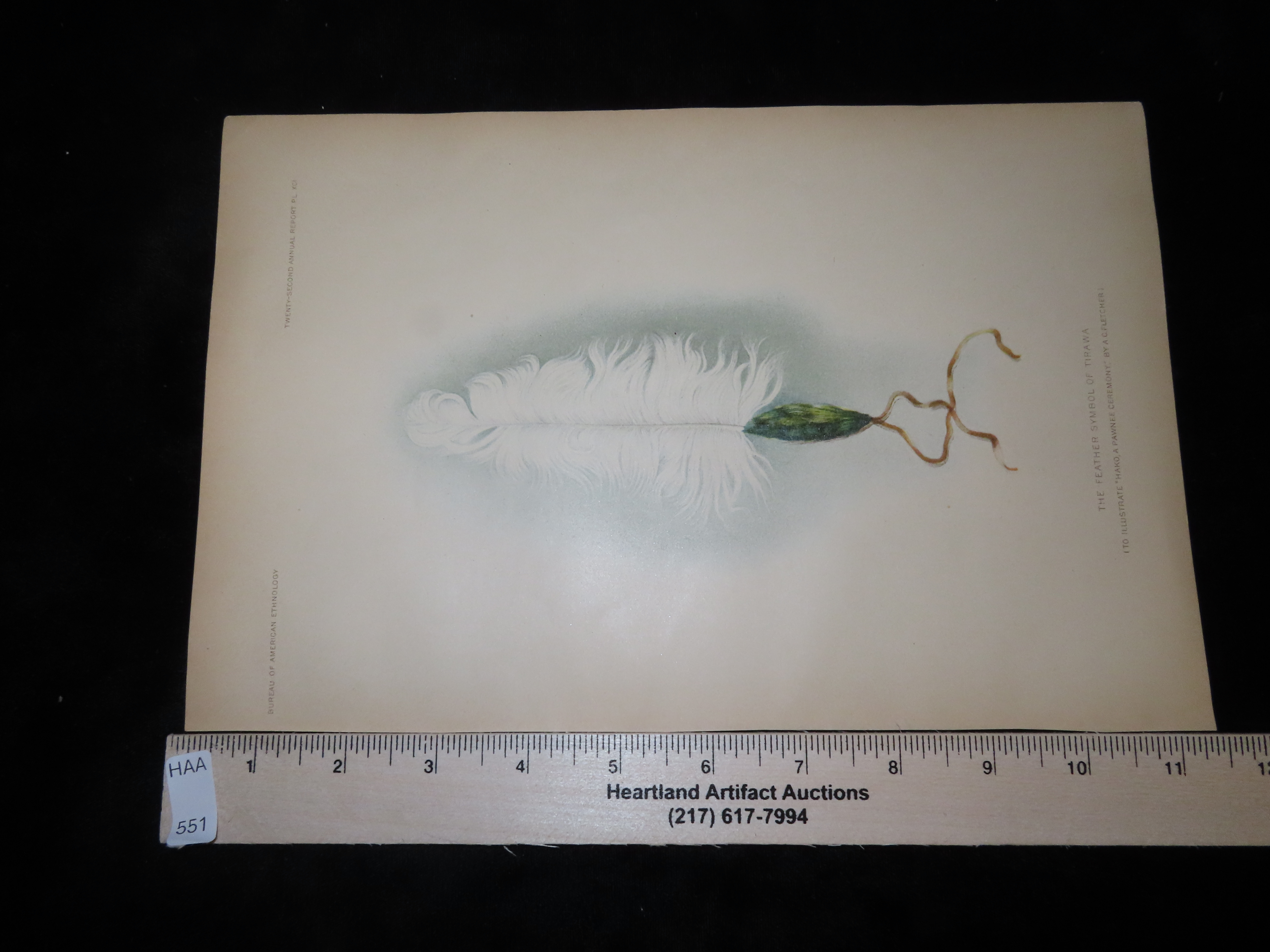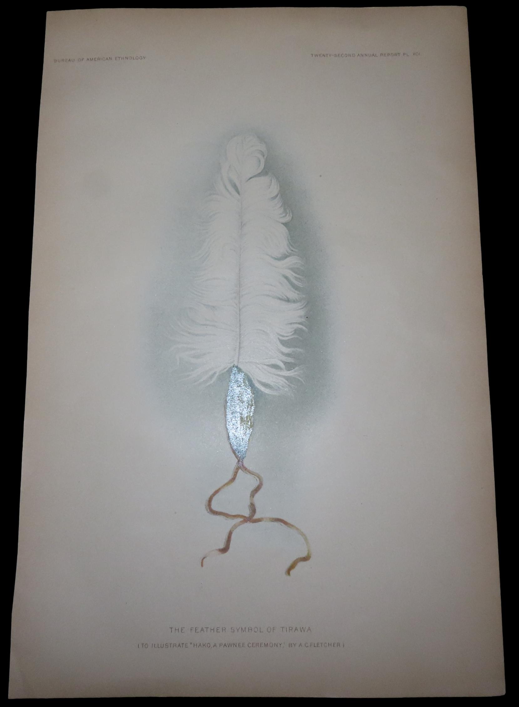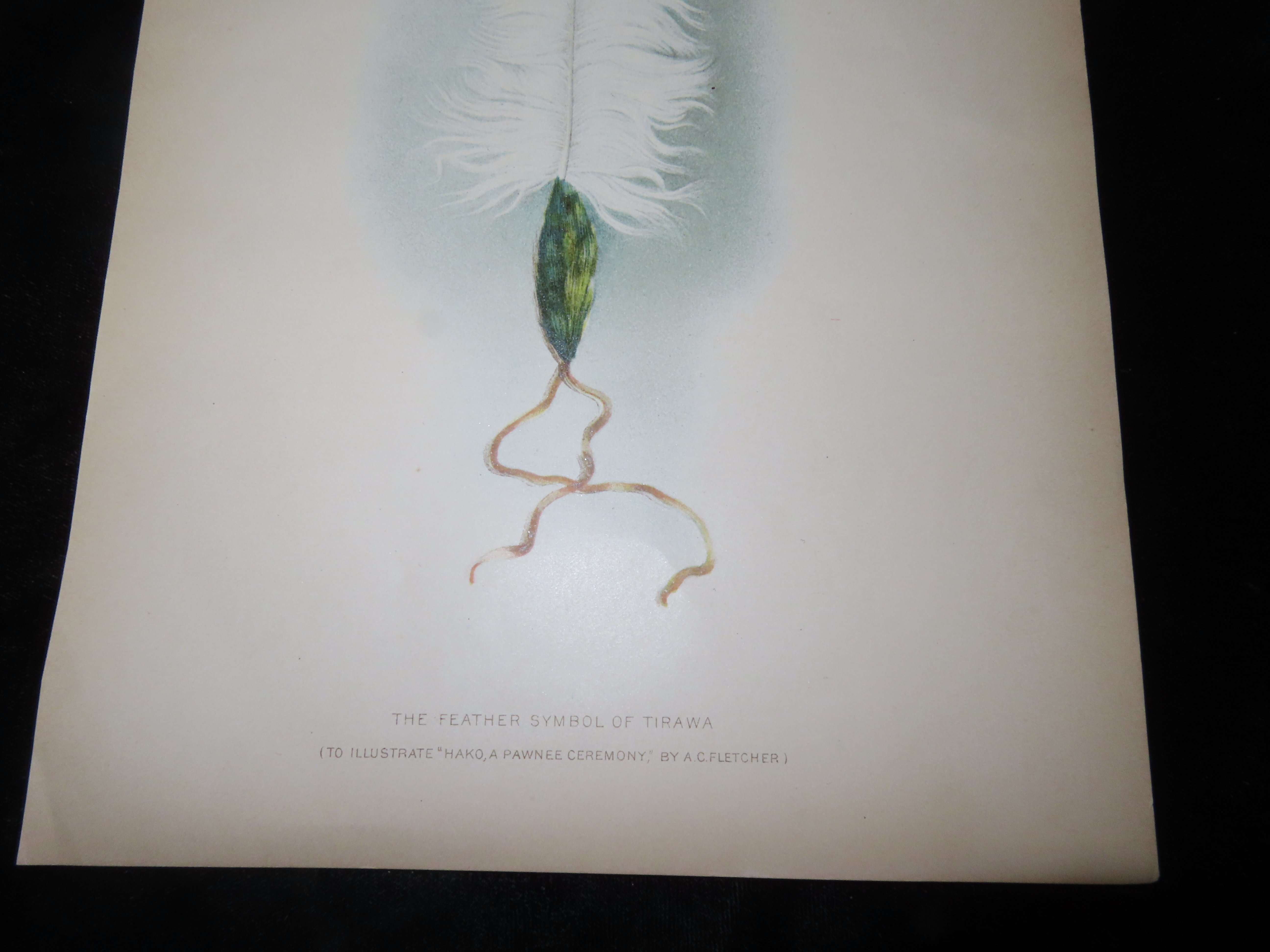 Original 1904 Pawnee Indian Print. The Feather Symbol of Tirawa