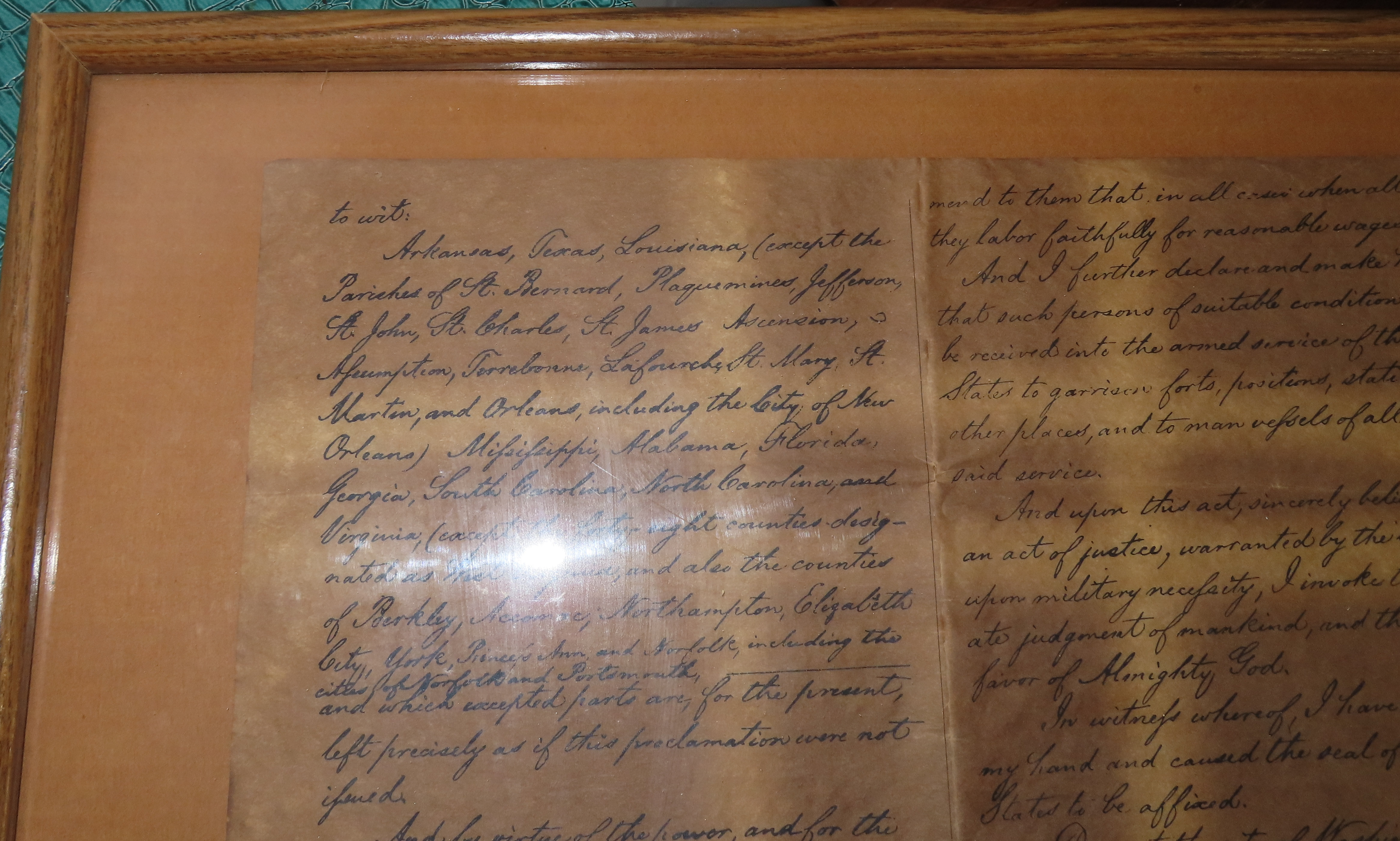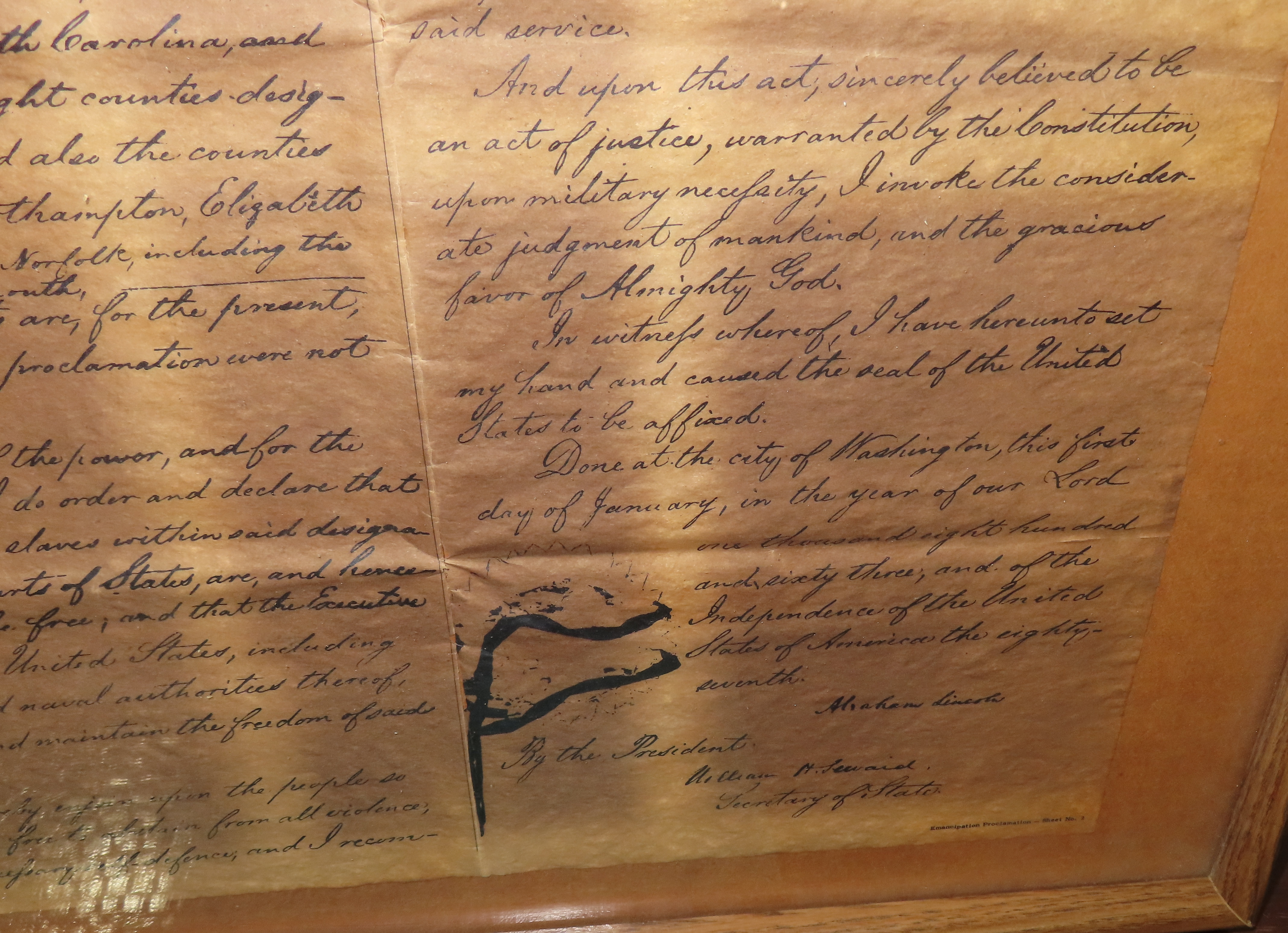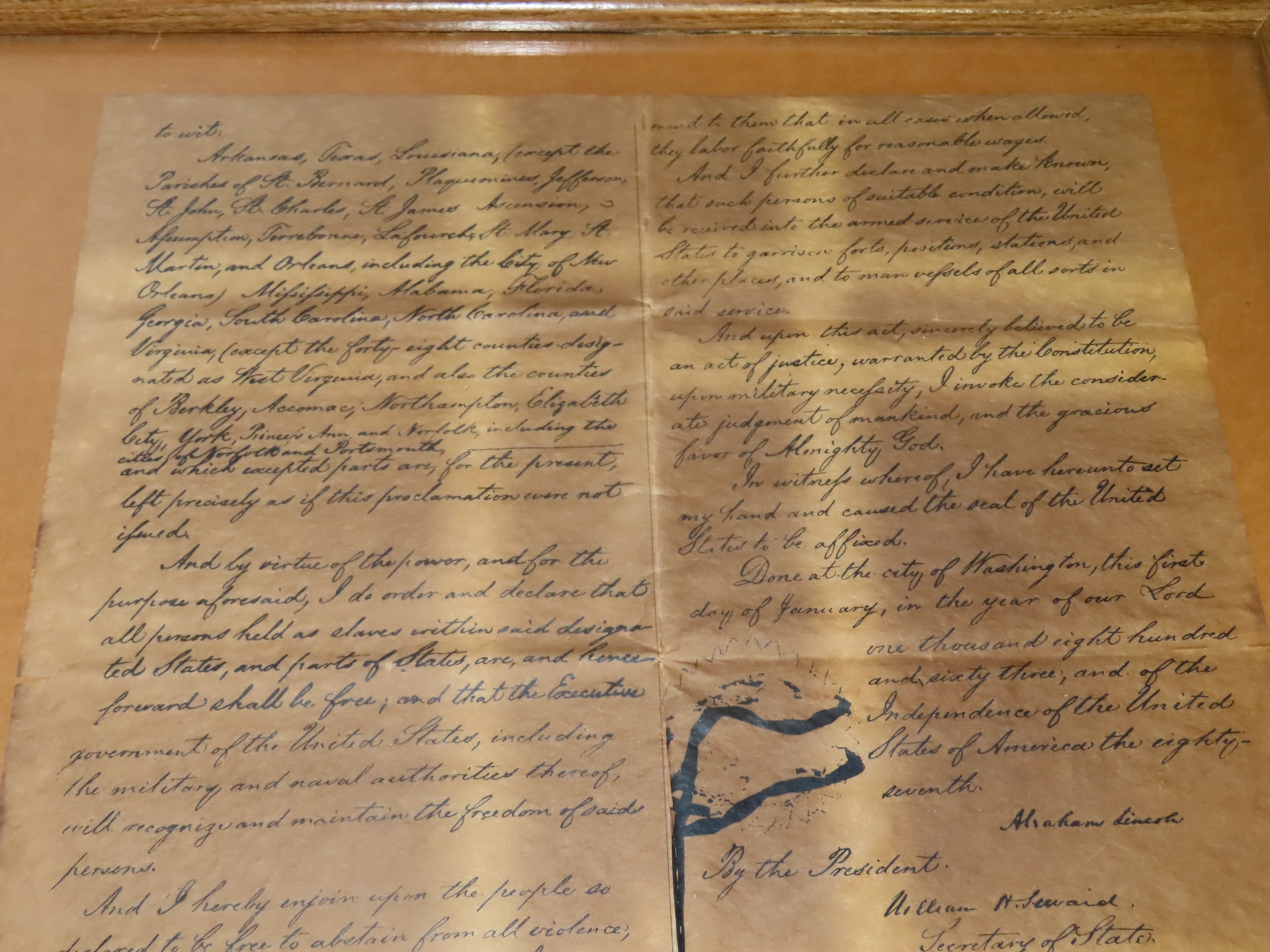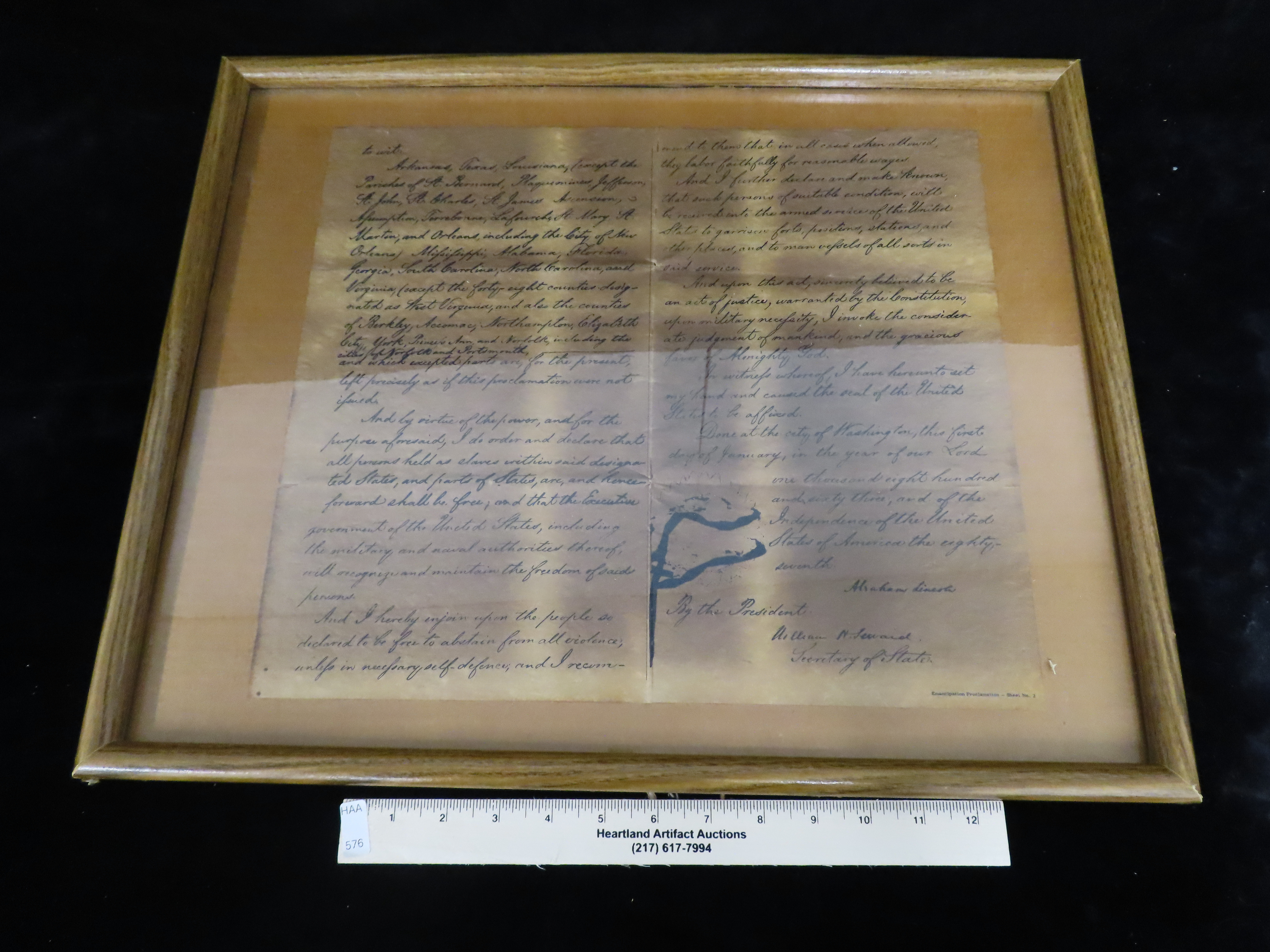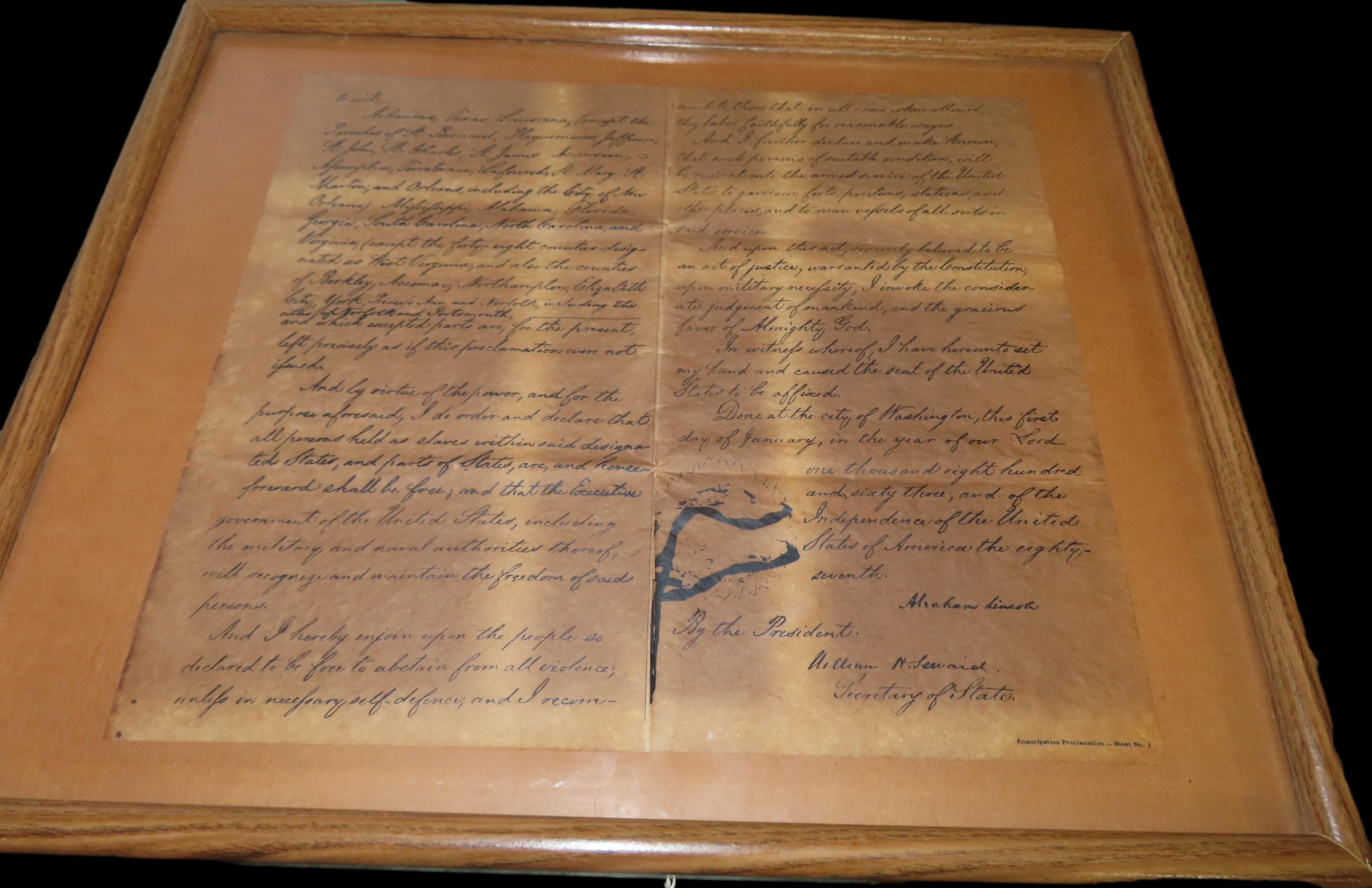 17″ x 21″ Framed Copy of the Emancipation Proclamation. Famous Historical Documents