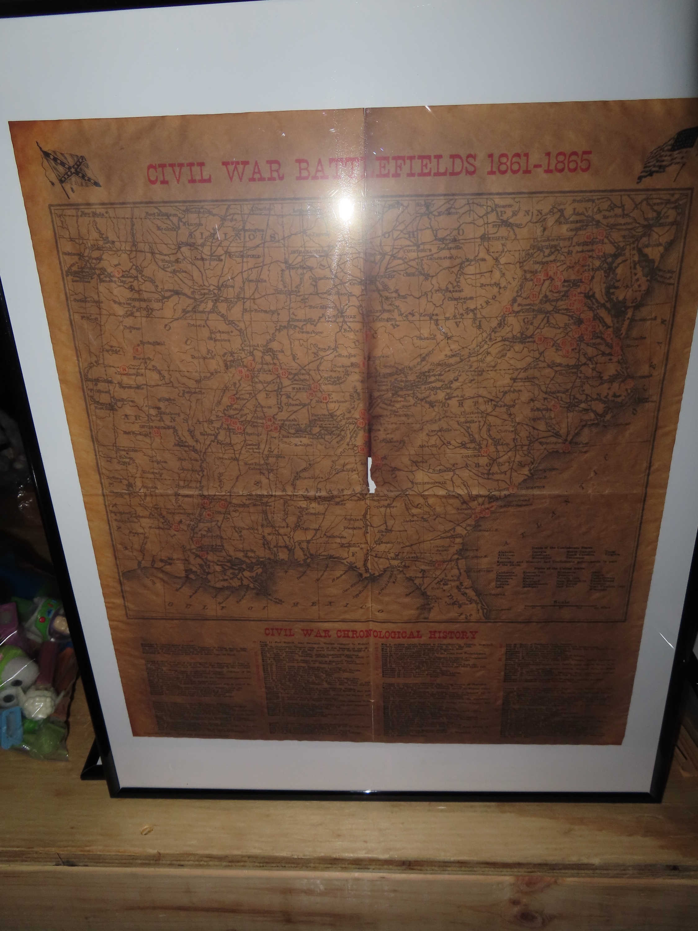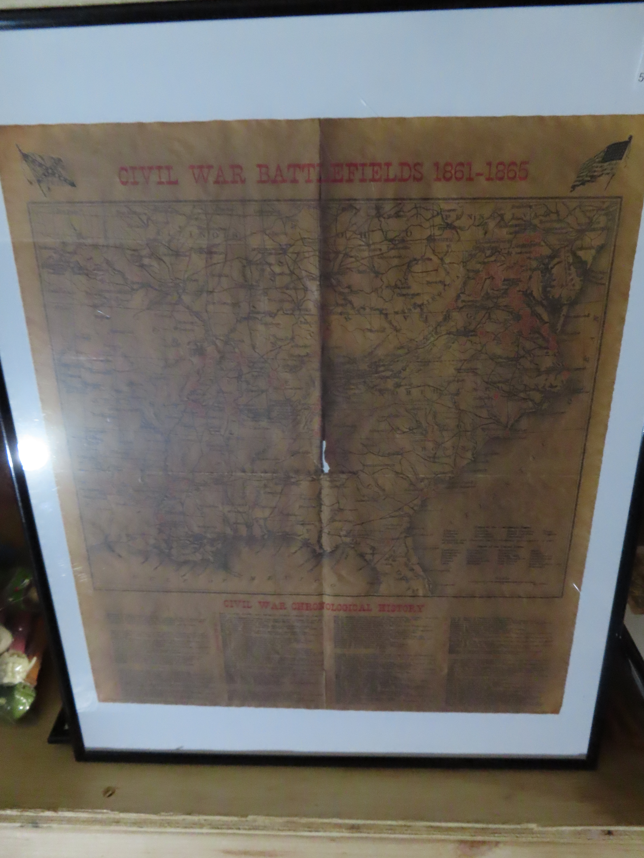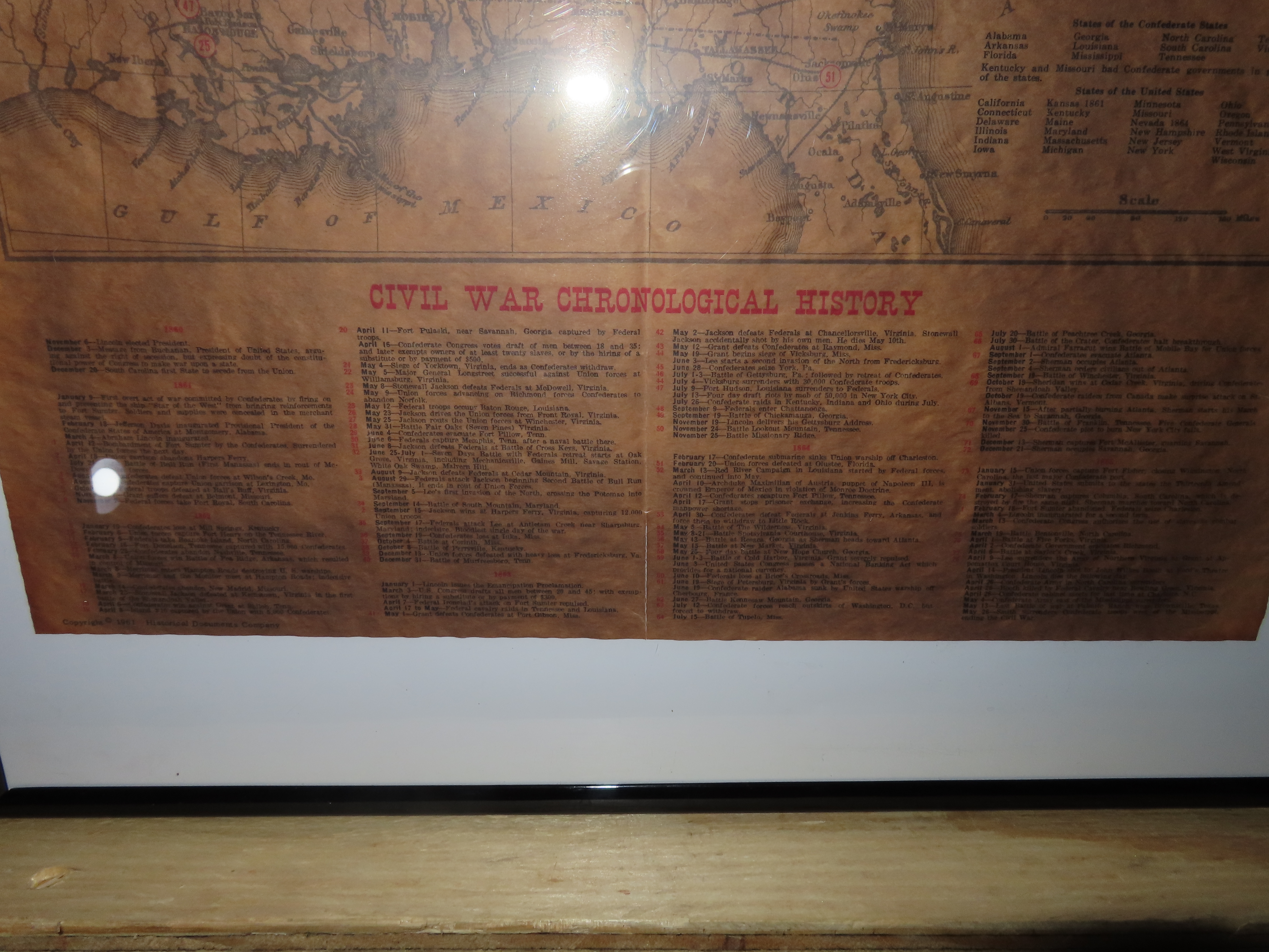 20″ x 16″ Framed Copy of Civil War Battlefields. Famous Historical Documents