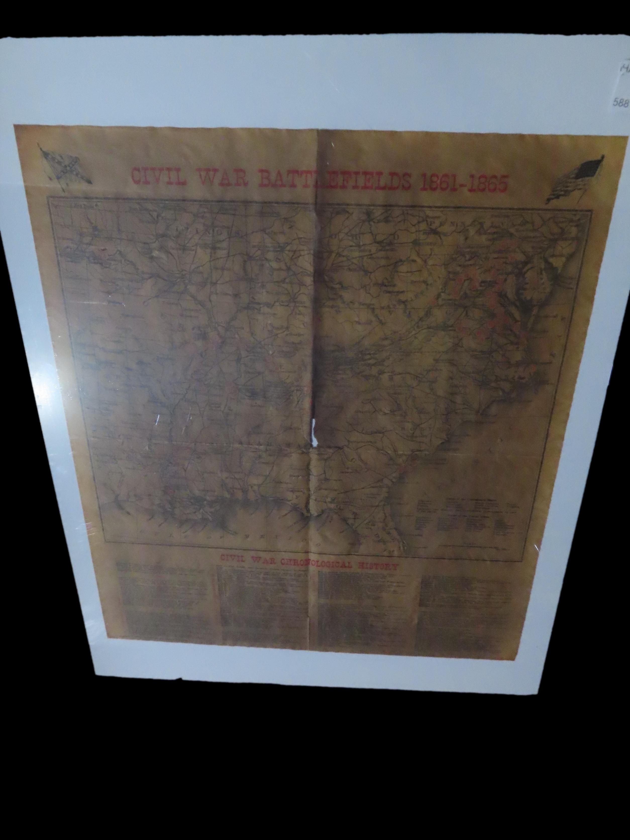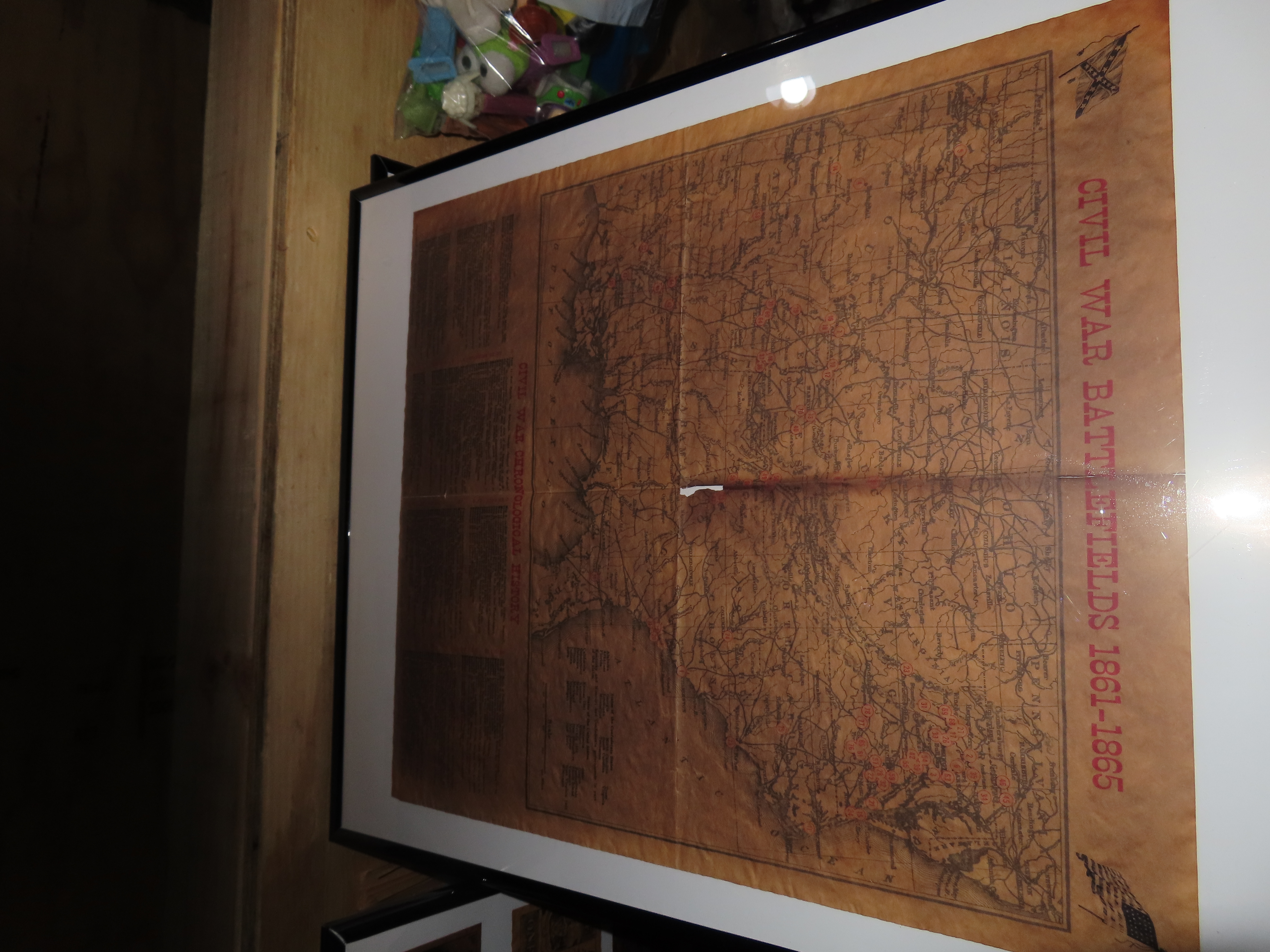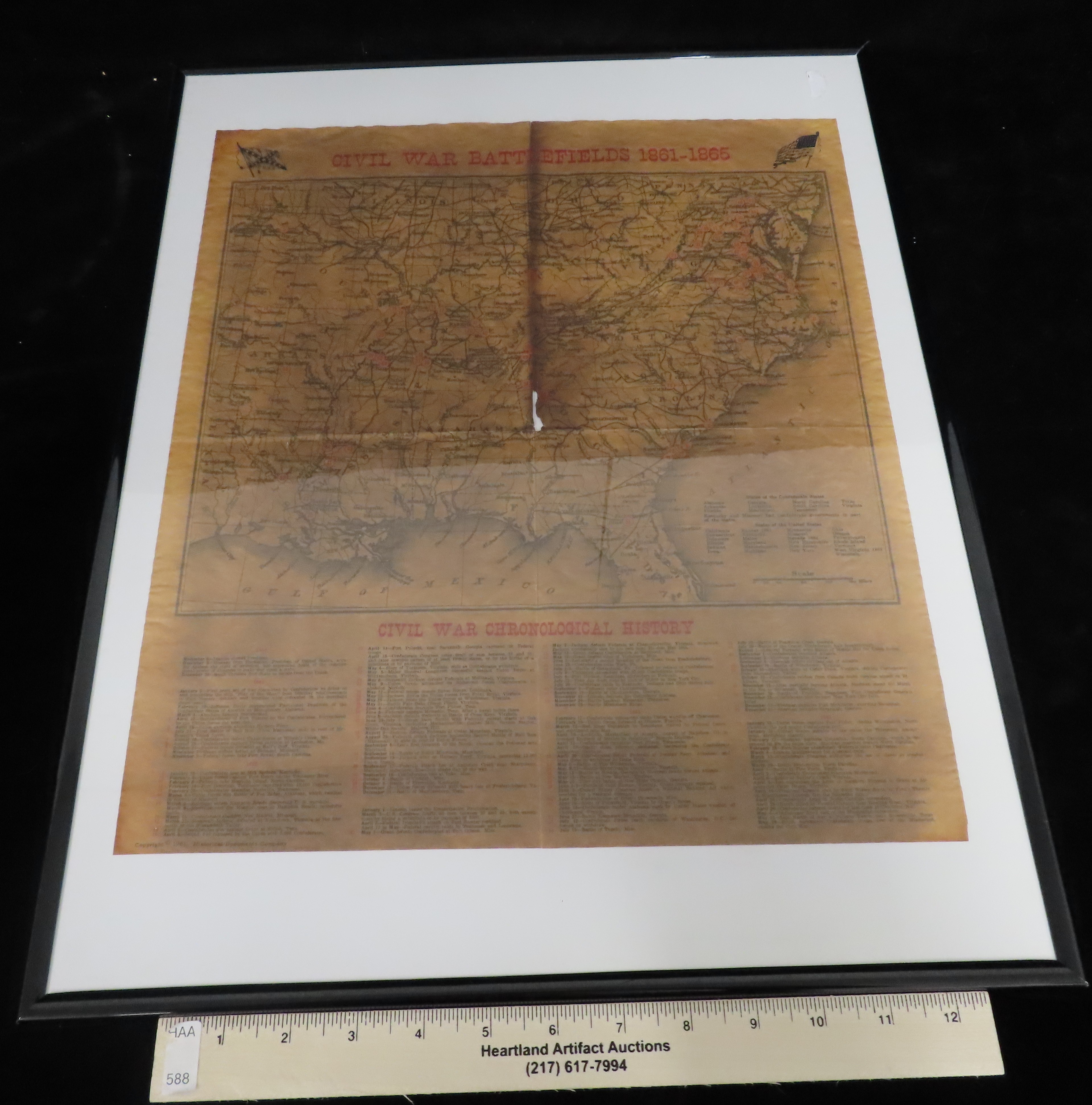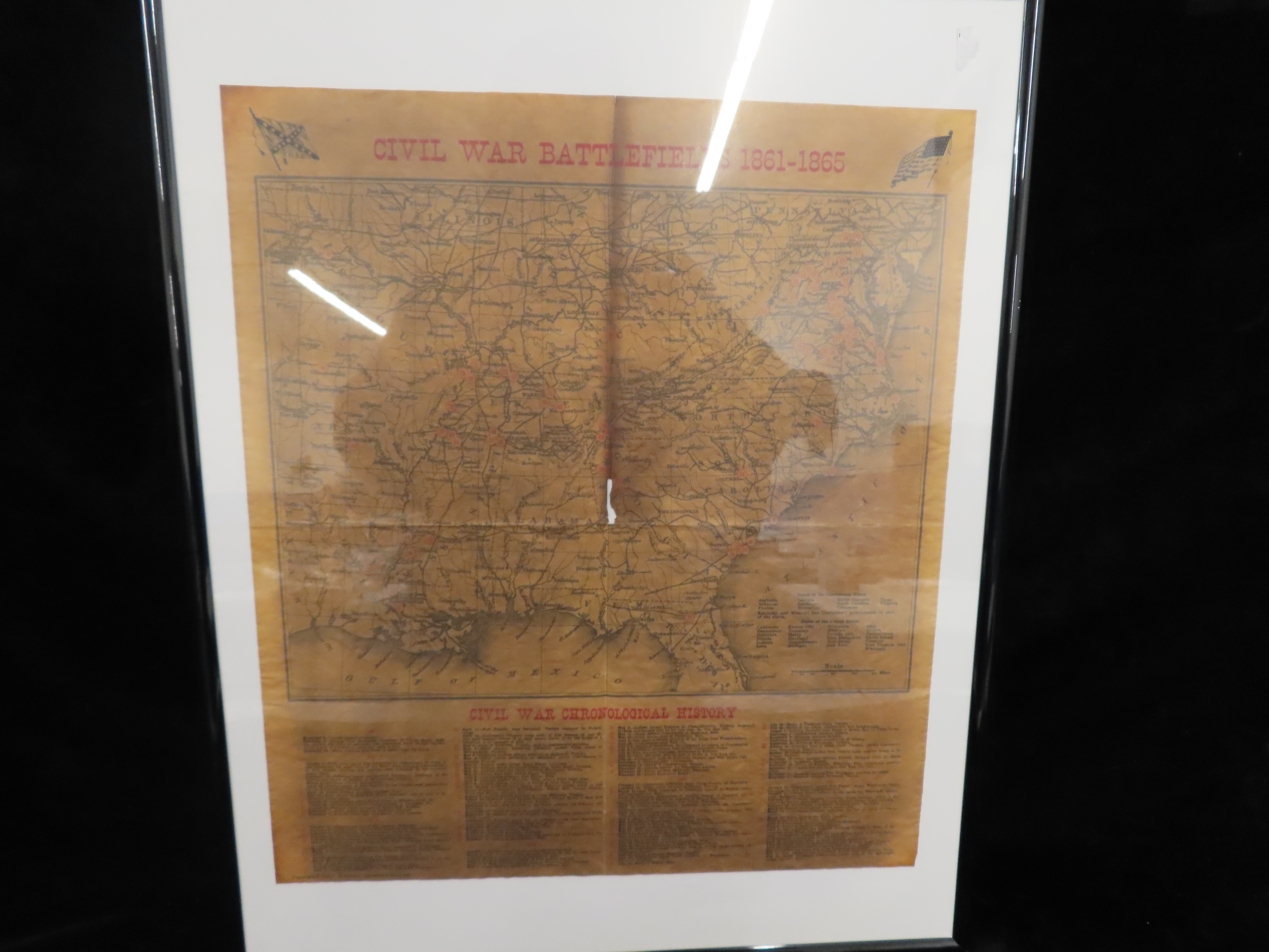 20" x 16" Framed Copy of Civil War Battlefields. Famous Historical Documents