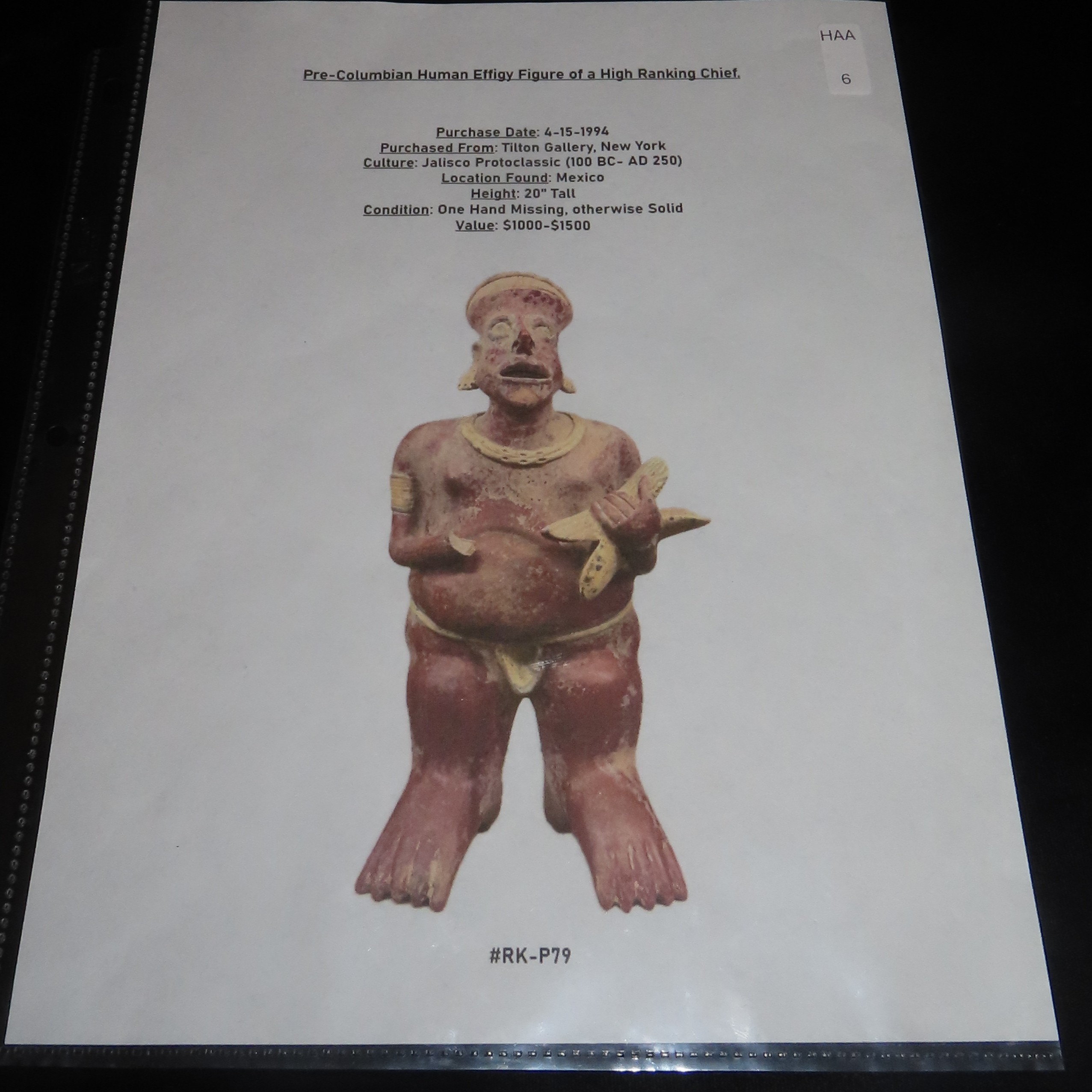20″ Tall Pre-Columbian Jalisco Style Human Effigy Figure, Solid, Mexico, #RK-P79