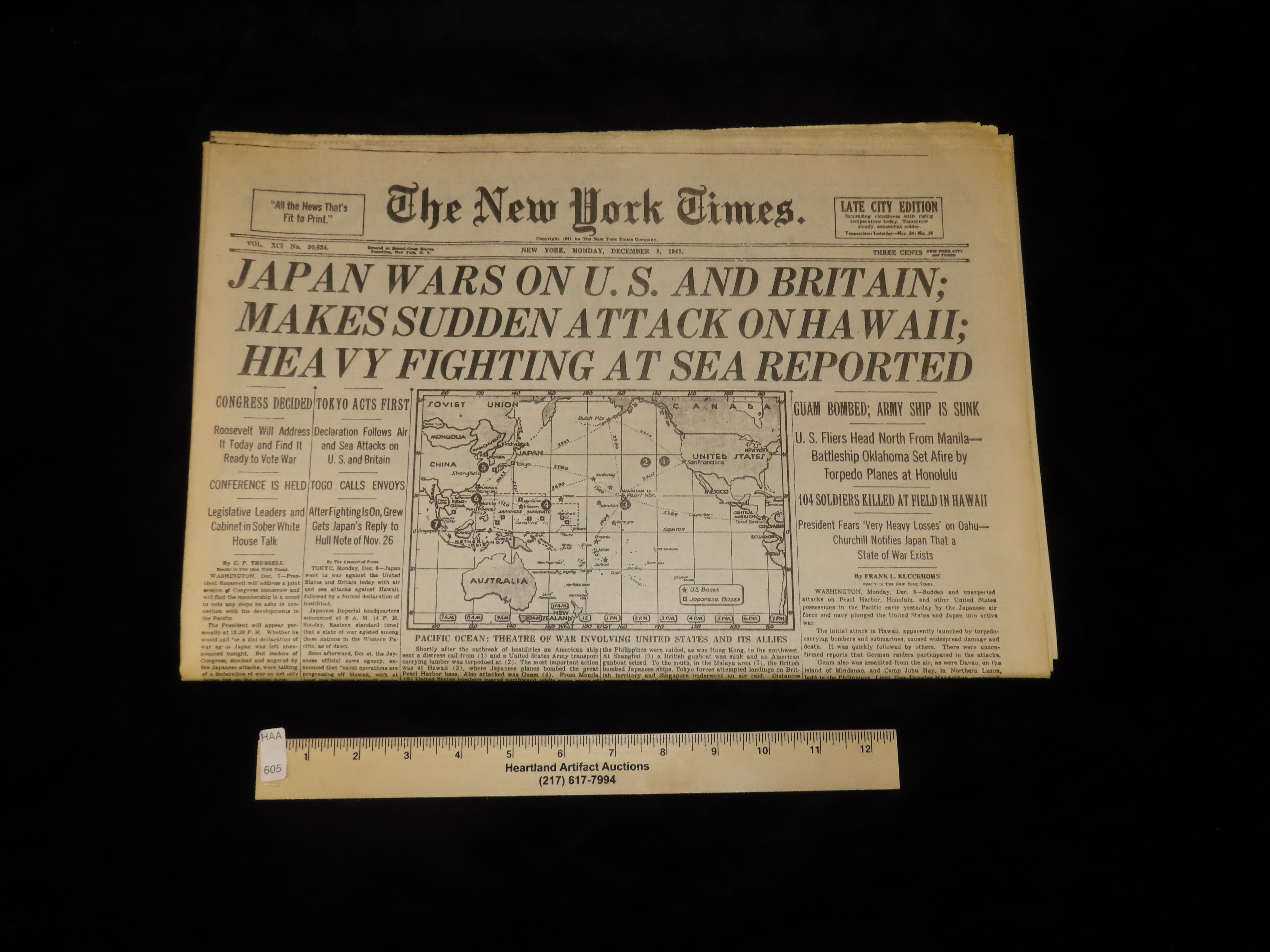Historical 1941 New York Times Newspaper, Japan Wars on U.S., WW2, Thick Full 50+ Page Paper full of Historical Info, Pics, Adds, Stories, Etc.
