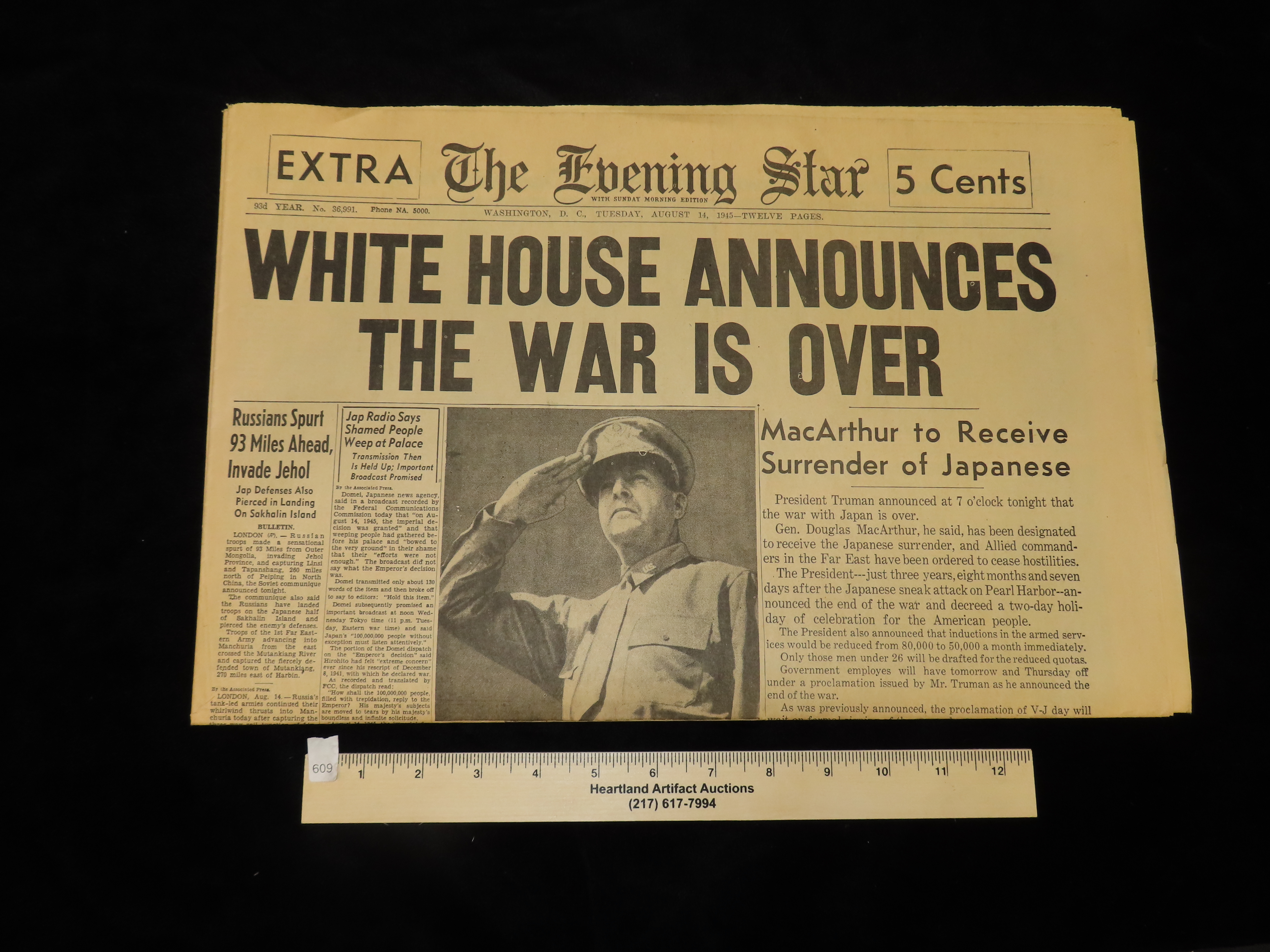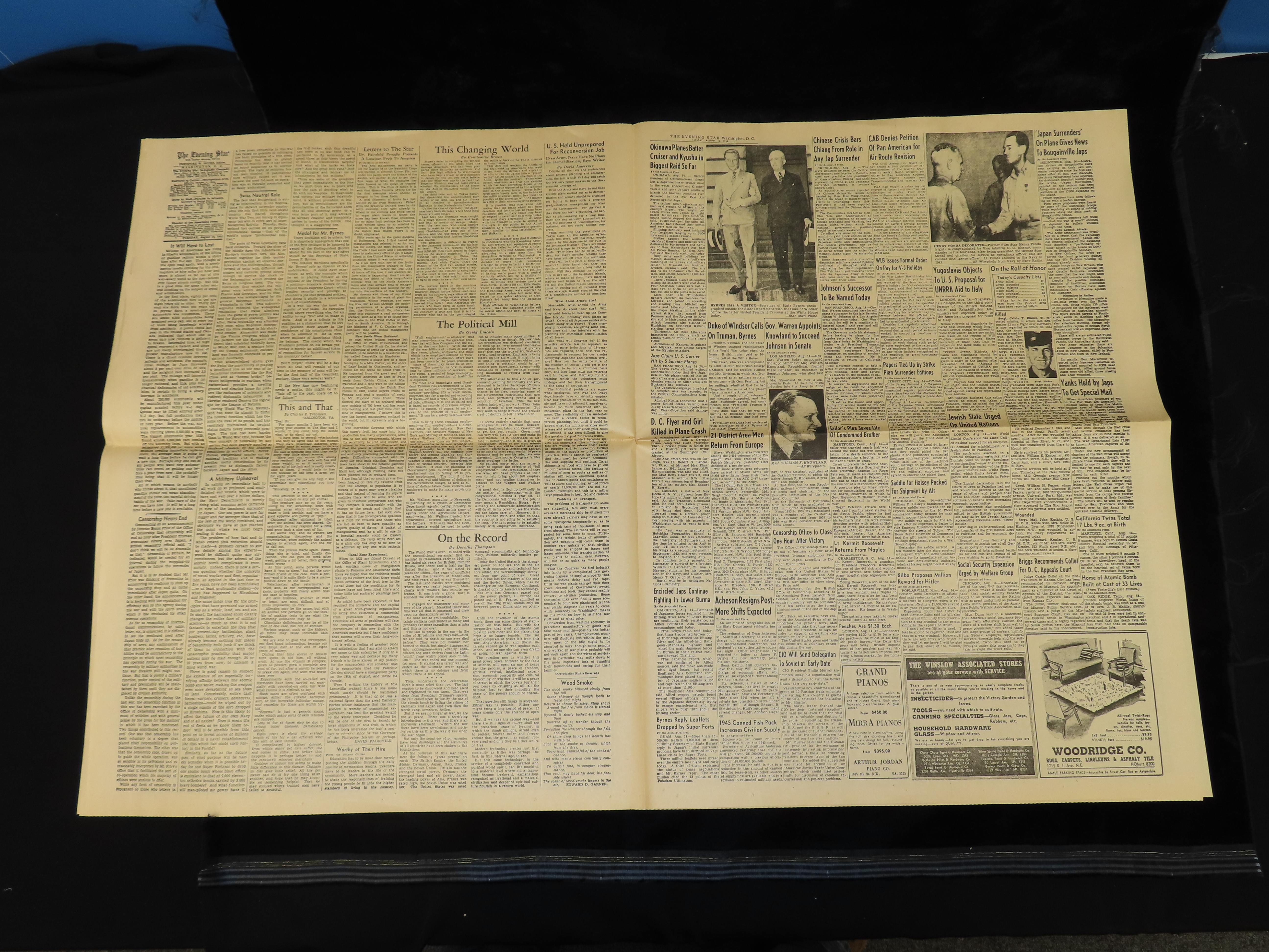 Historical 1945 The Evening Star Newspaper, The War is Over, Full Paper full of Historical Info, Pics, Adds, Stories, Etc.
