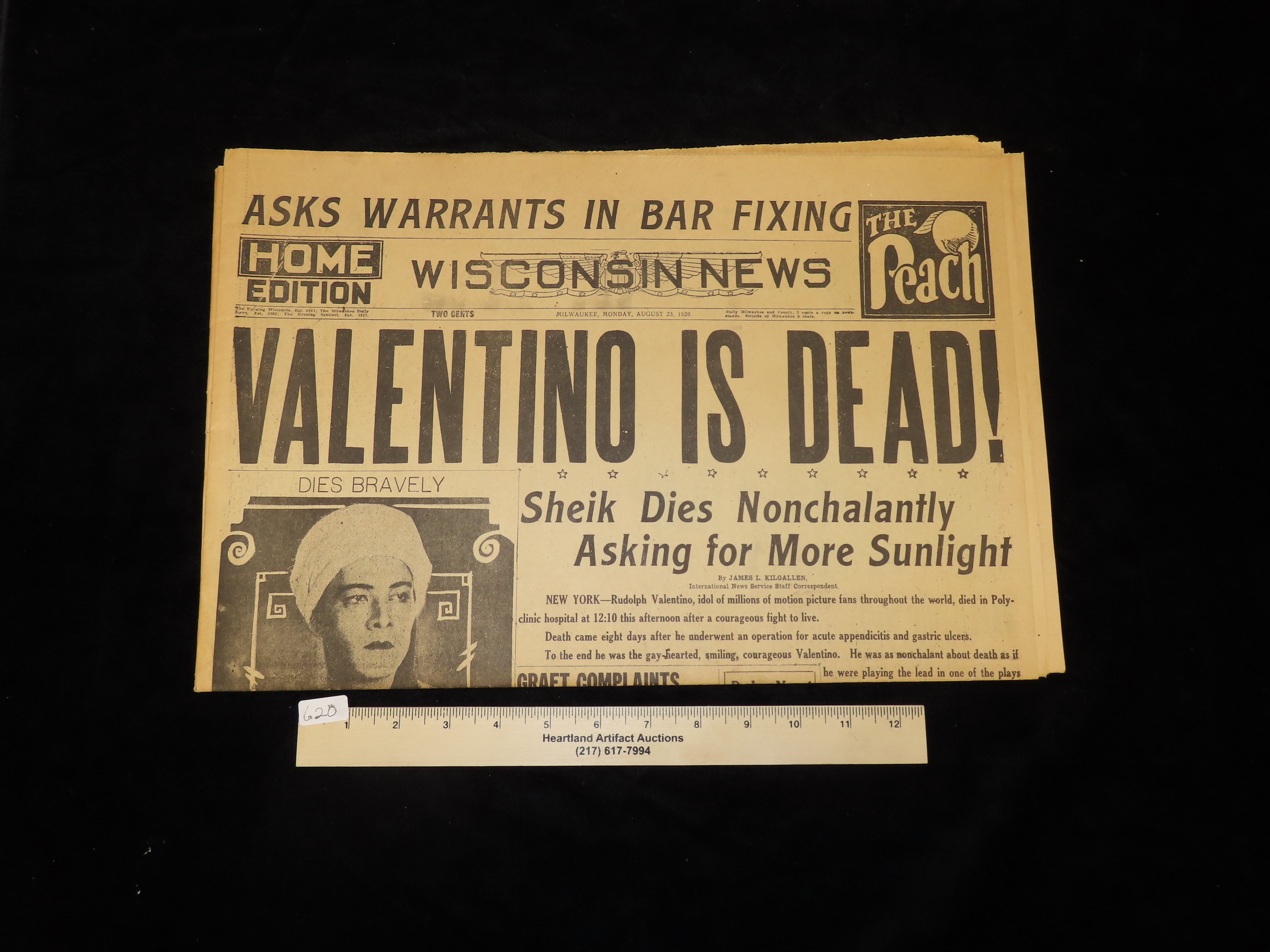 Historical 1926 Wisconsin News Newspaper, Valentino is Dead, Full Paper full of Historical Info, Pics, Adds, Stories, Etc.