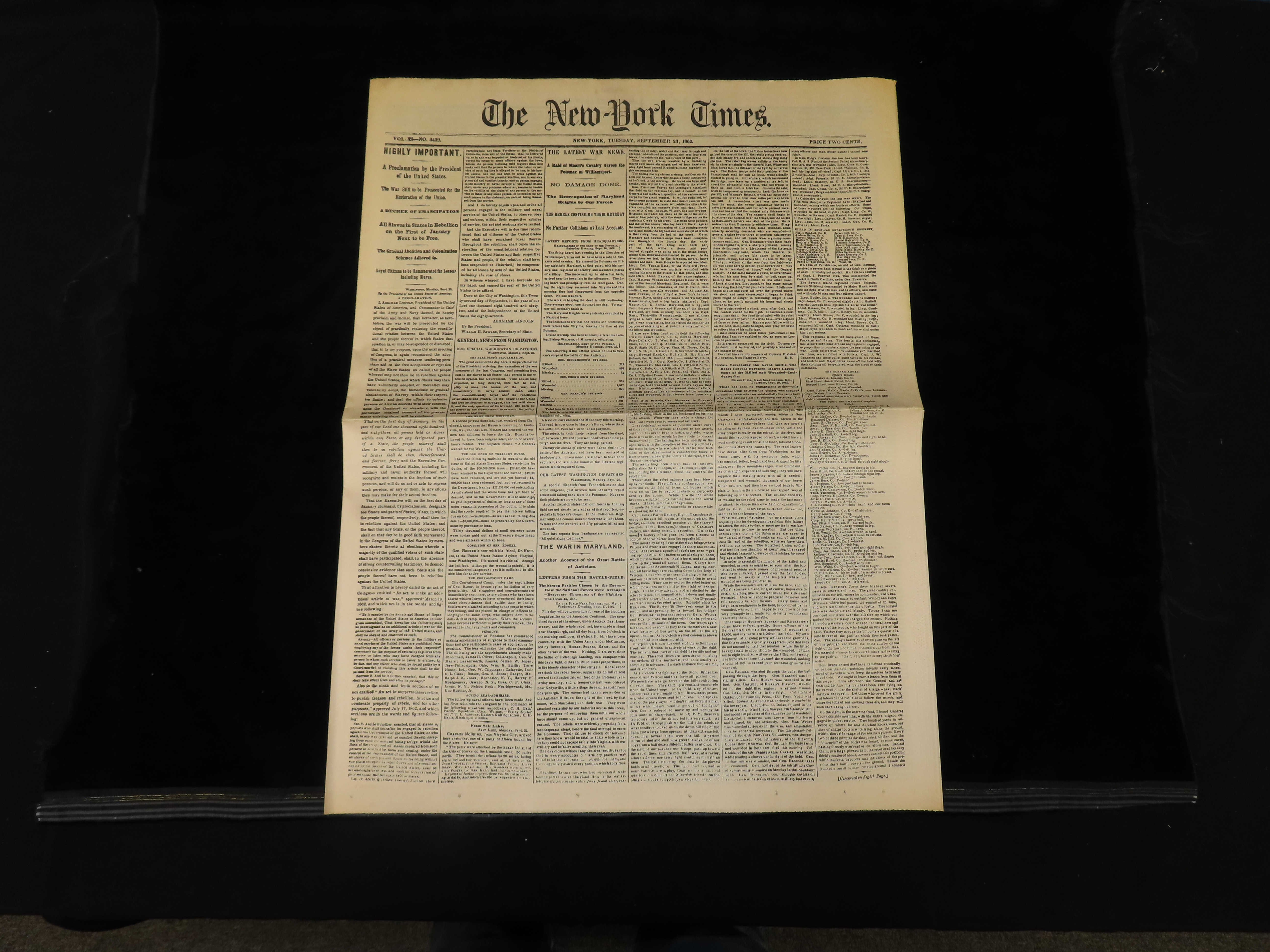 Historical 1862 Newspaper, The New York Times, Full Paper full of Historical Info, Pics, Adds, Stories, Etc.