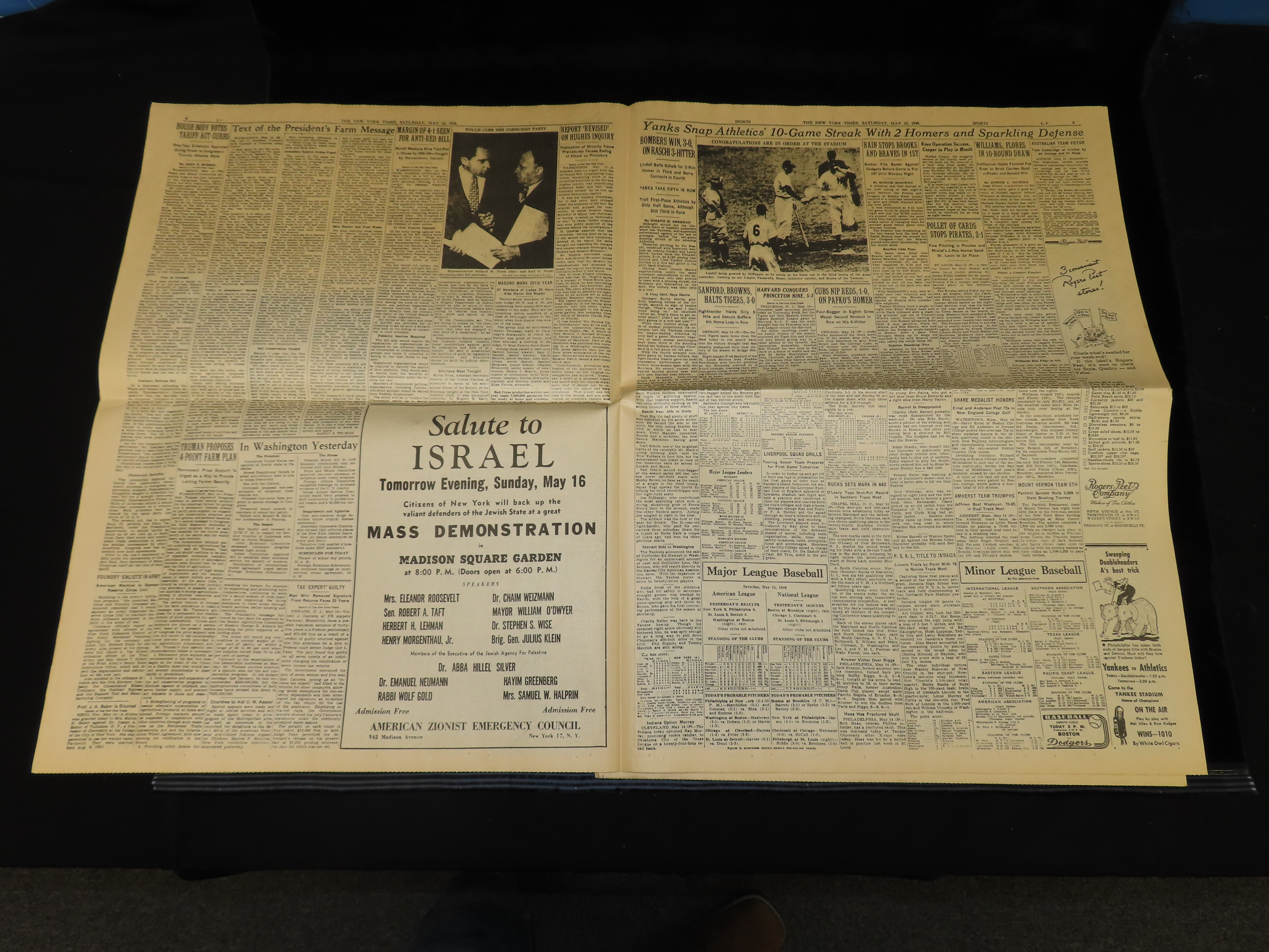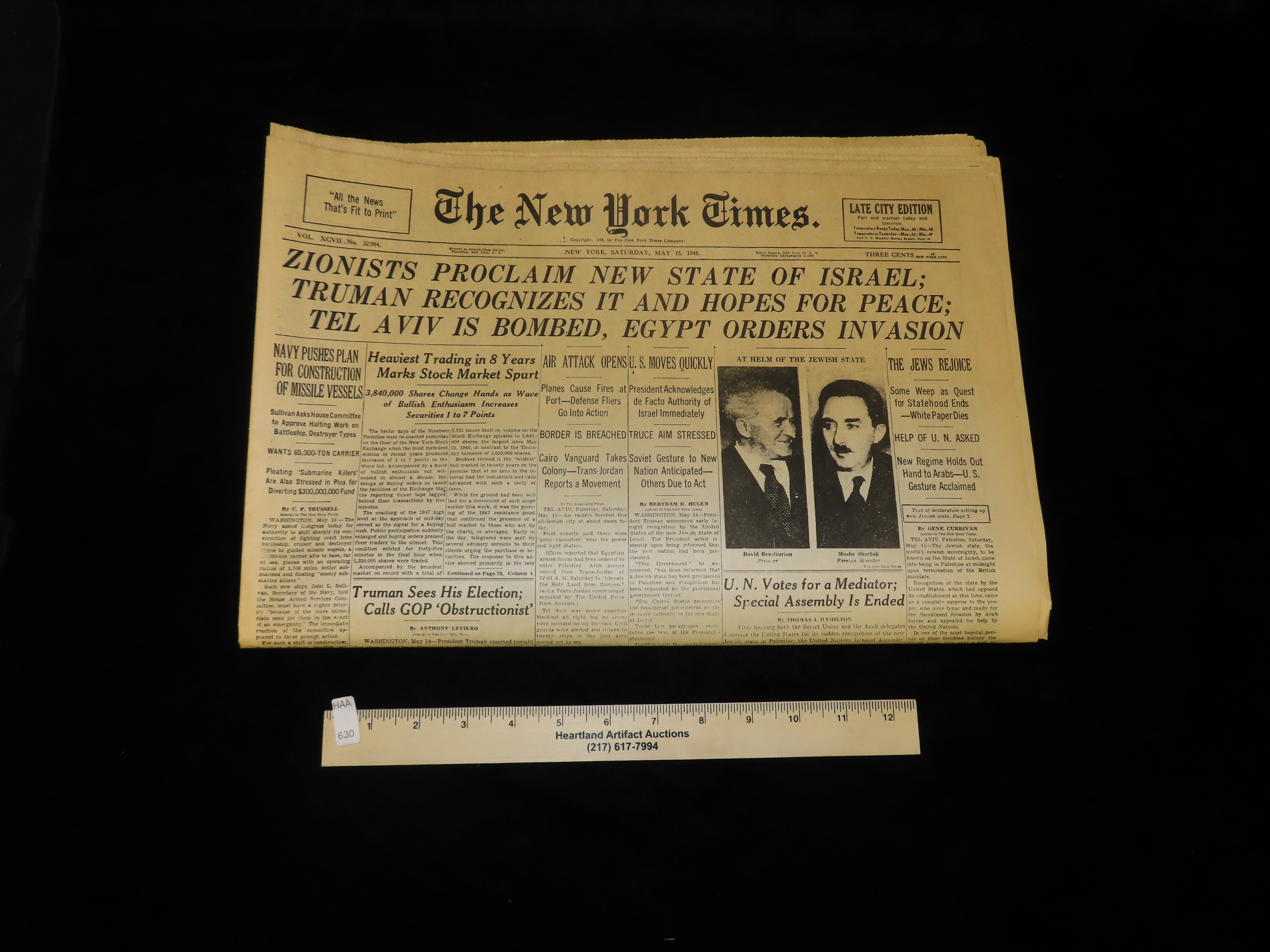 Historical 1948 Newspaper, The New York Times, Tel Aviv Bombed, Egypt Orders Invasion, Thick Full 40+ Page Full Paper full of Historical Info, Pics, Adds, Stories, Etc.
