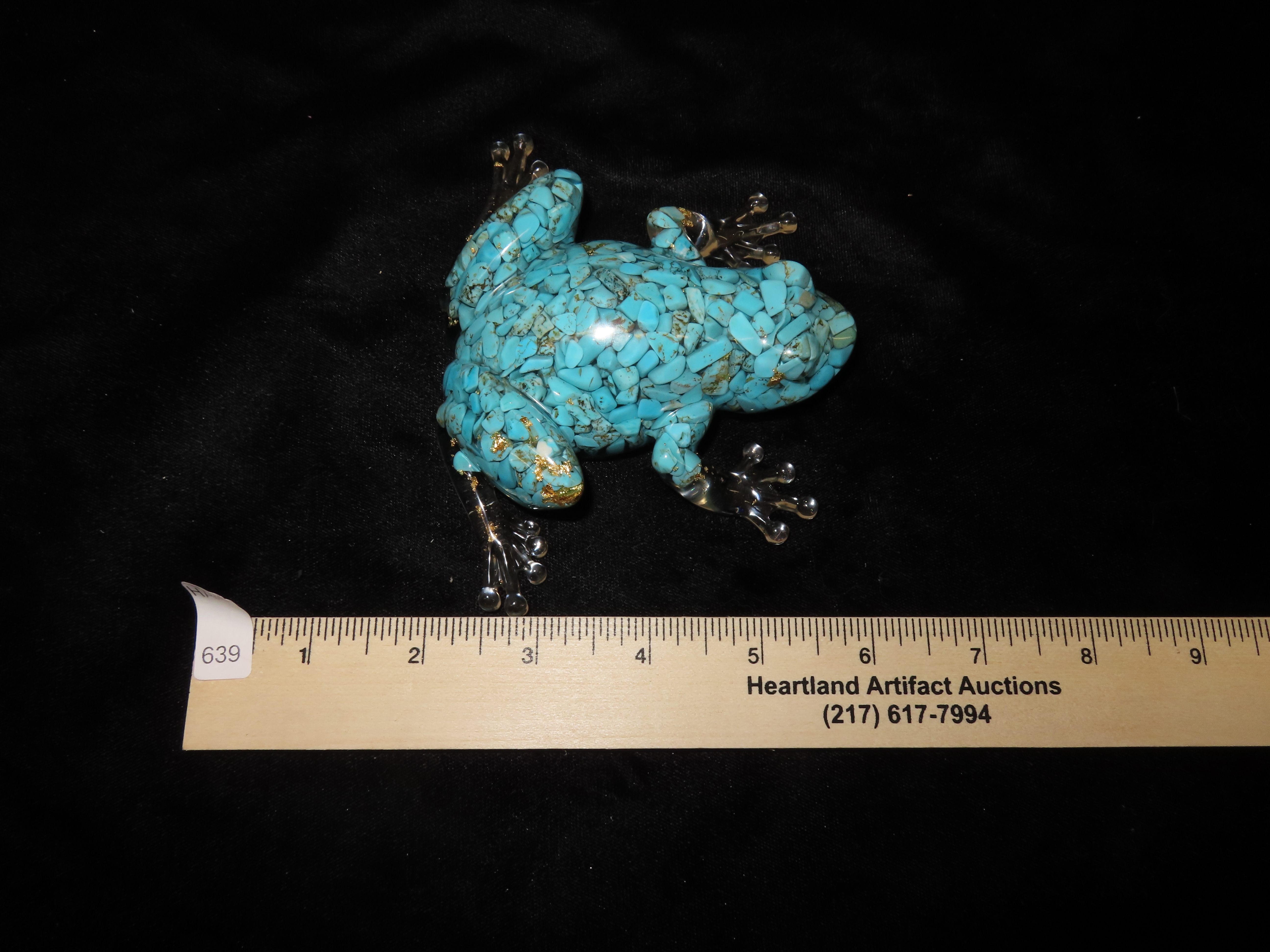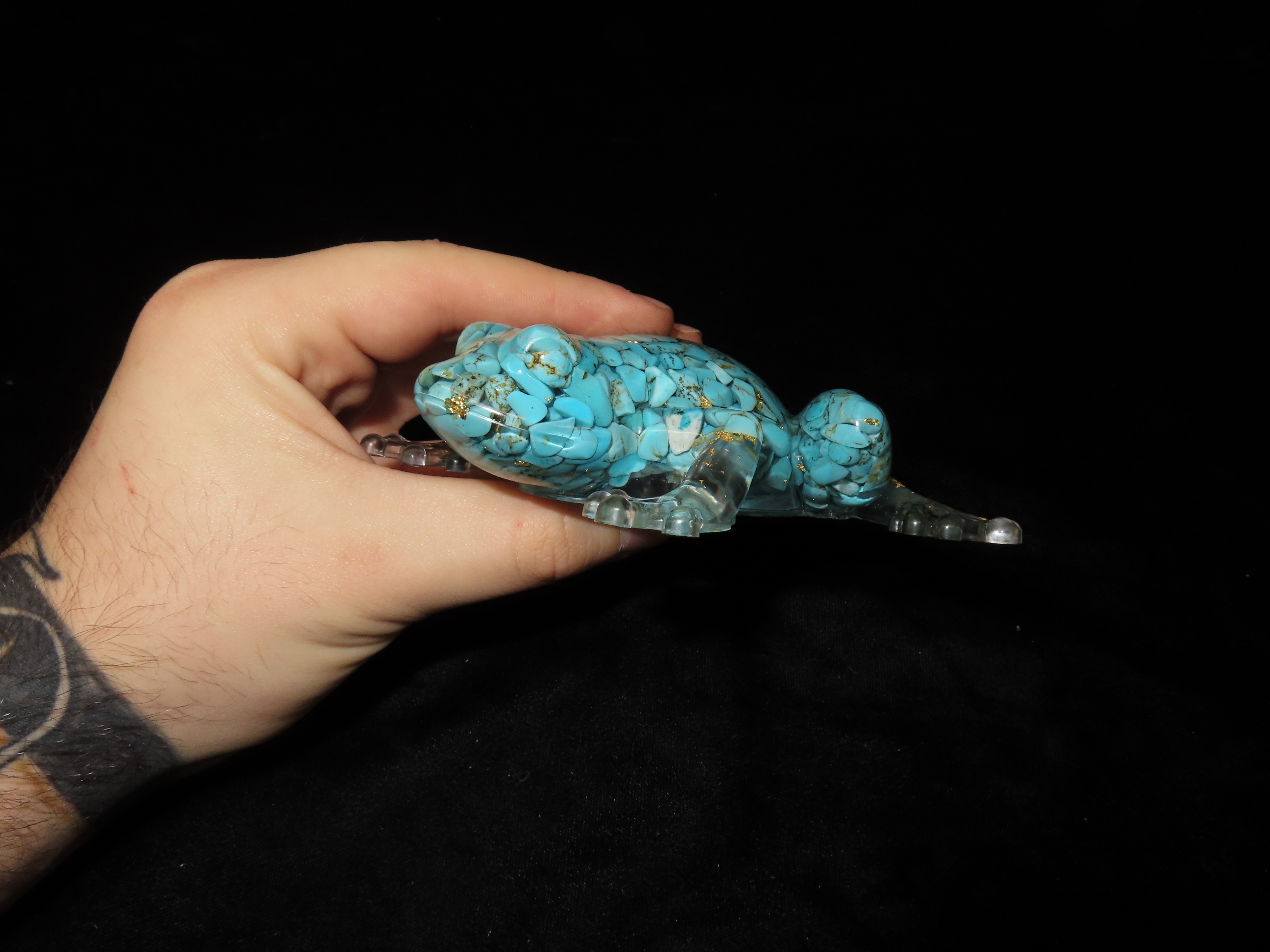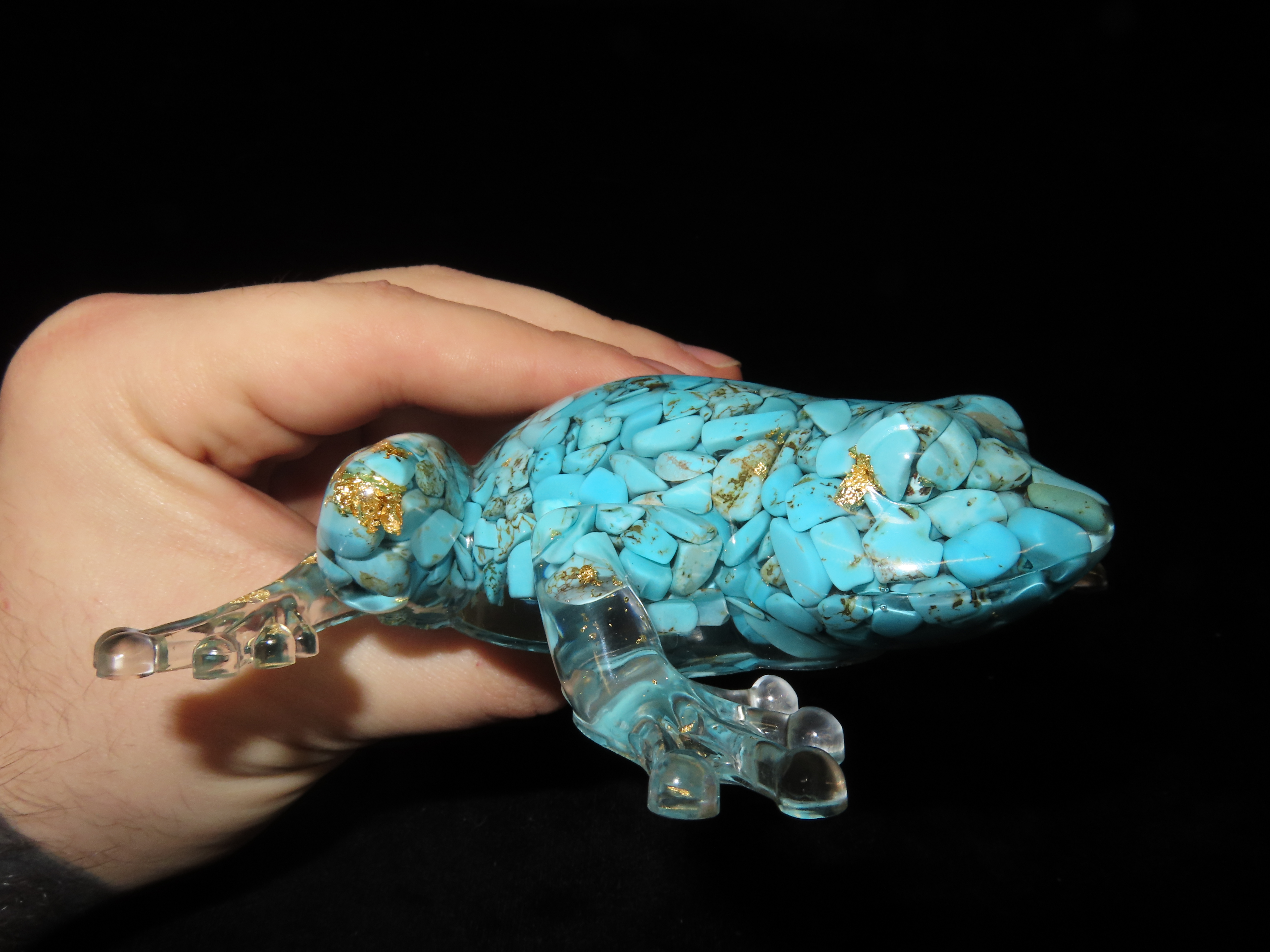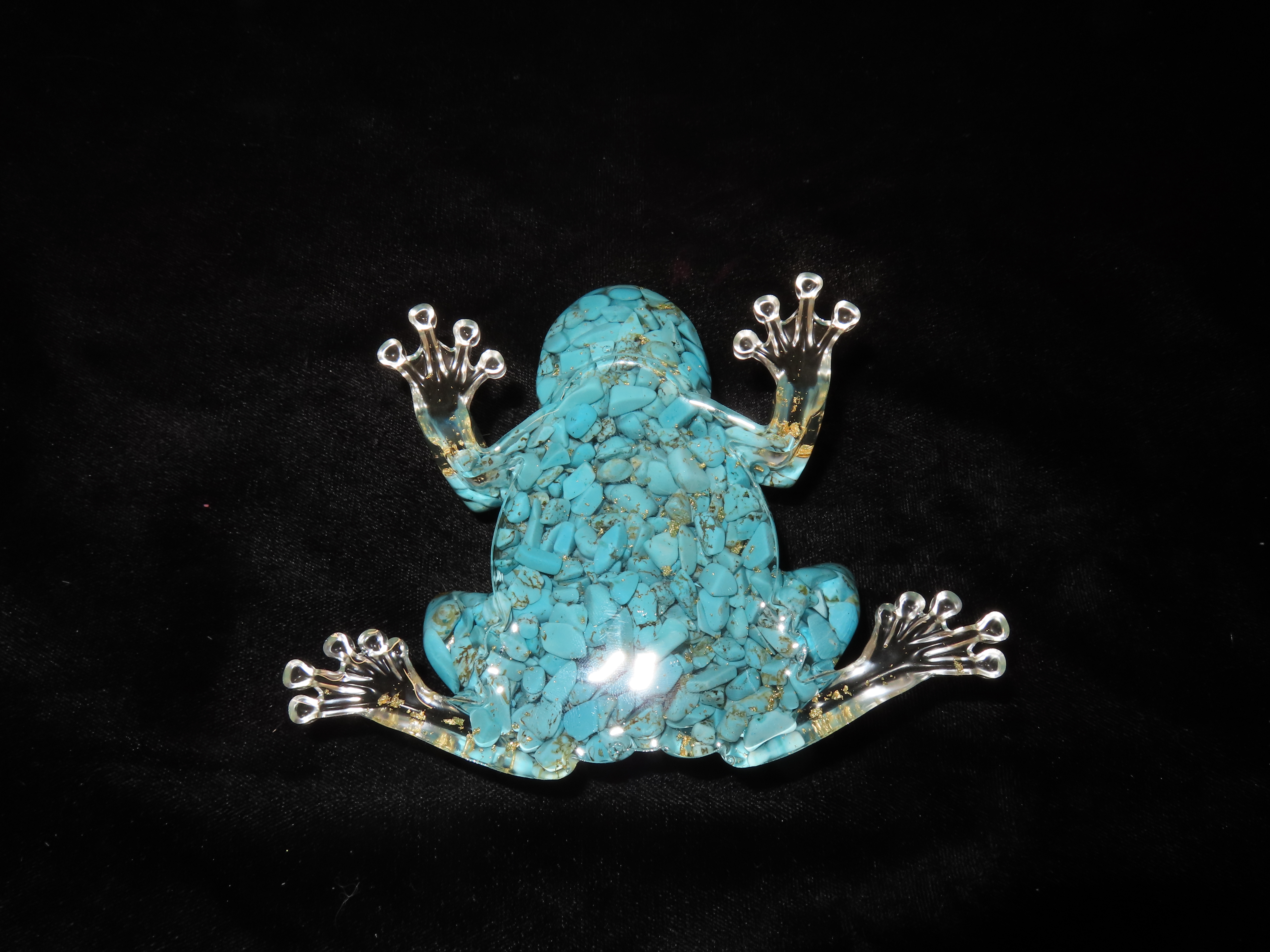Turquoise & Gold Filled Resin Frog Paperweight