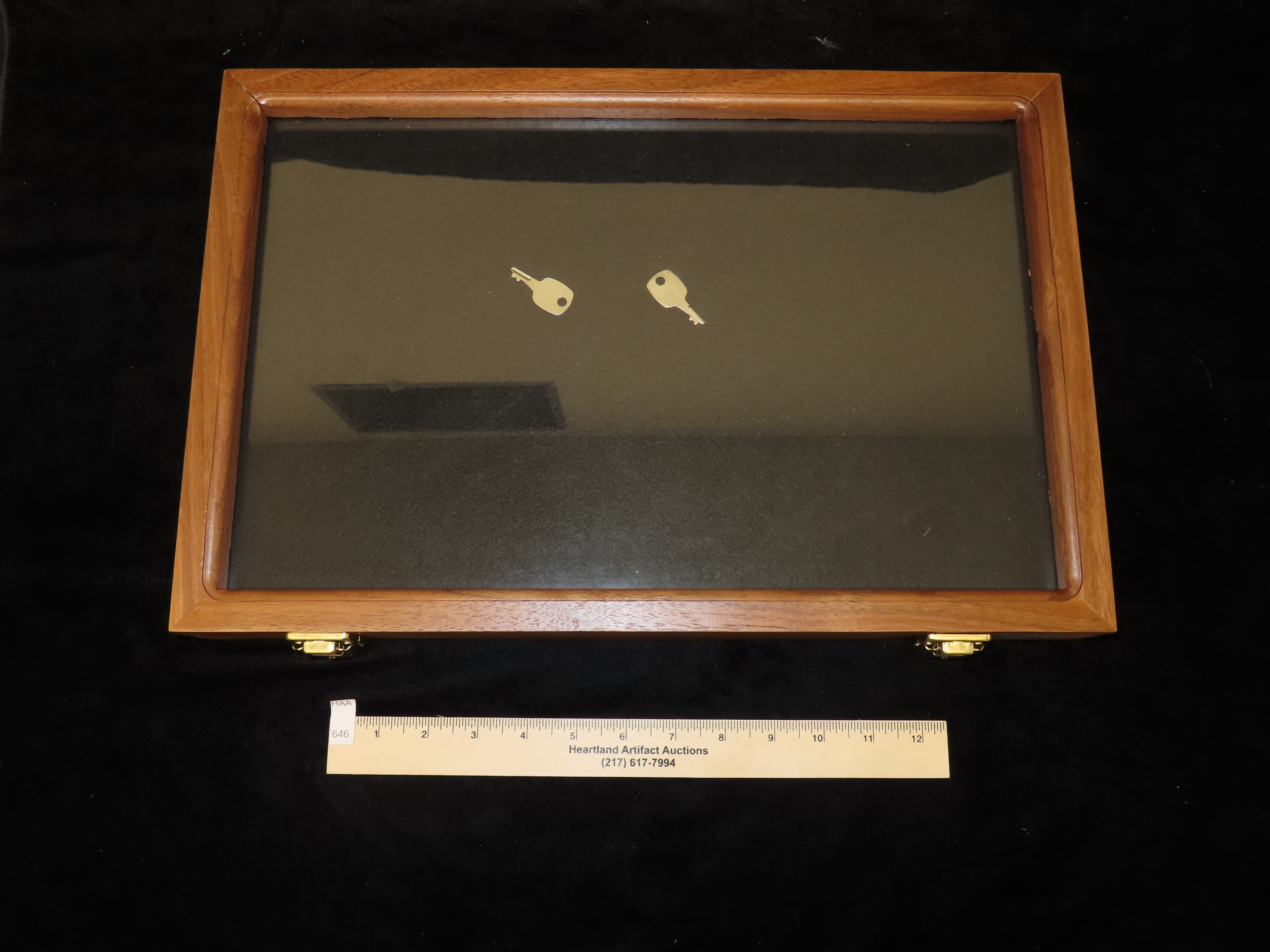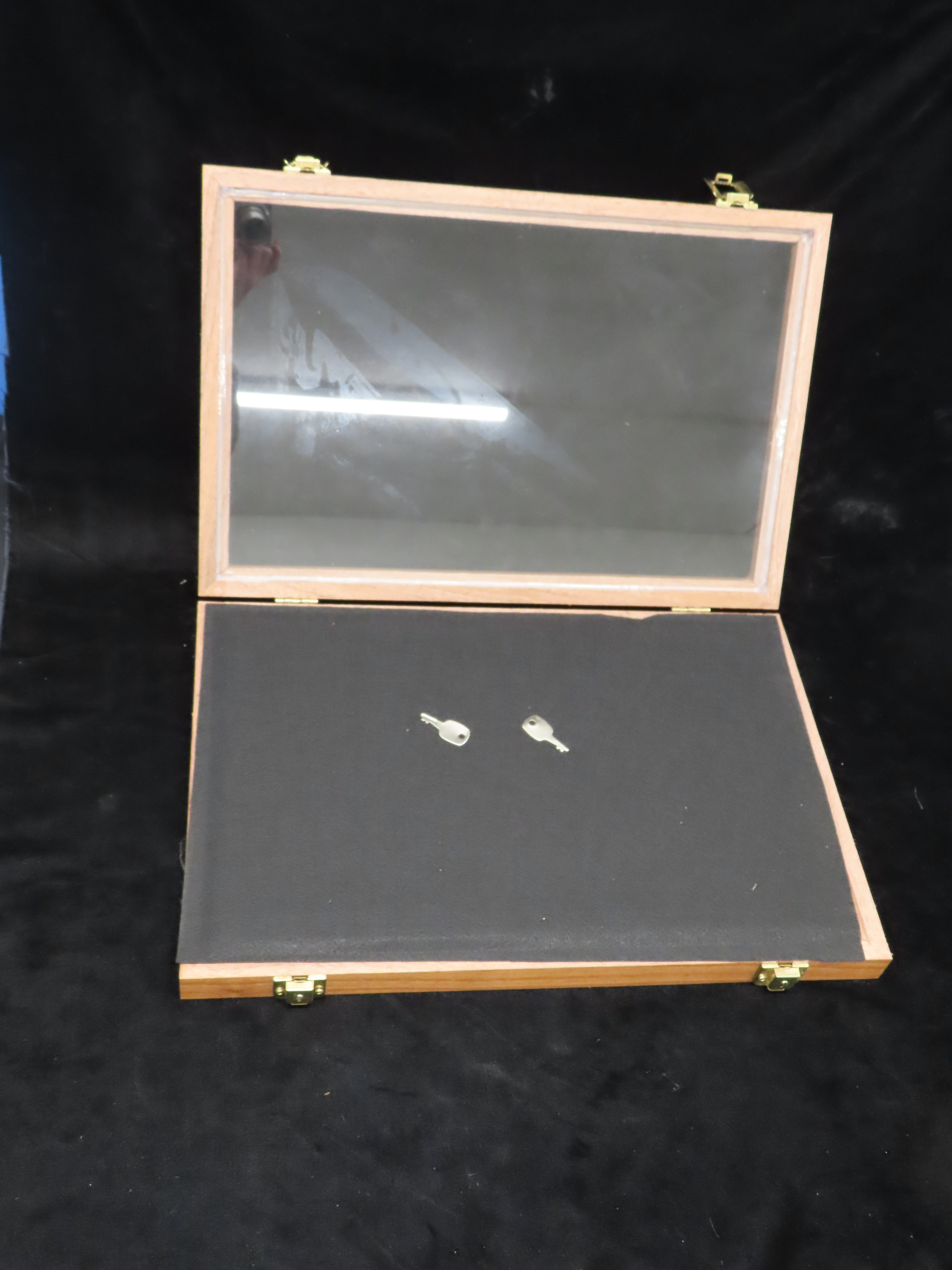 NEW 18″ x 12″ Walnut & Glass Frame with Hinged Latching Locking Lid