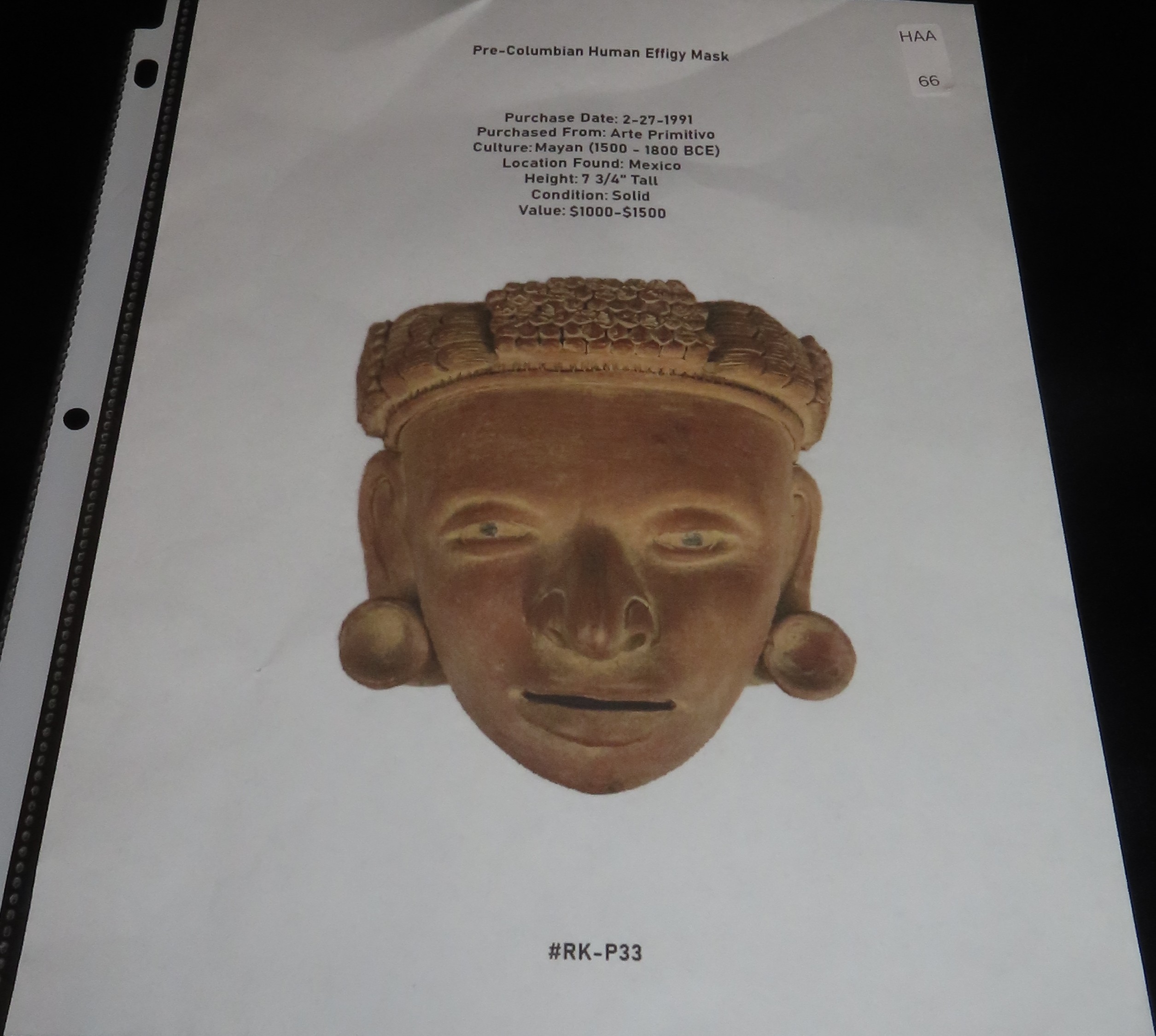 7 3/4″ Pre-Columbian Mayan Style Human Effigy Mask, Solid, Mexico, #RK-P33