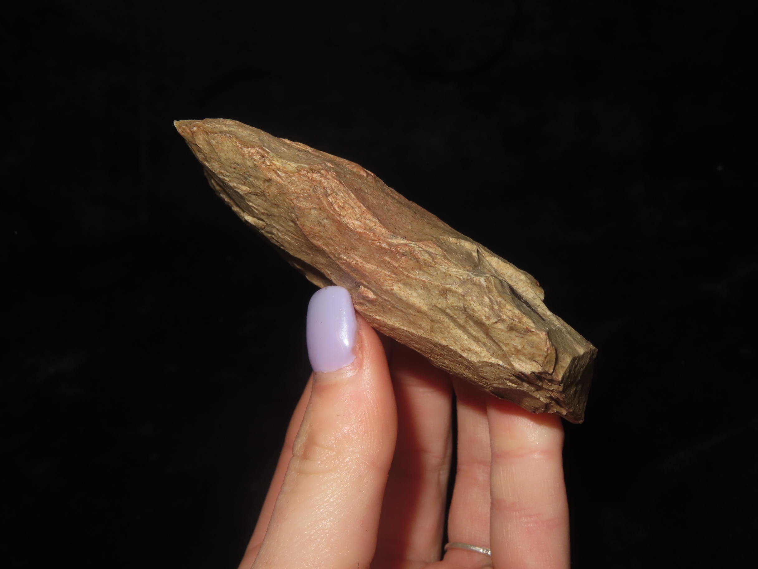 3 3/8″ Polished Flint Spade, Madison County Illinois. Nice Use Polish. Found by Ron Knowles
