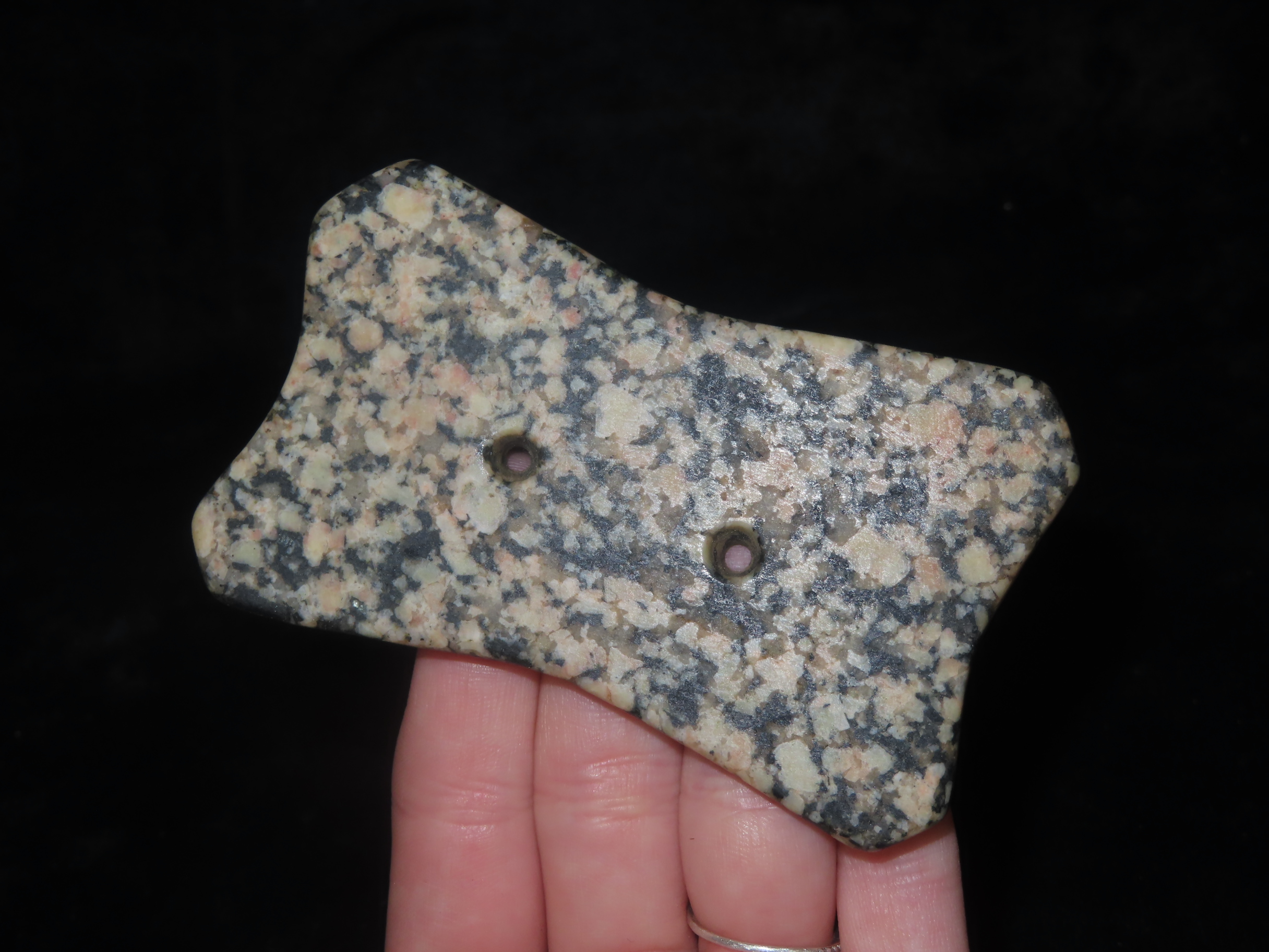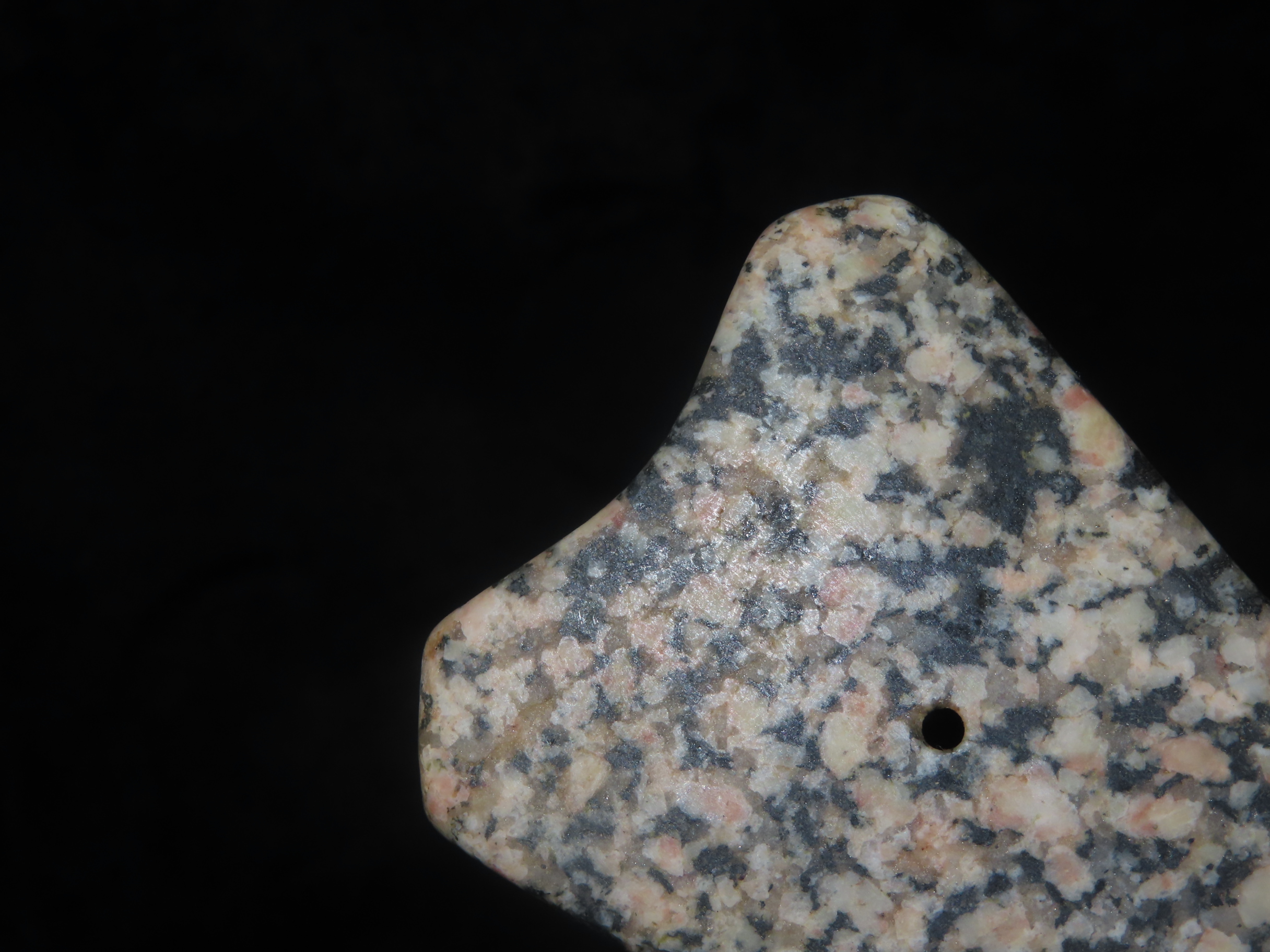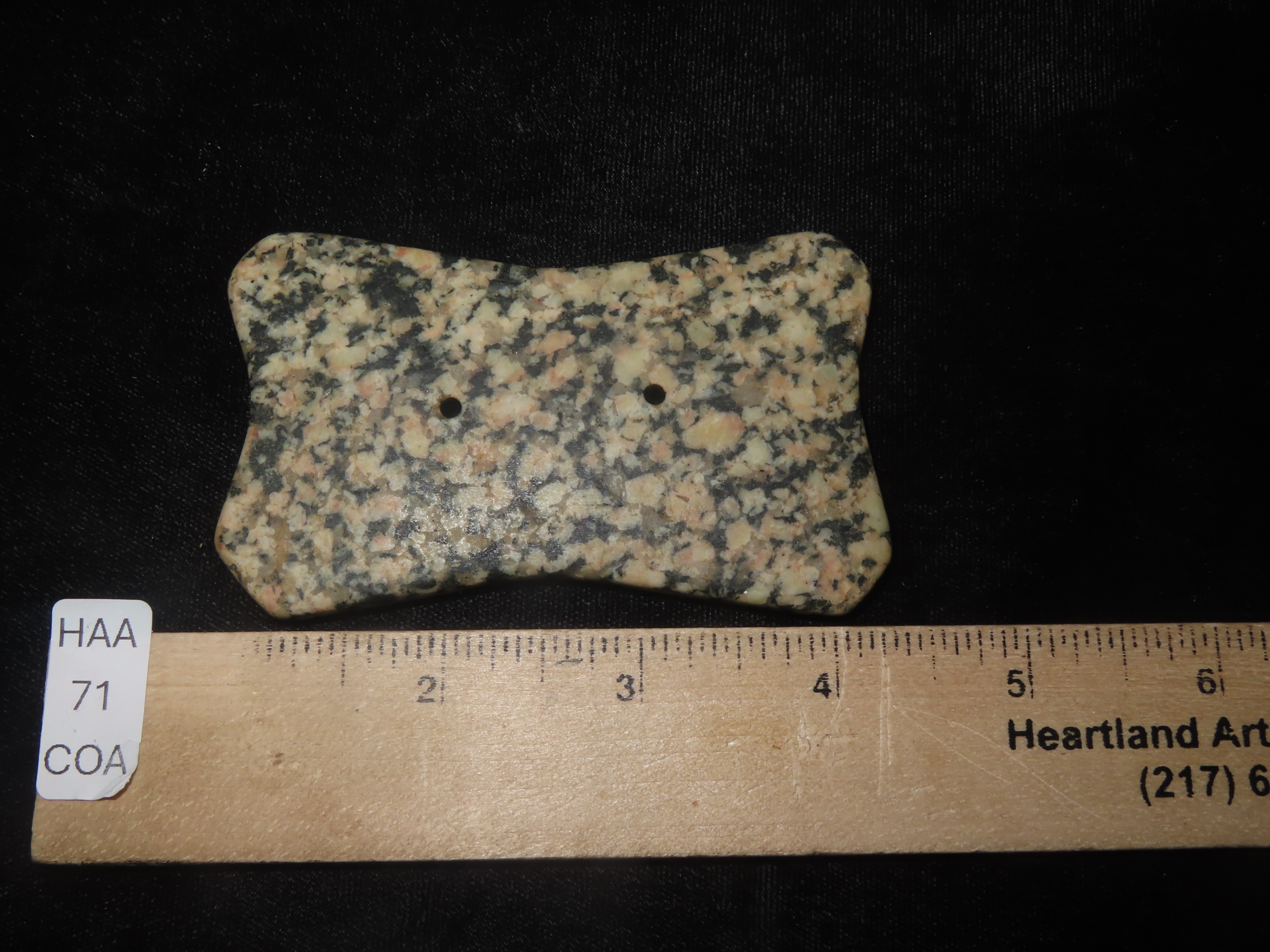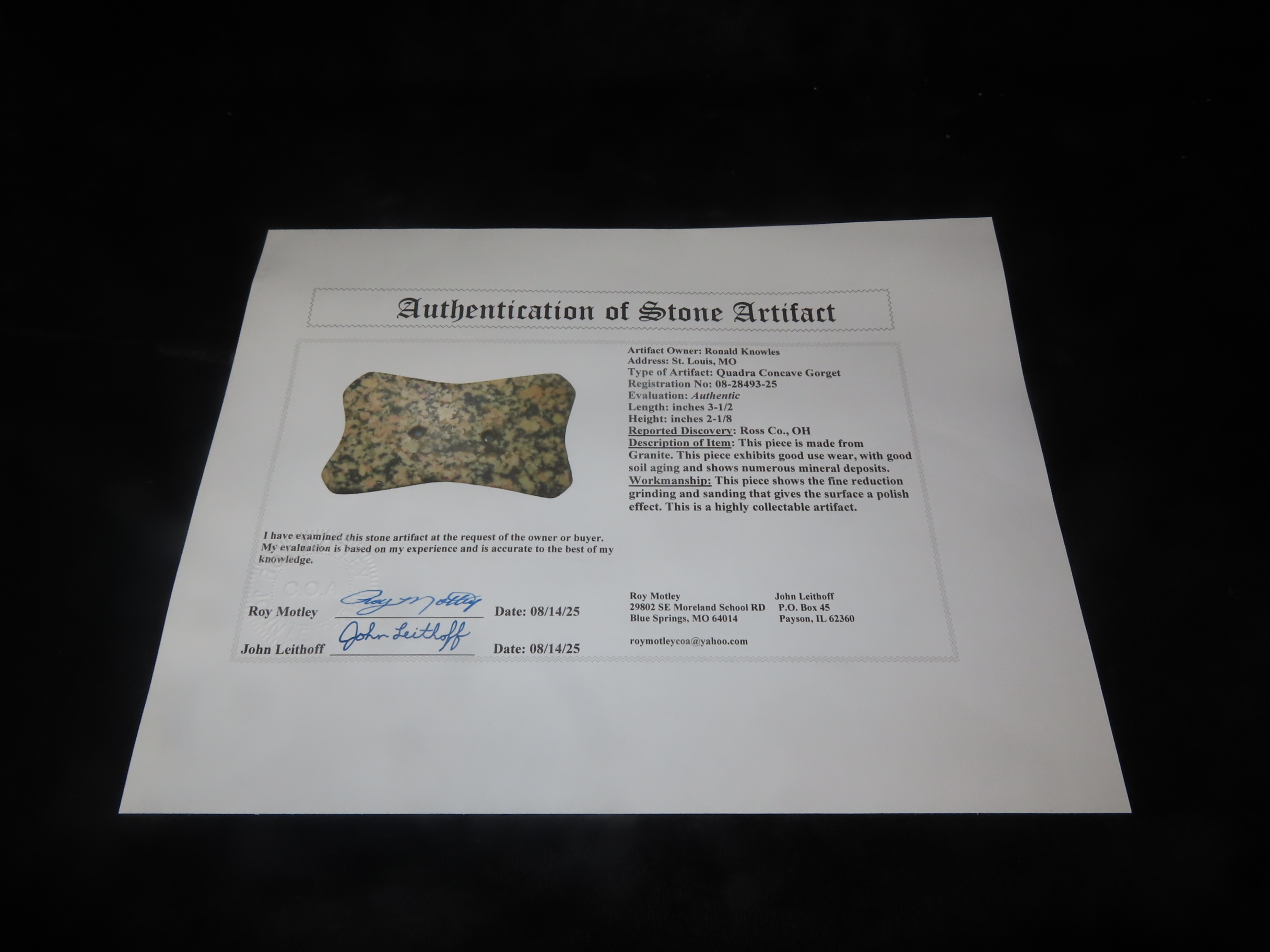 3 1/2″ Quadra-Concave Gorget, Motley COA, Ross County Ohio, Colorful well Polished Granite