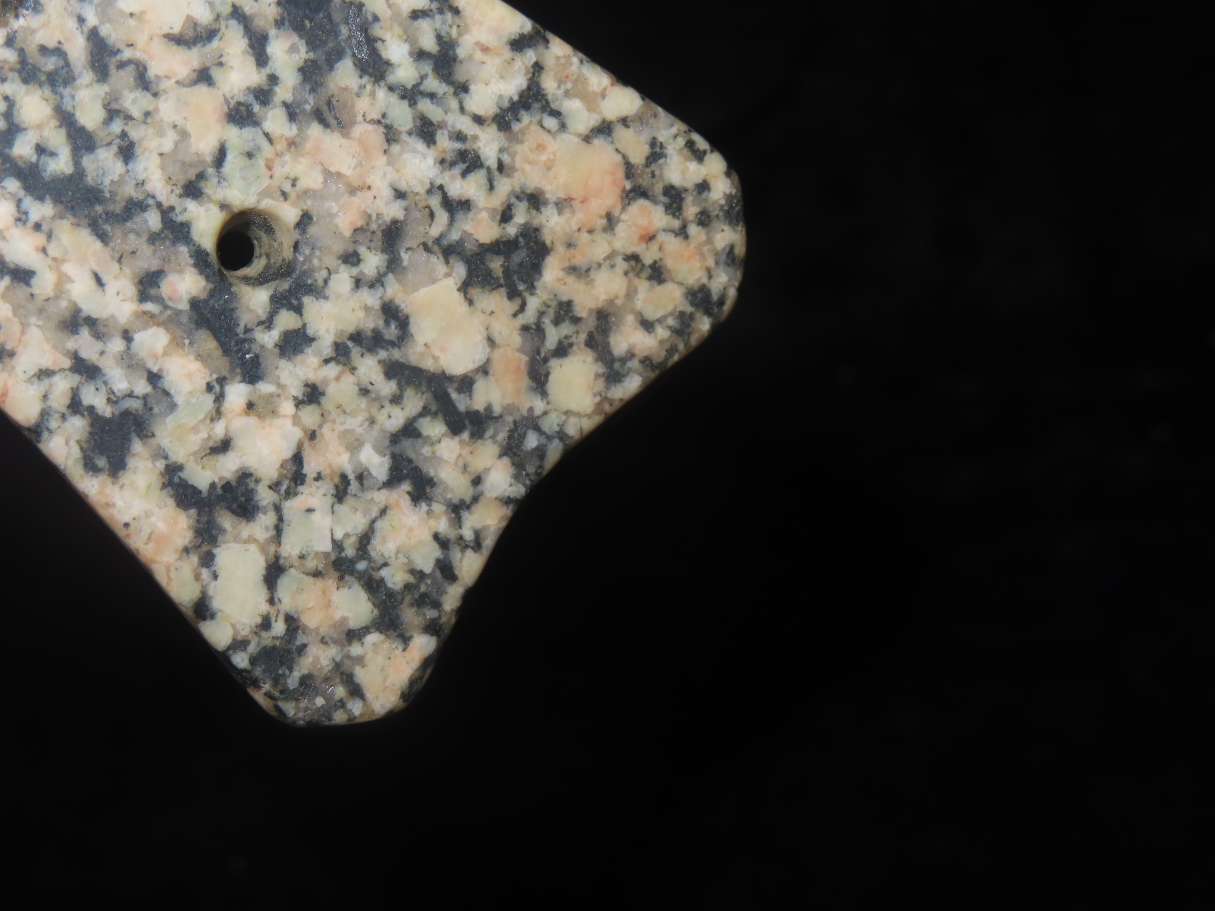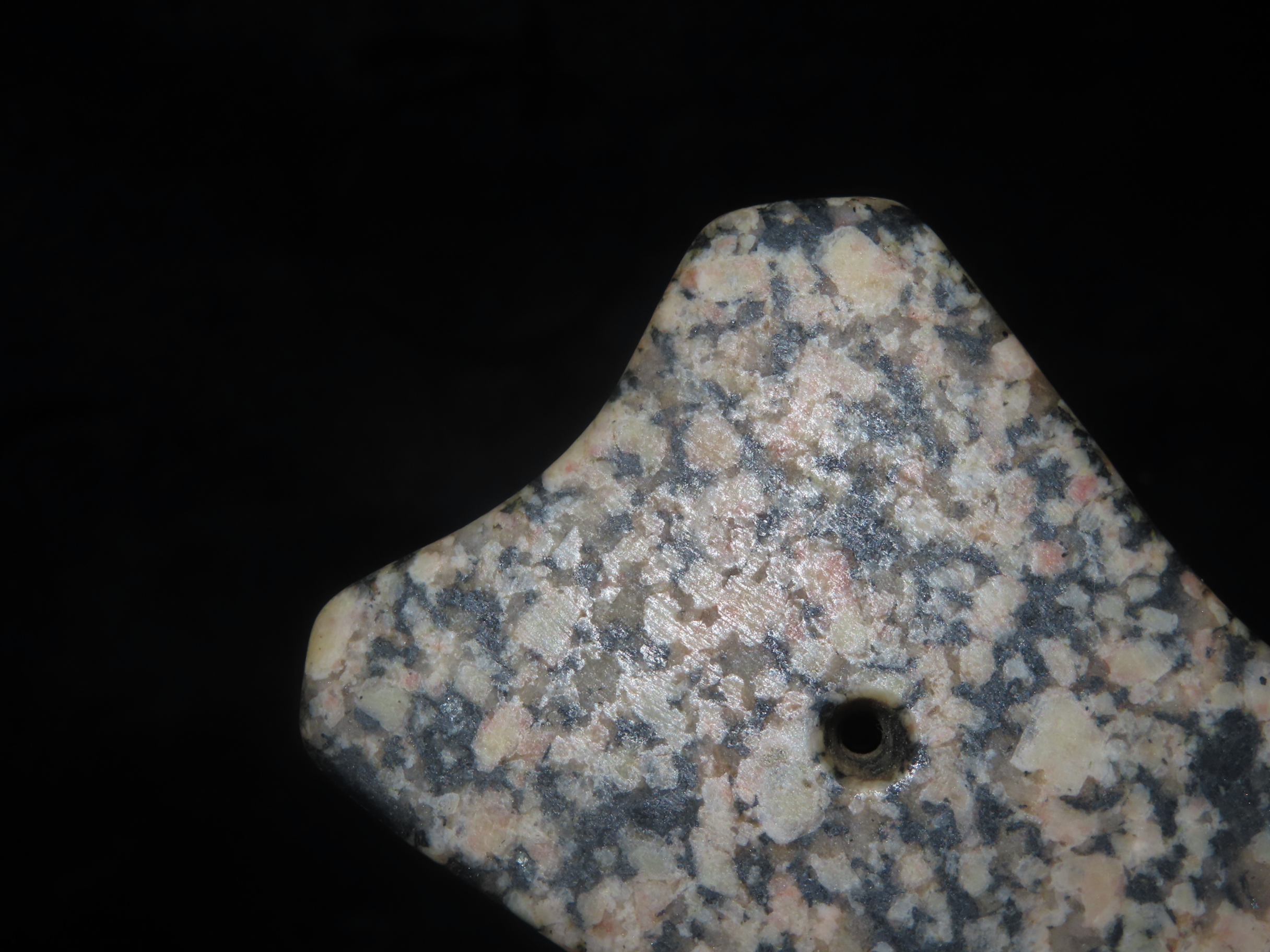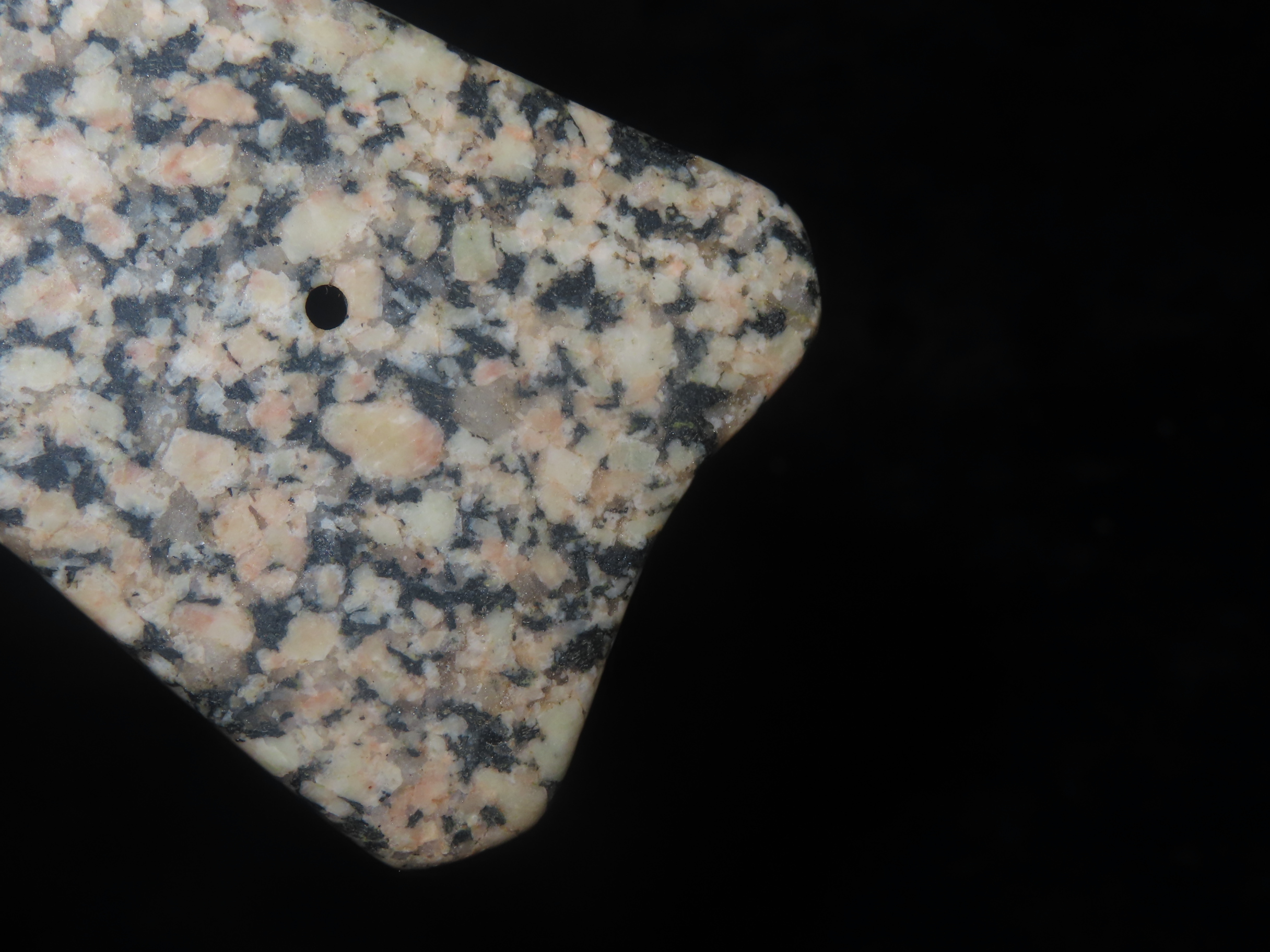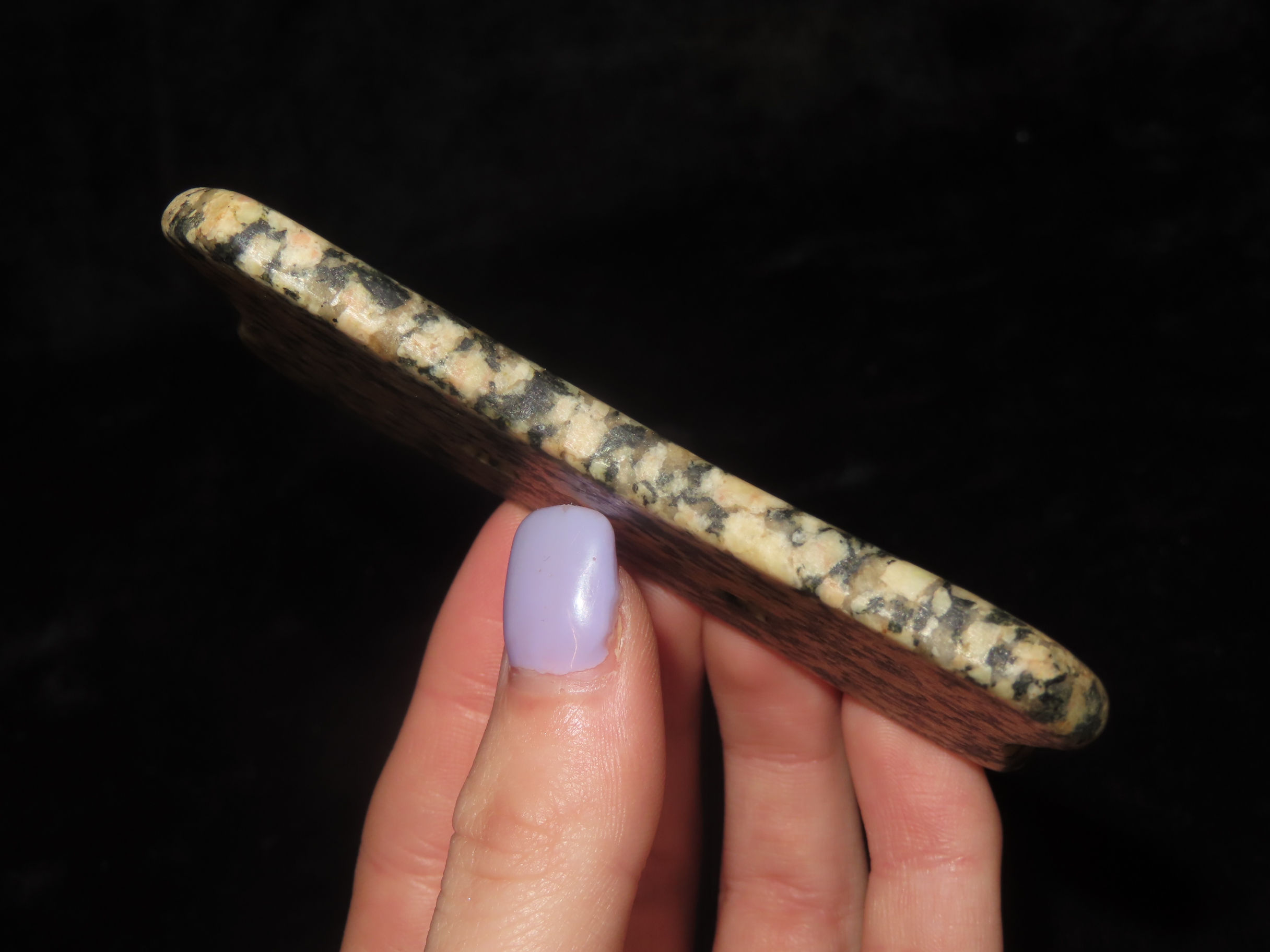 3 1/2″ Quadra-Concave Gorget, Motley COA, Ross County Ohio, Colorful well Polished Granite