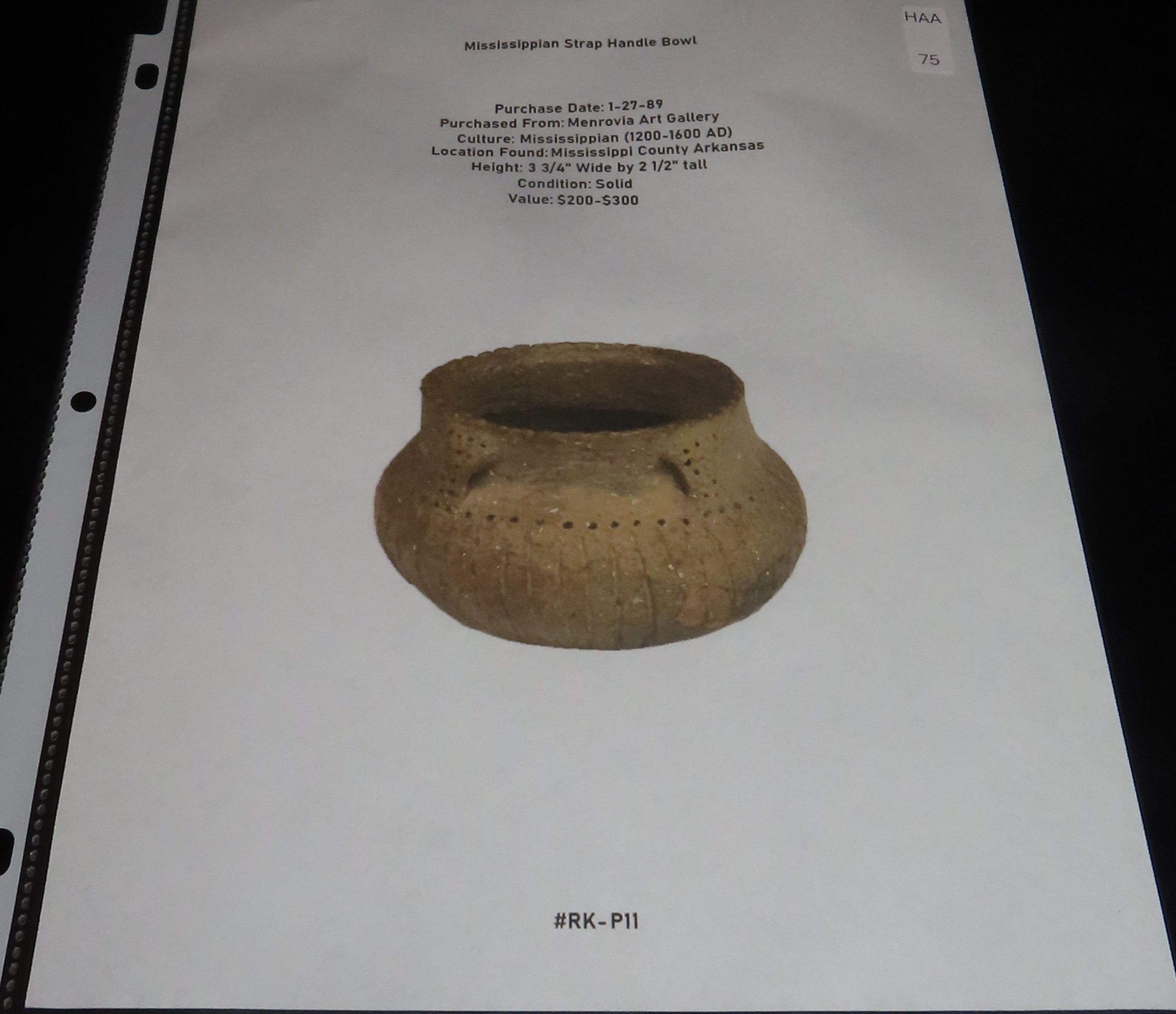 3 3/4″ Strap Handle Pot / Bowl, Mississippi County Arkansas, Solid