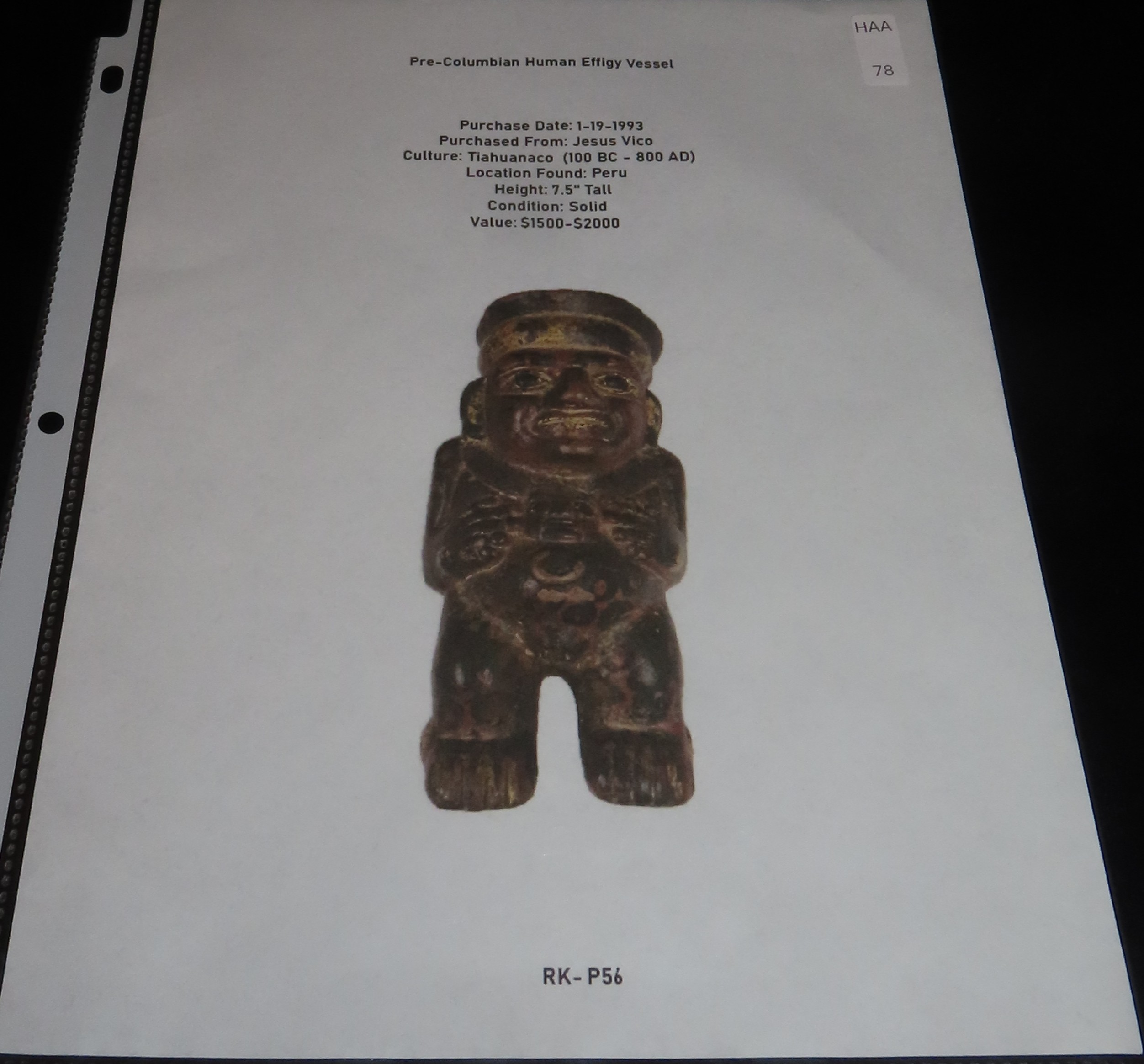 7 1/2″ Pre-Columbian Tiahuanaco Style Human Effigy Vessel, Solid, Peru, #RK-P56