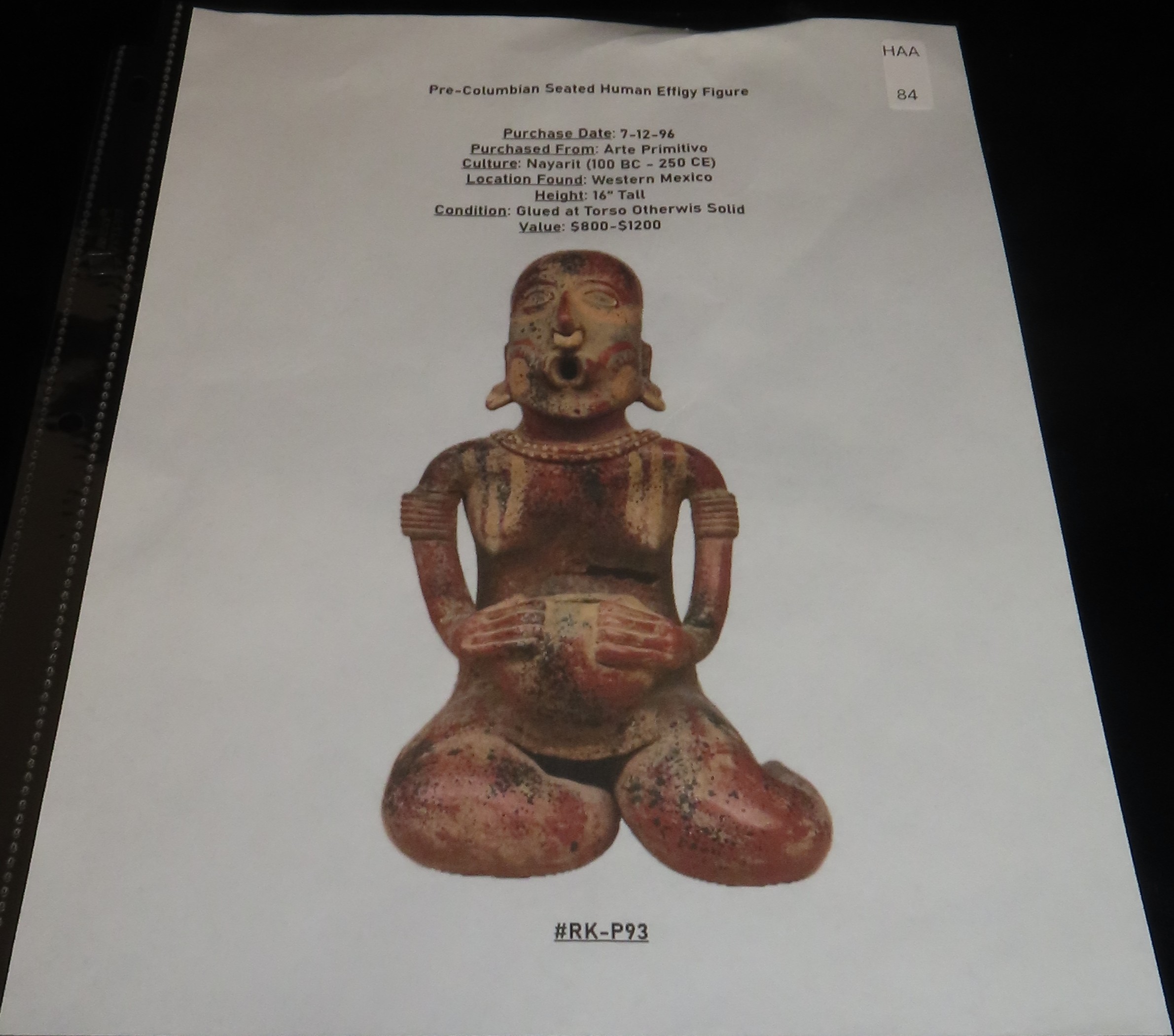 16″ Pre-Columbian Nayarit Style Human Effigy Figure, Glued at Midsection, Western Mexico, #RK-P93