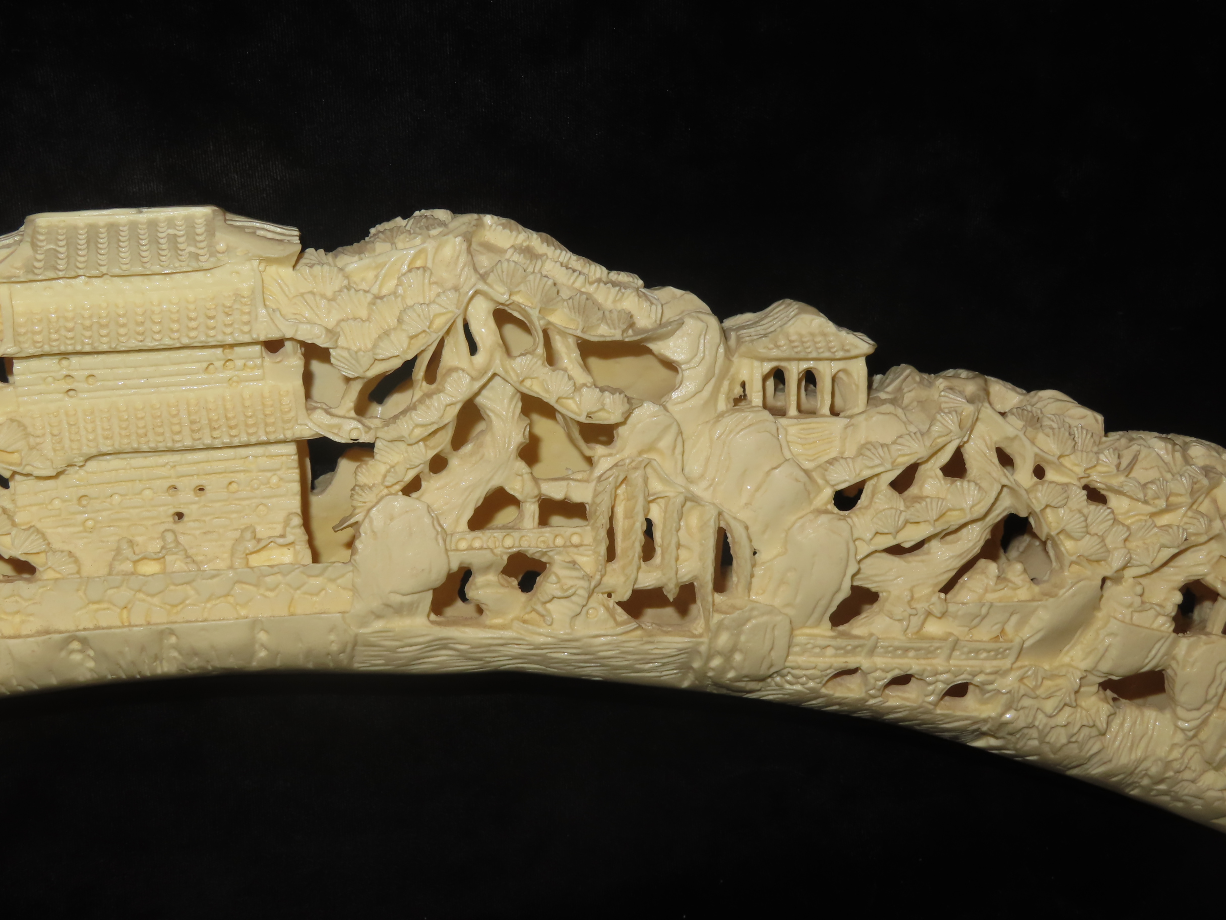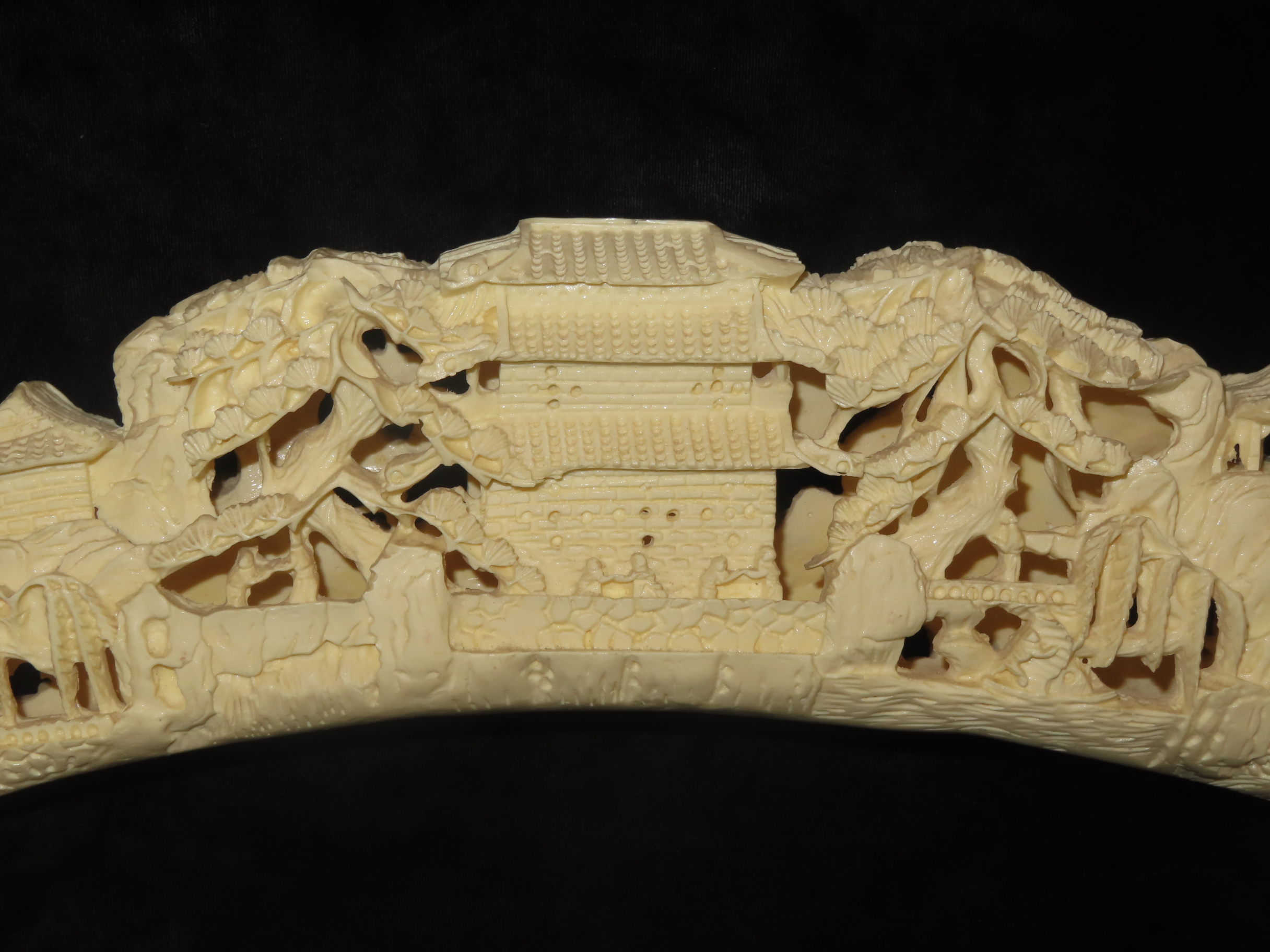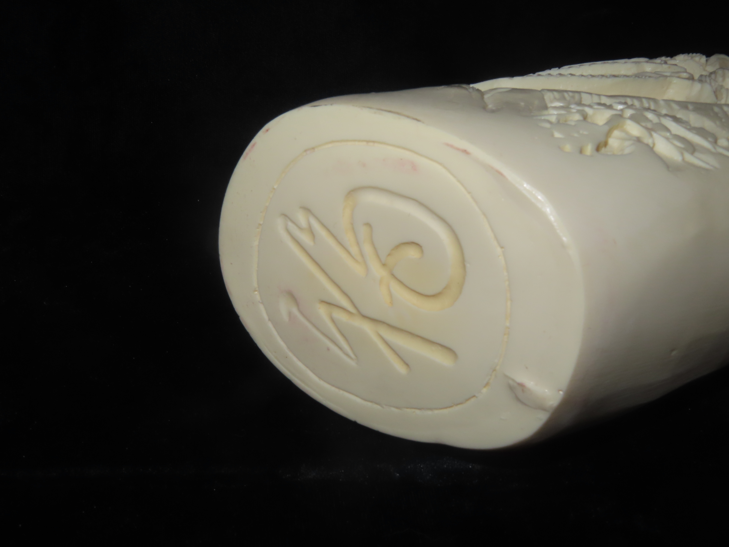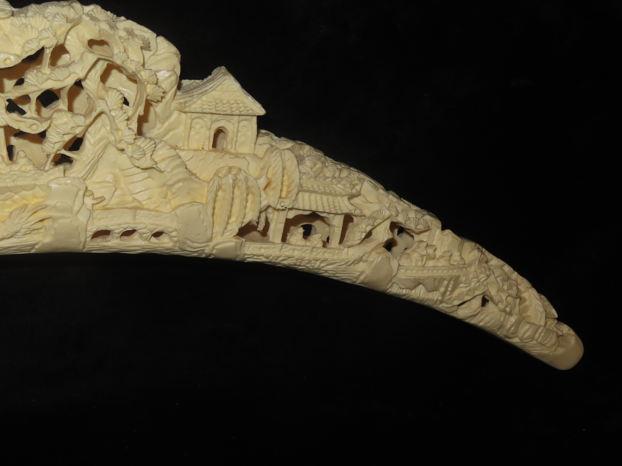 HUGE 29 1/4″ Faux Ivory Engraved Designed Resin Tusk, Intricately Designed Example, Cast Resin Plastic, Displays Nicely