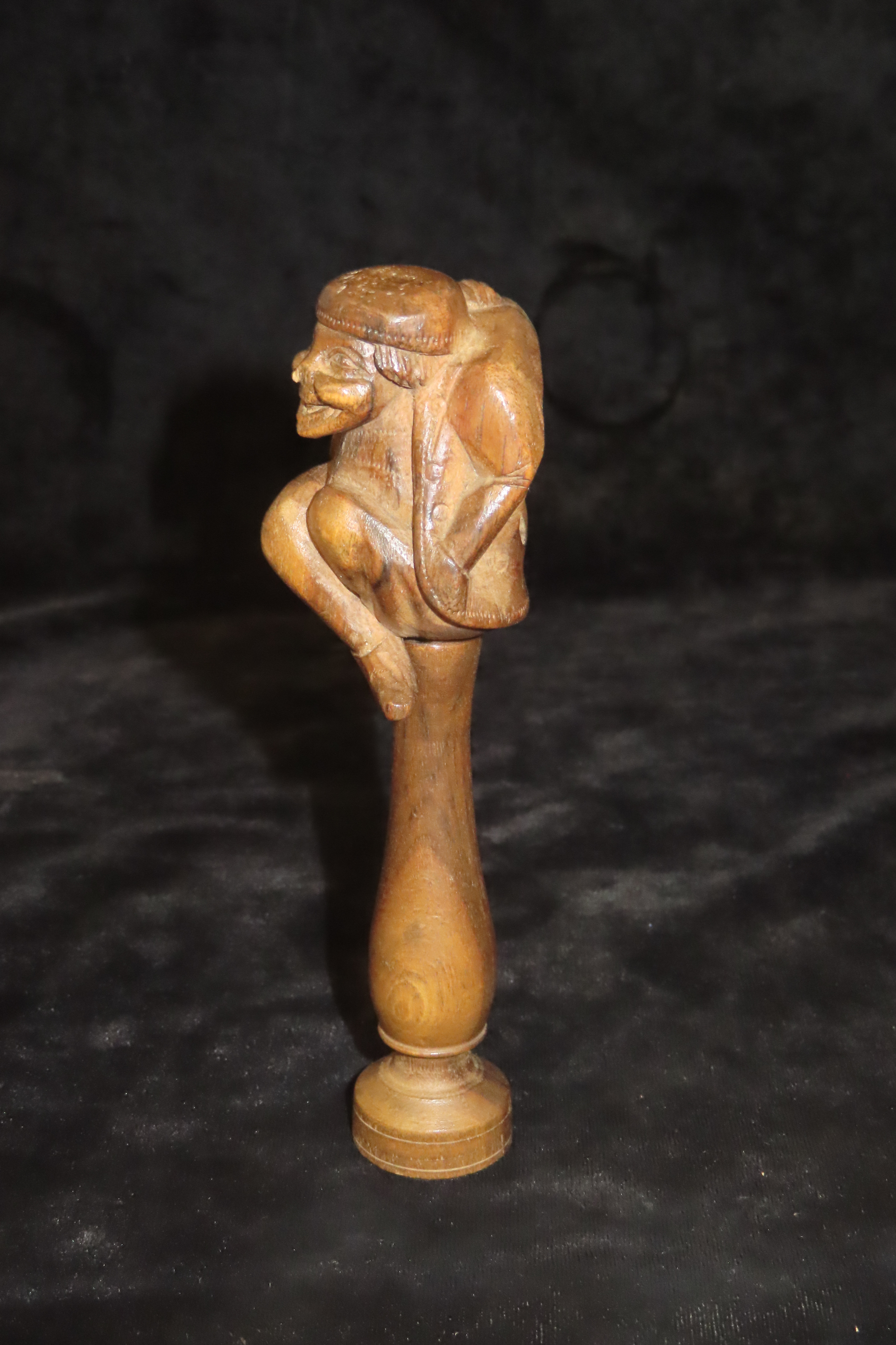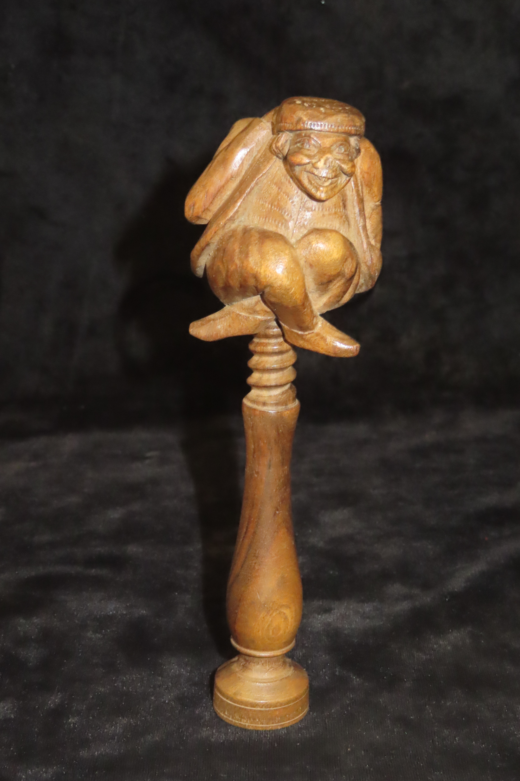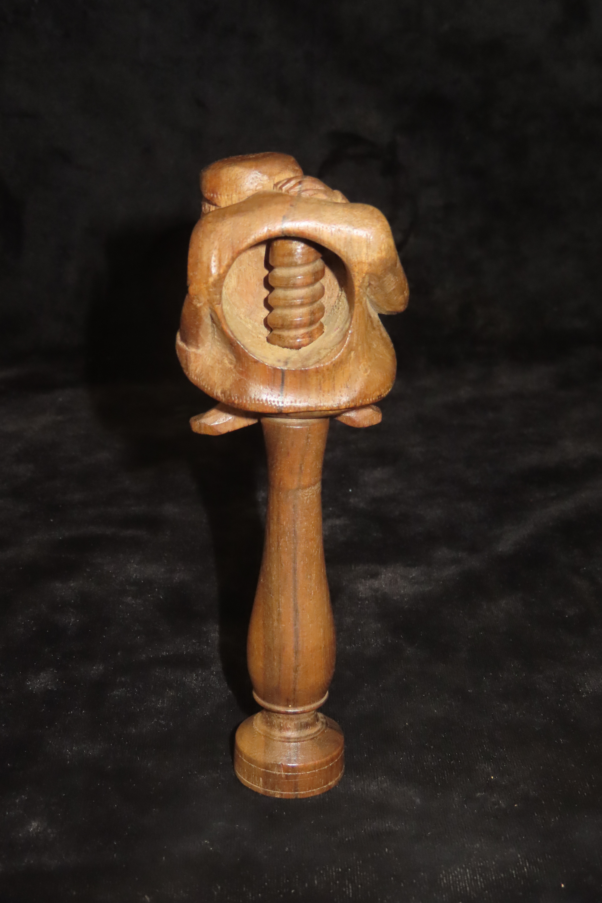 6 1/2" x 2" Antique French-German Wooden Screw turn Nutcracker, ca. 1800's, Ex Bill Heuter Collection