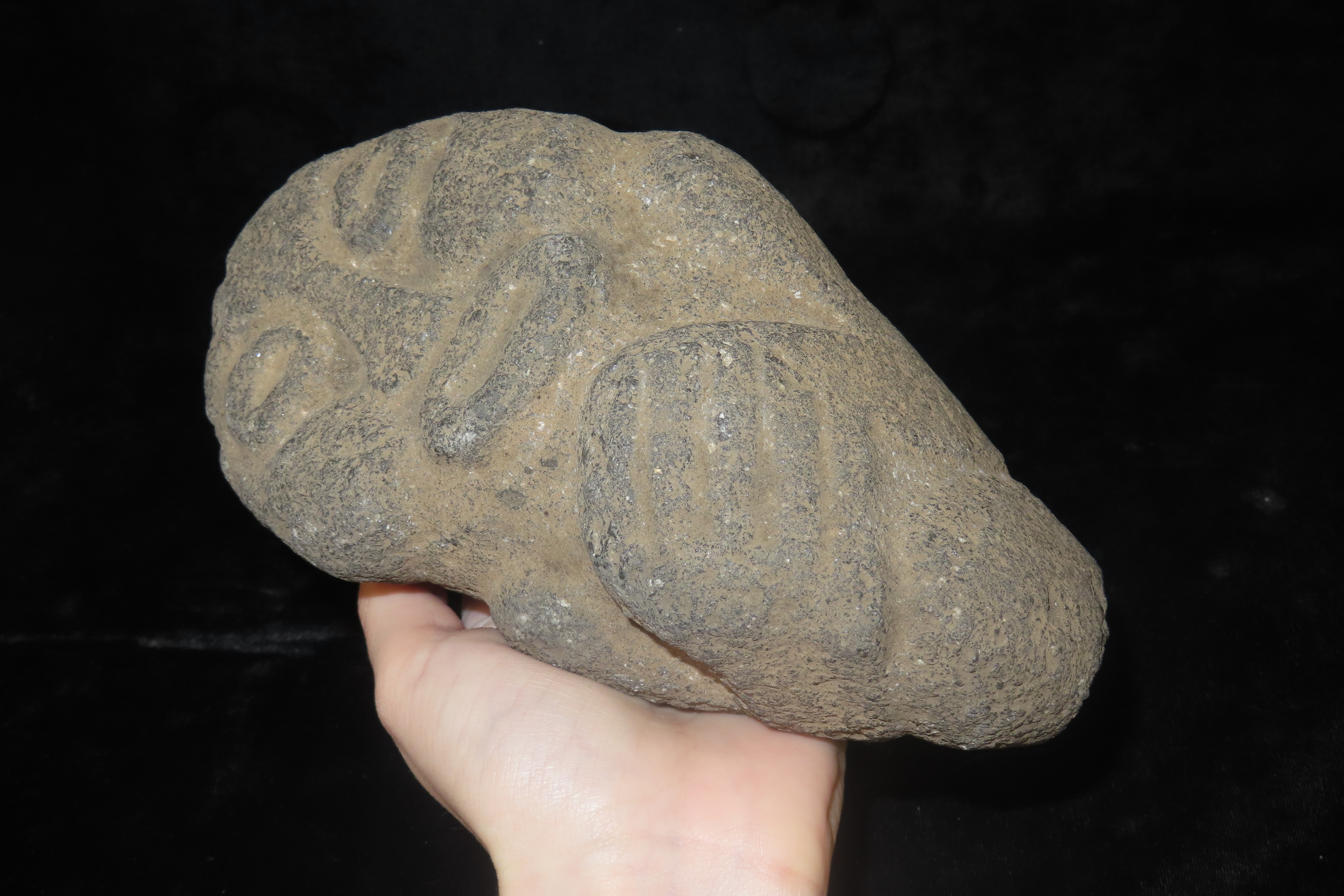 7 1/4" x 4" Pre-Columbian Volcanic Rock Human Effigy, Motley COA, from Guatemala, Ex Rich Atkins Collection