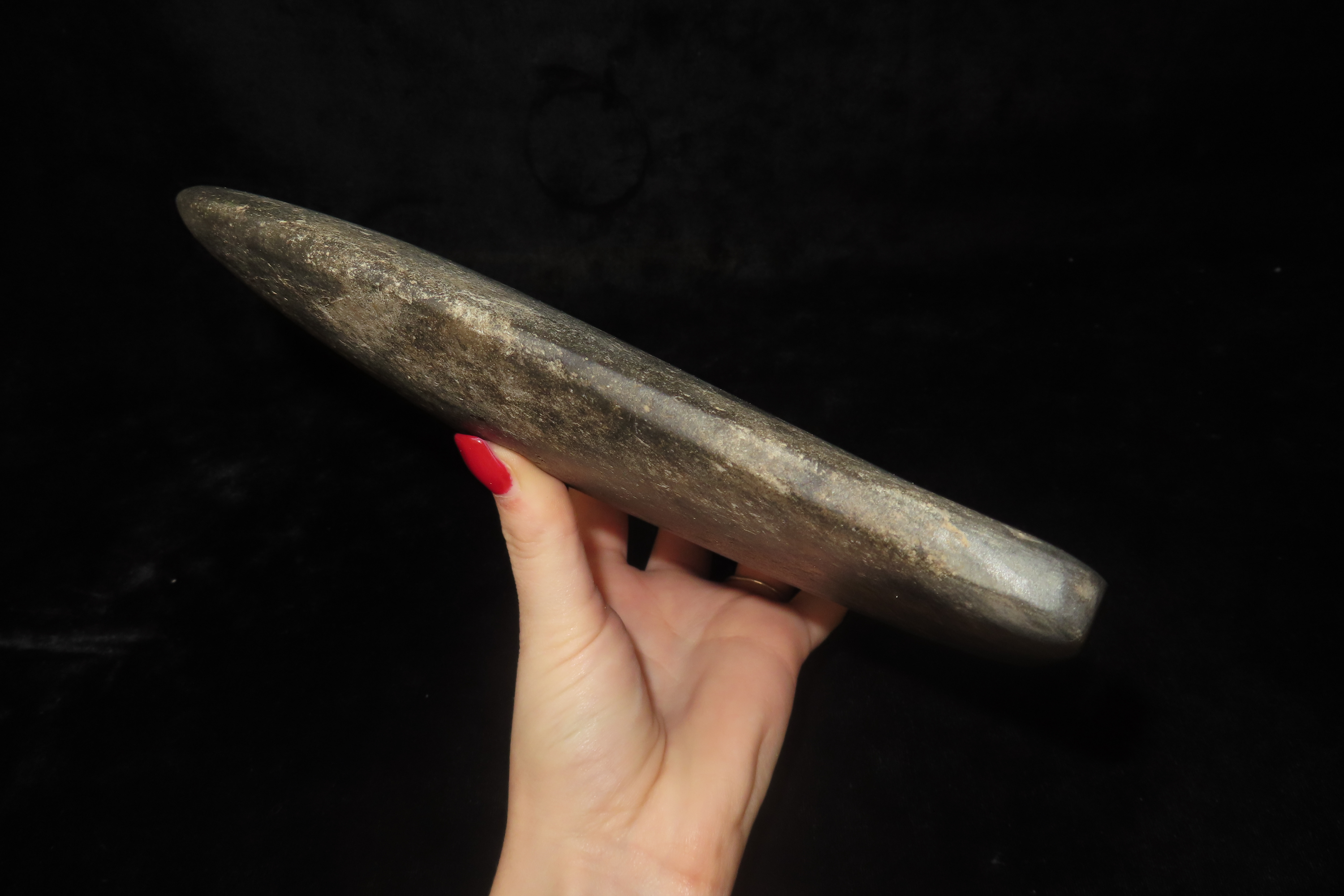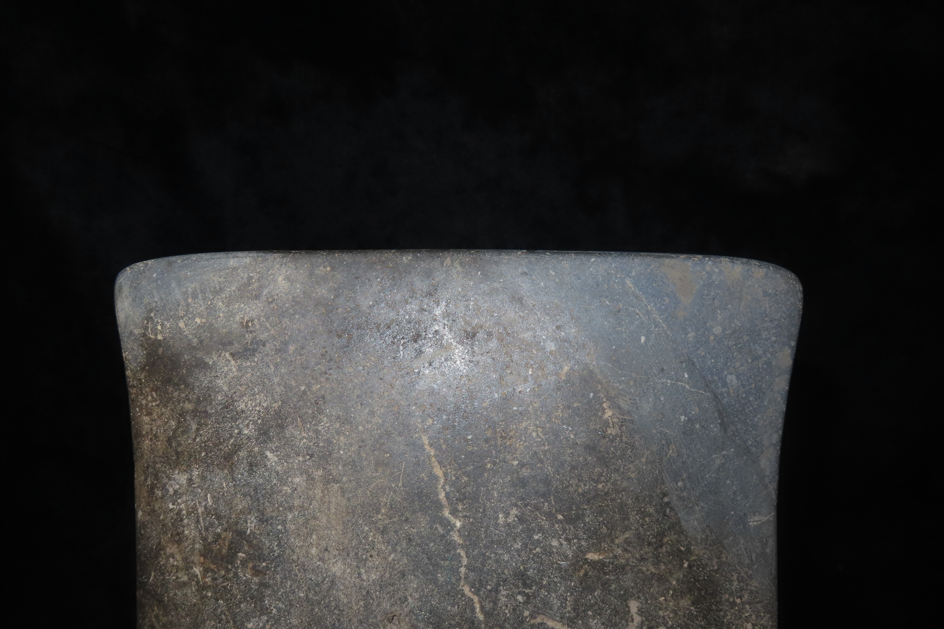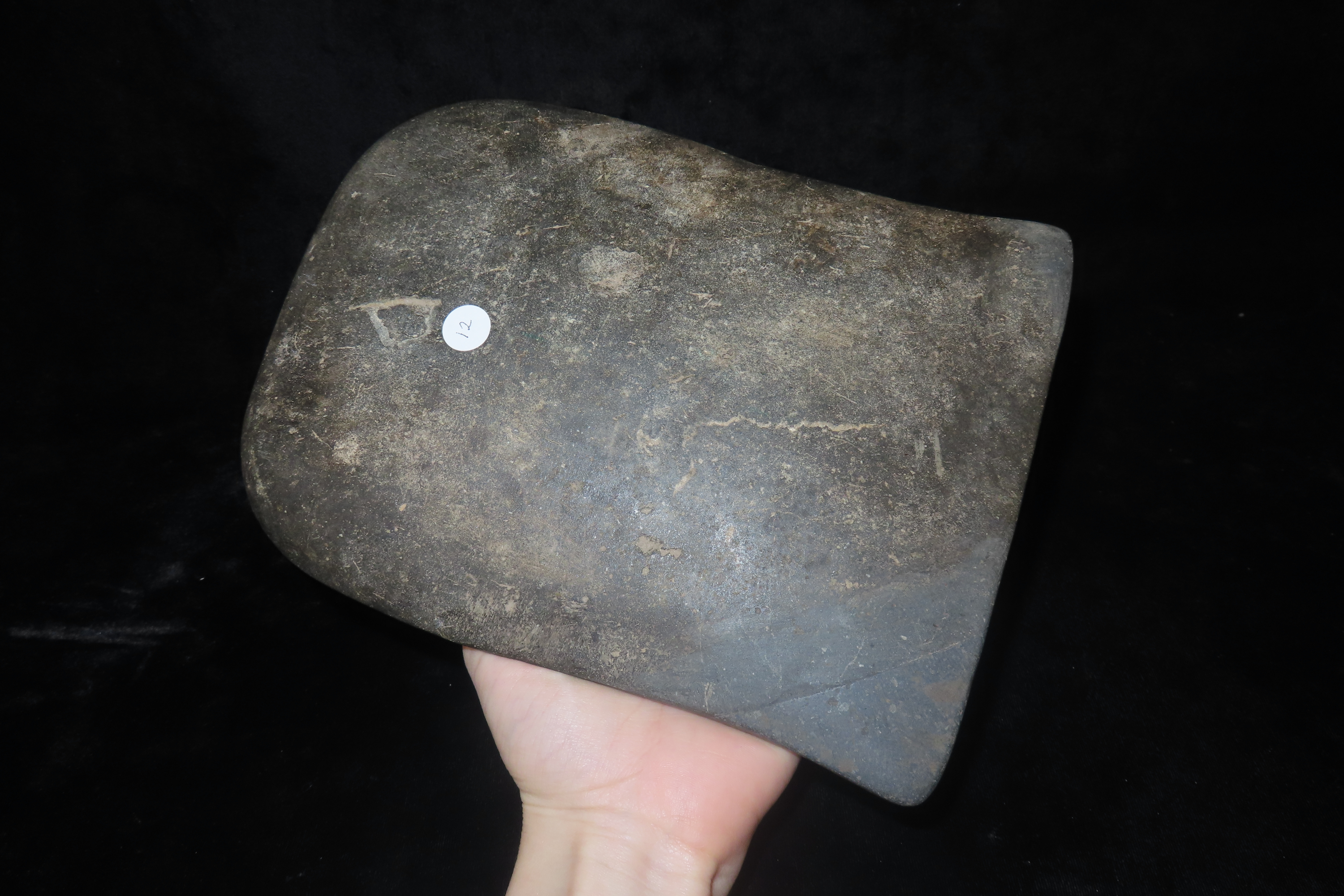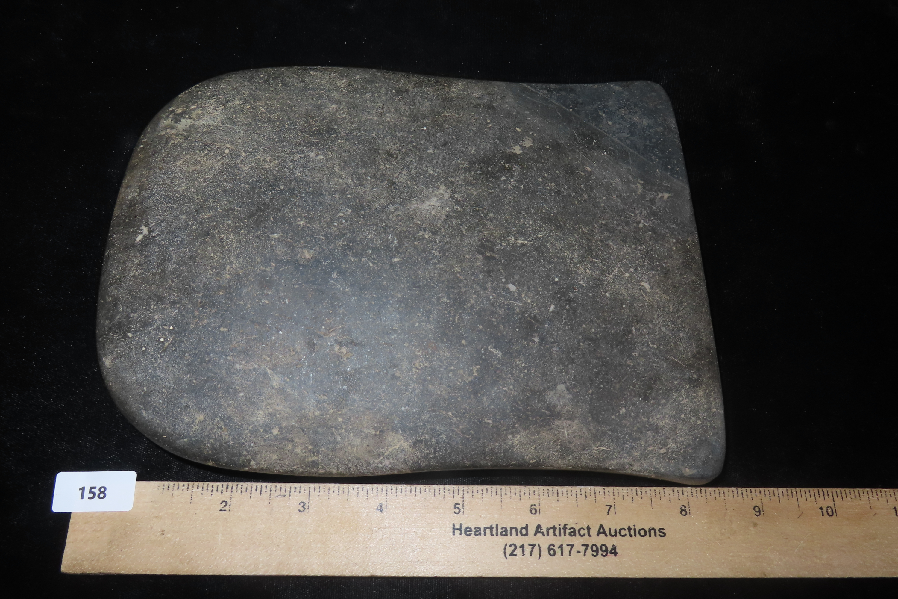 8 1/2″ x 6″ 6 5/8″ x 7 1/4″ Pre-Columbian Colorful Hardstone Votive(Ceremonial)Hand Axe, Motley COA, from Ecuador, Valdivian Period, Ex Rich Atkins Collection **One Corner Professionally Reattached**