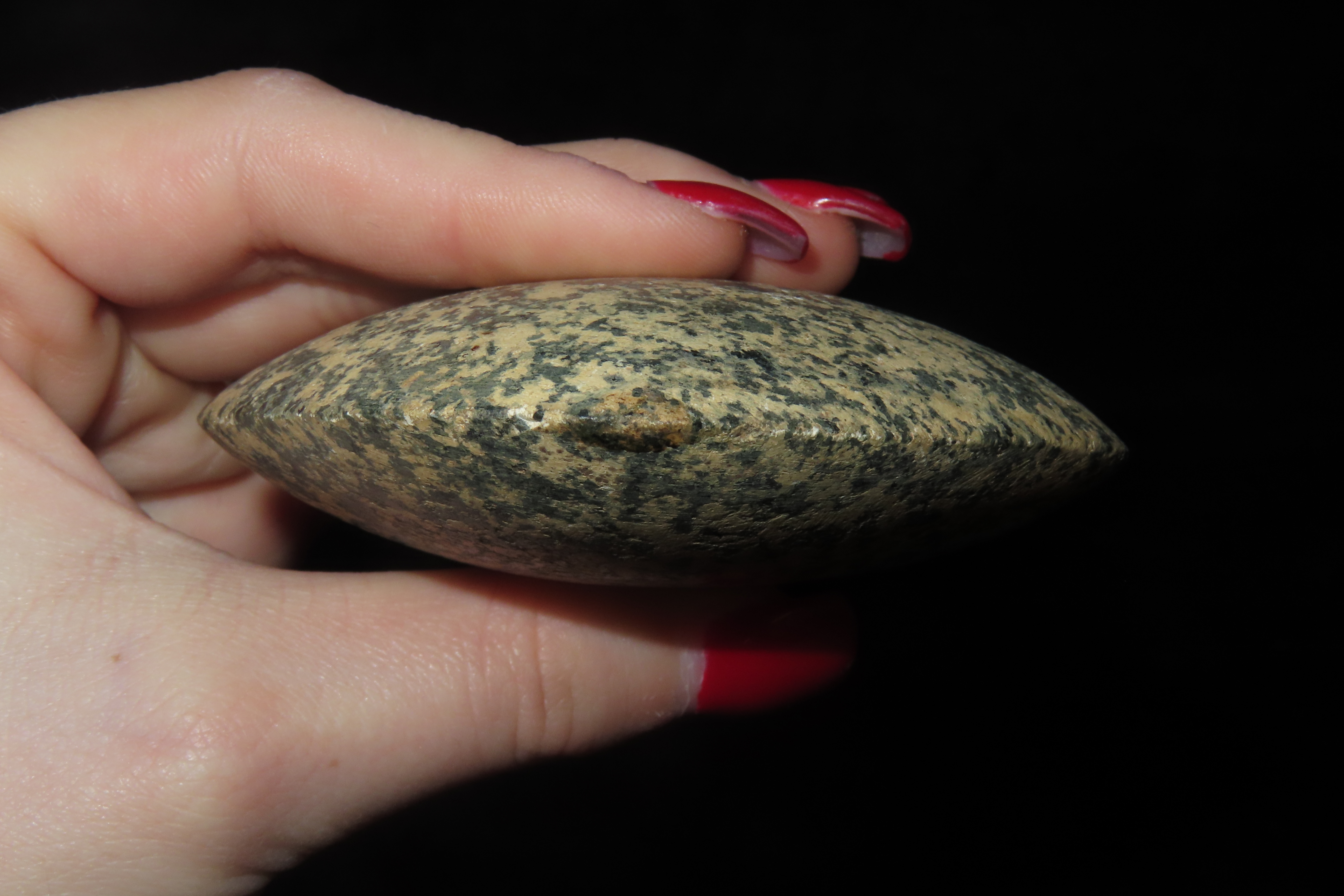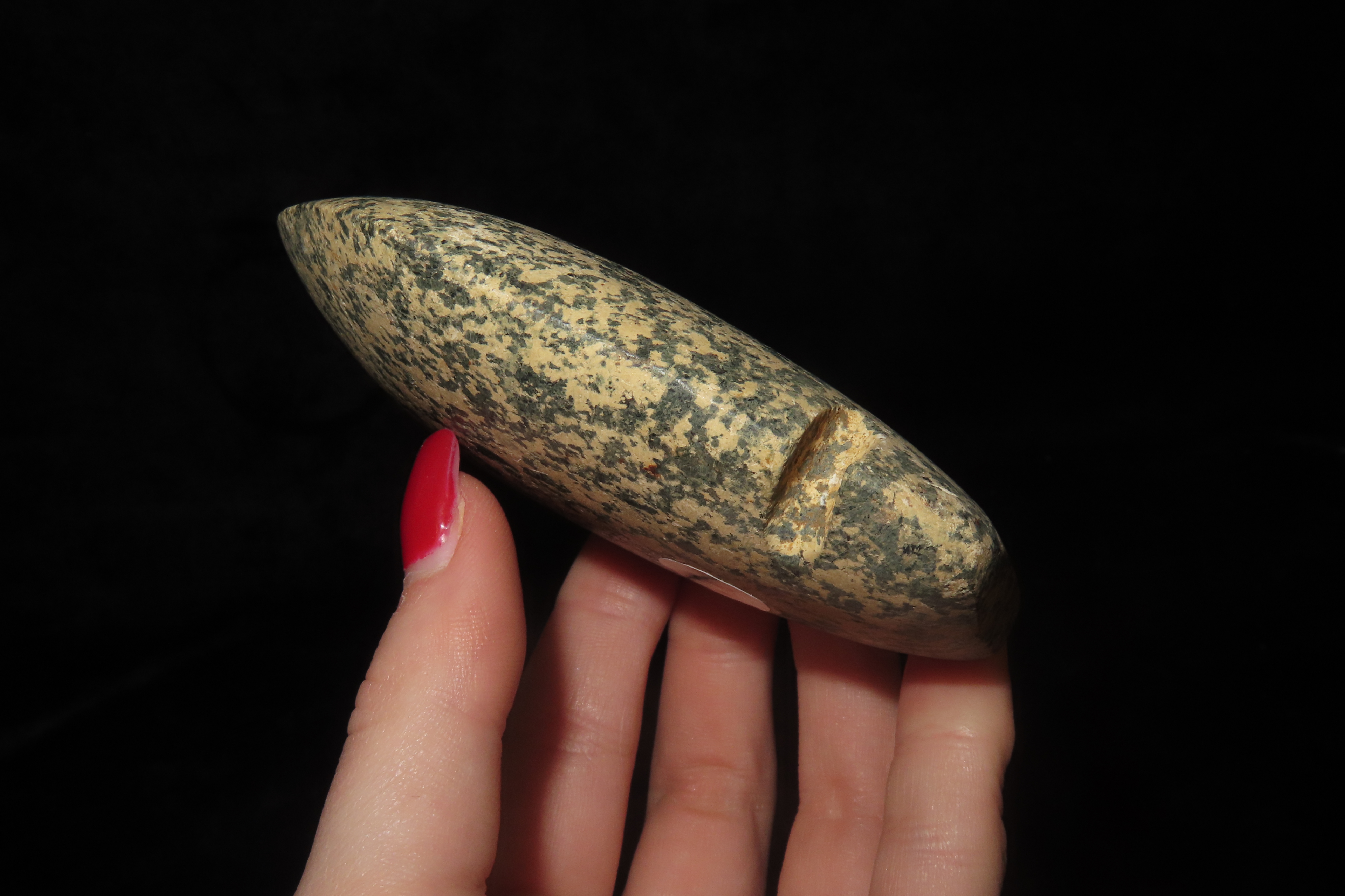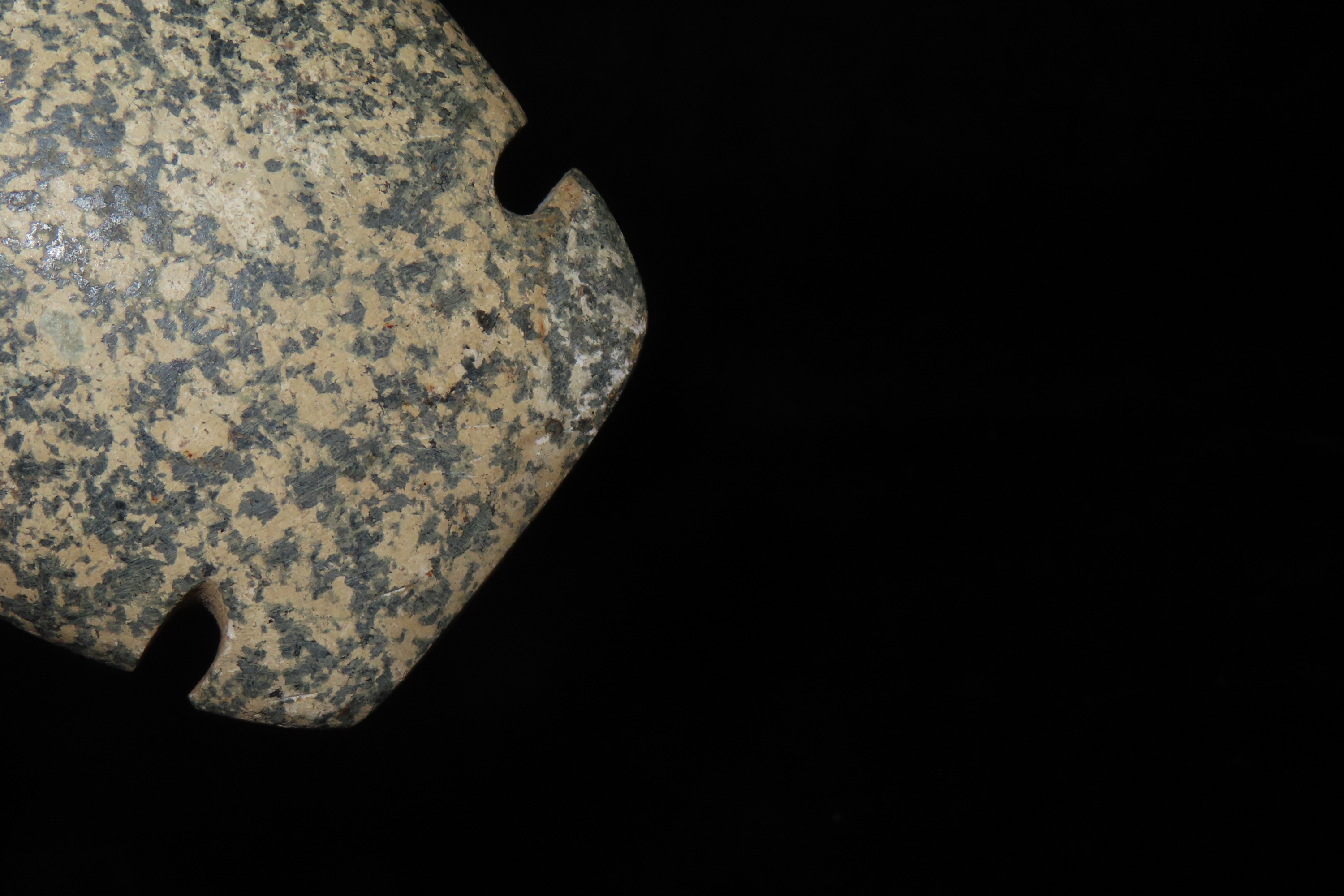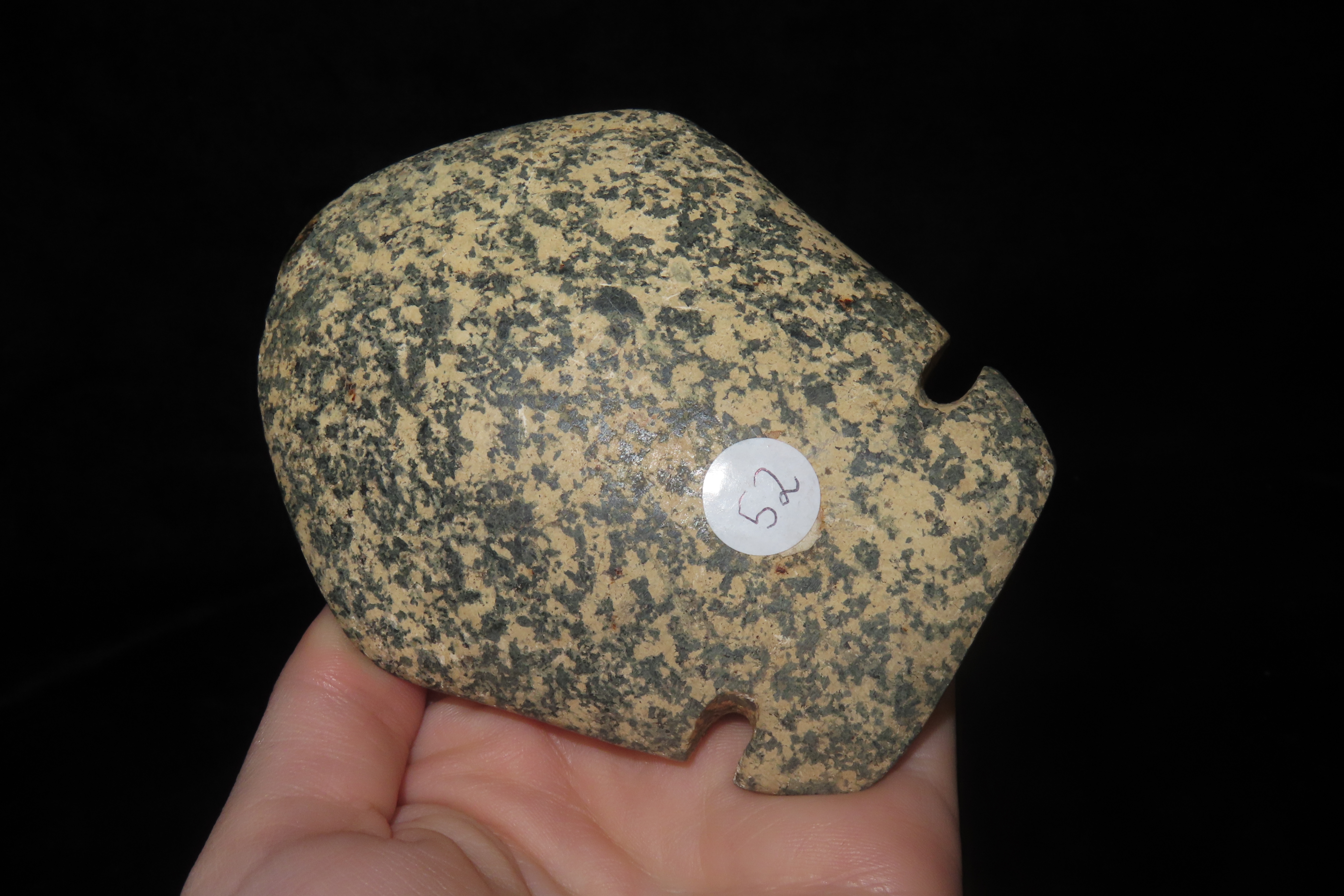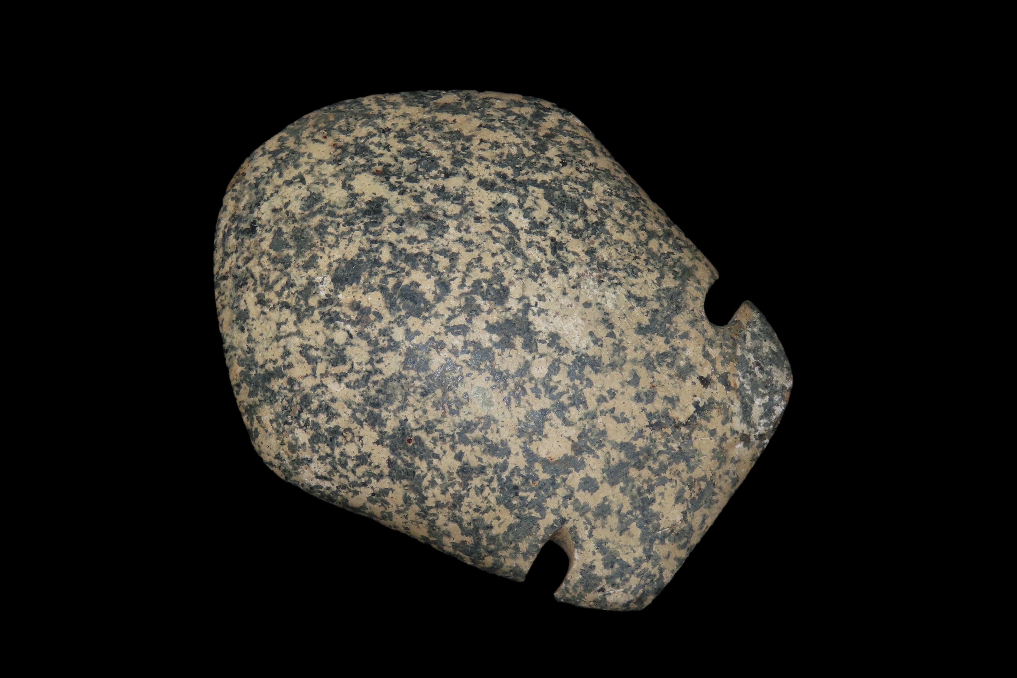 3 3/4" x 3" Pre-Columbian Utilitarian(Daily Use)Celt/Axe Head, Motley COA, Made of Colorful Black & White Mottled Hardstond, from Ecuador, Ex Rich Atkins Collection,