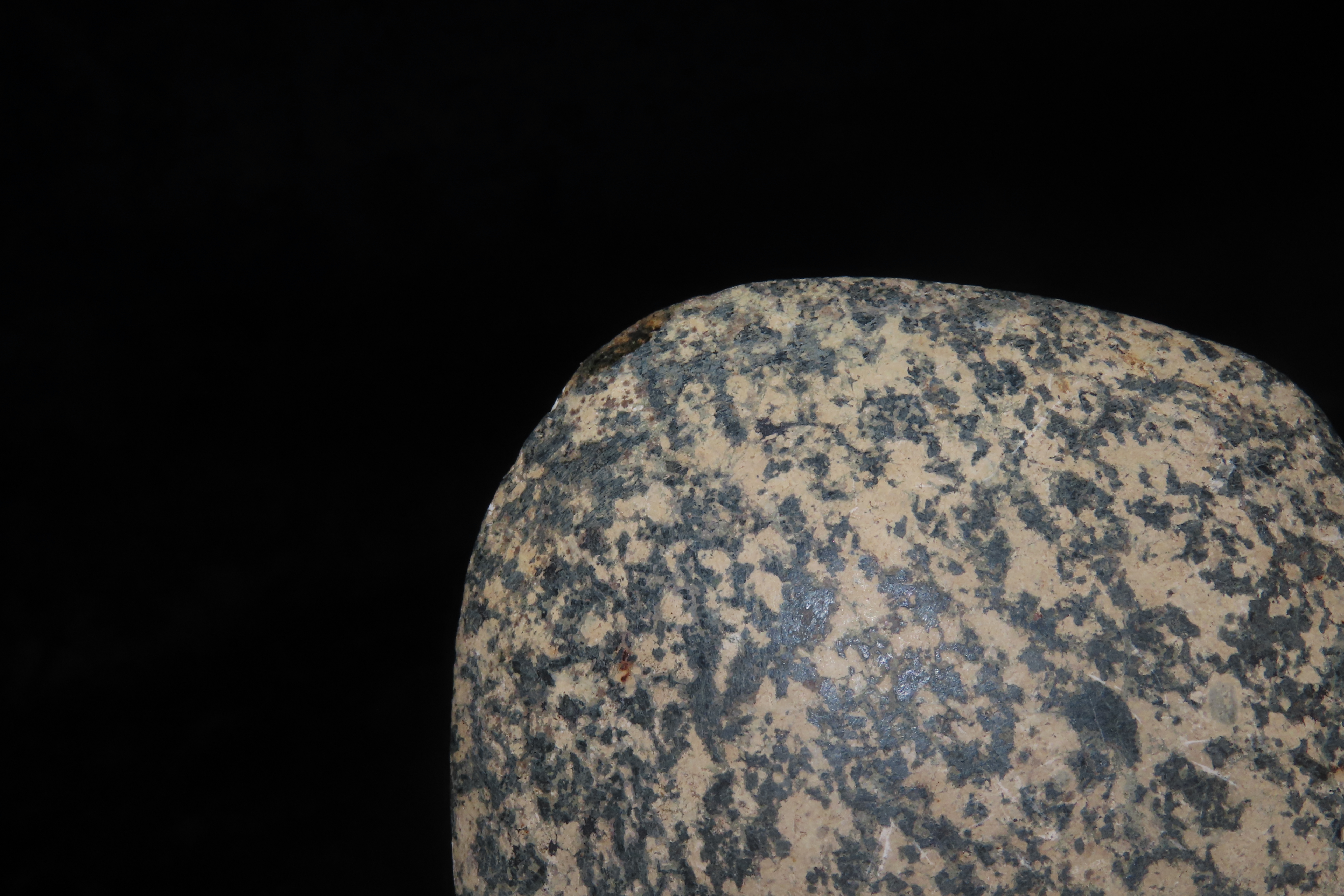 3 3/4″ x 3″ Pre-Columbian Utilitarian(Daily Use)Celt/Axe Head, Motley COA, Made of Colorful Black & White Mottled Hardstond, from Ecuador, Ex Rich Atkins Collection