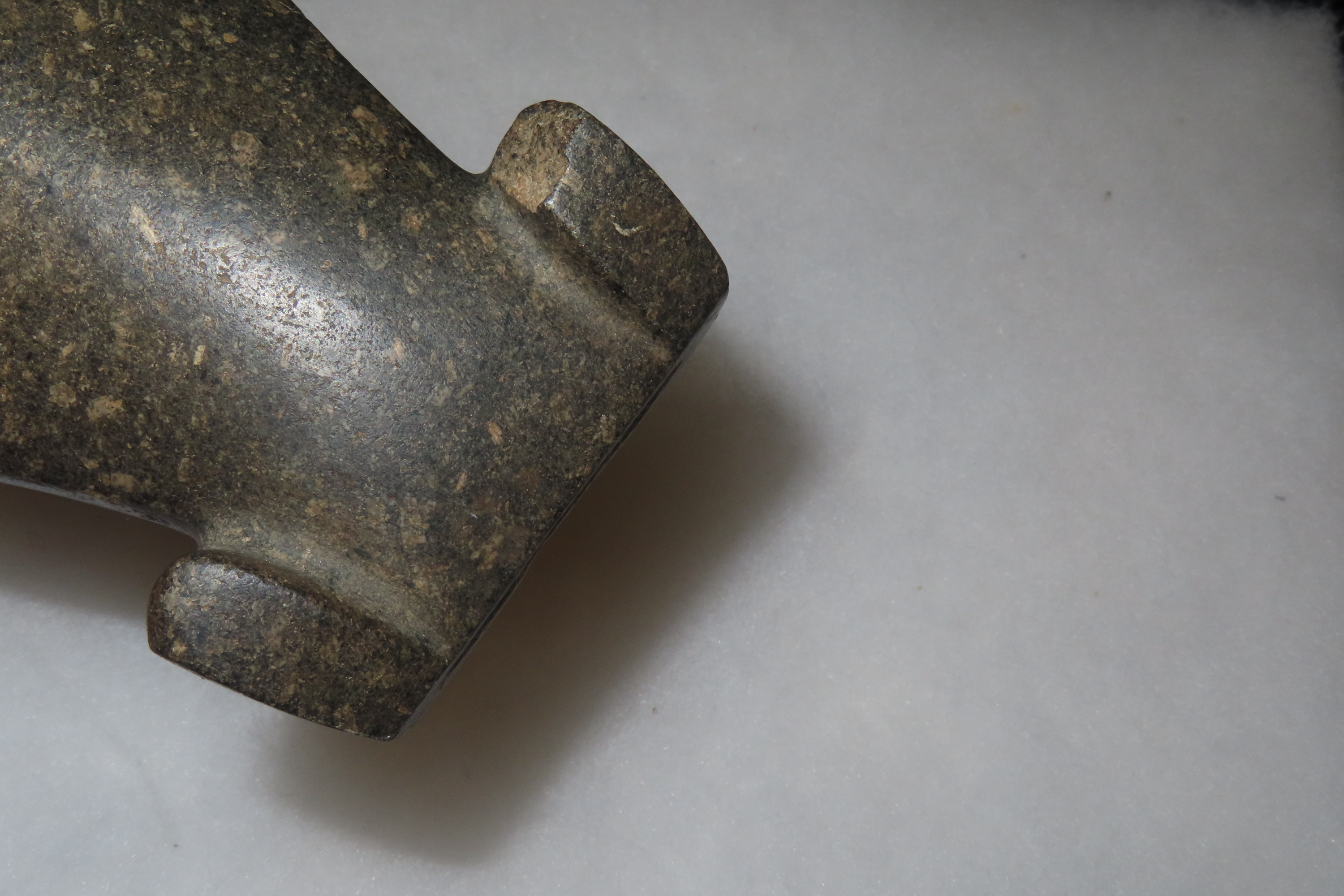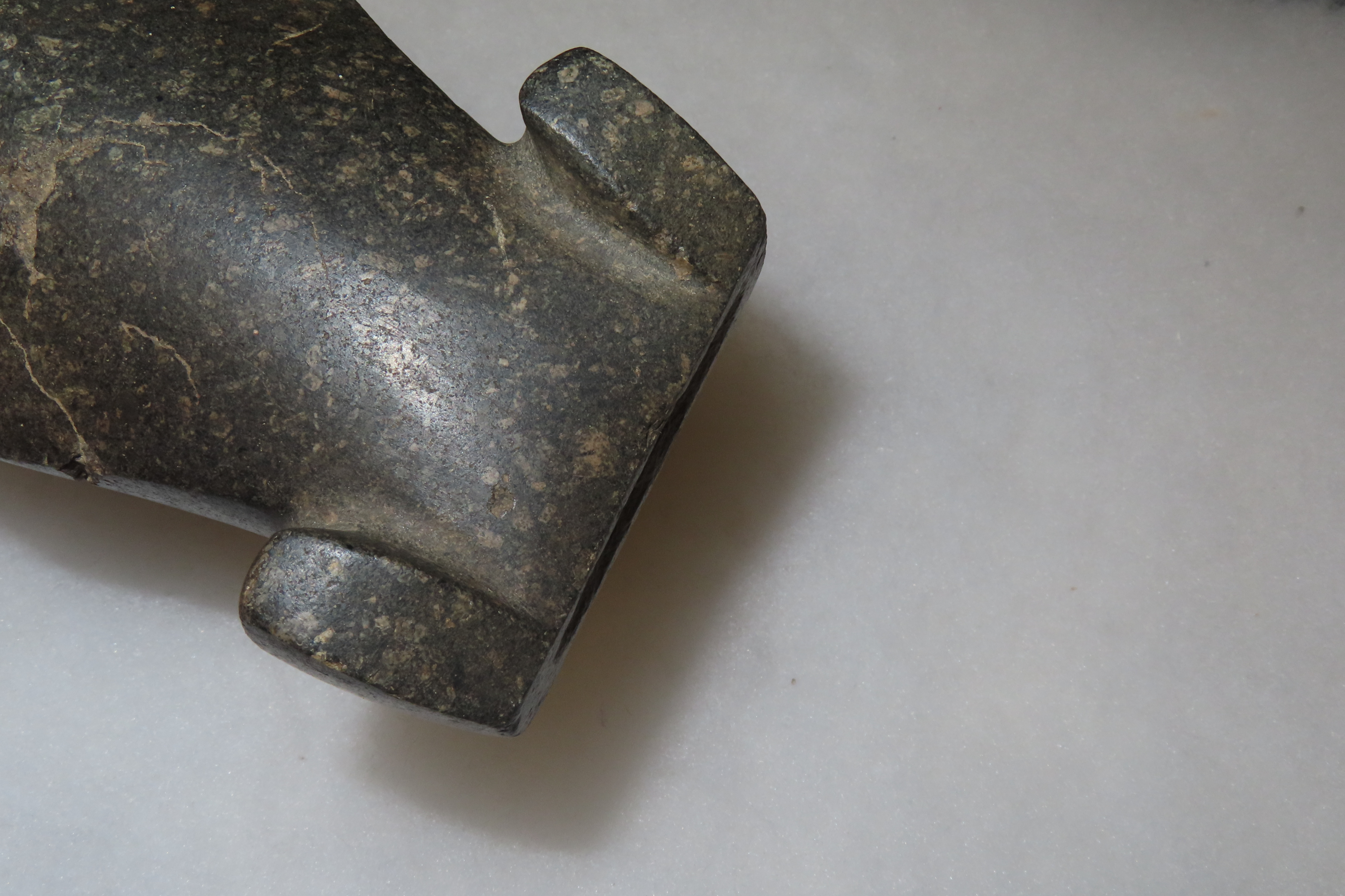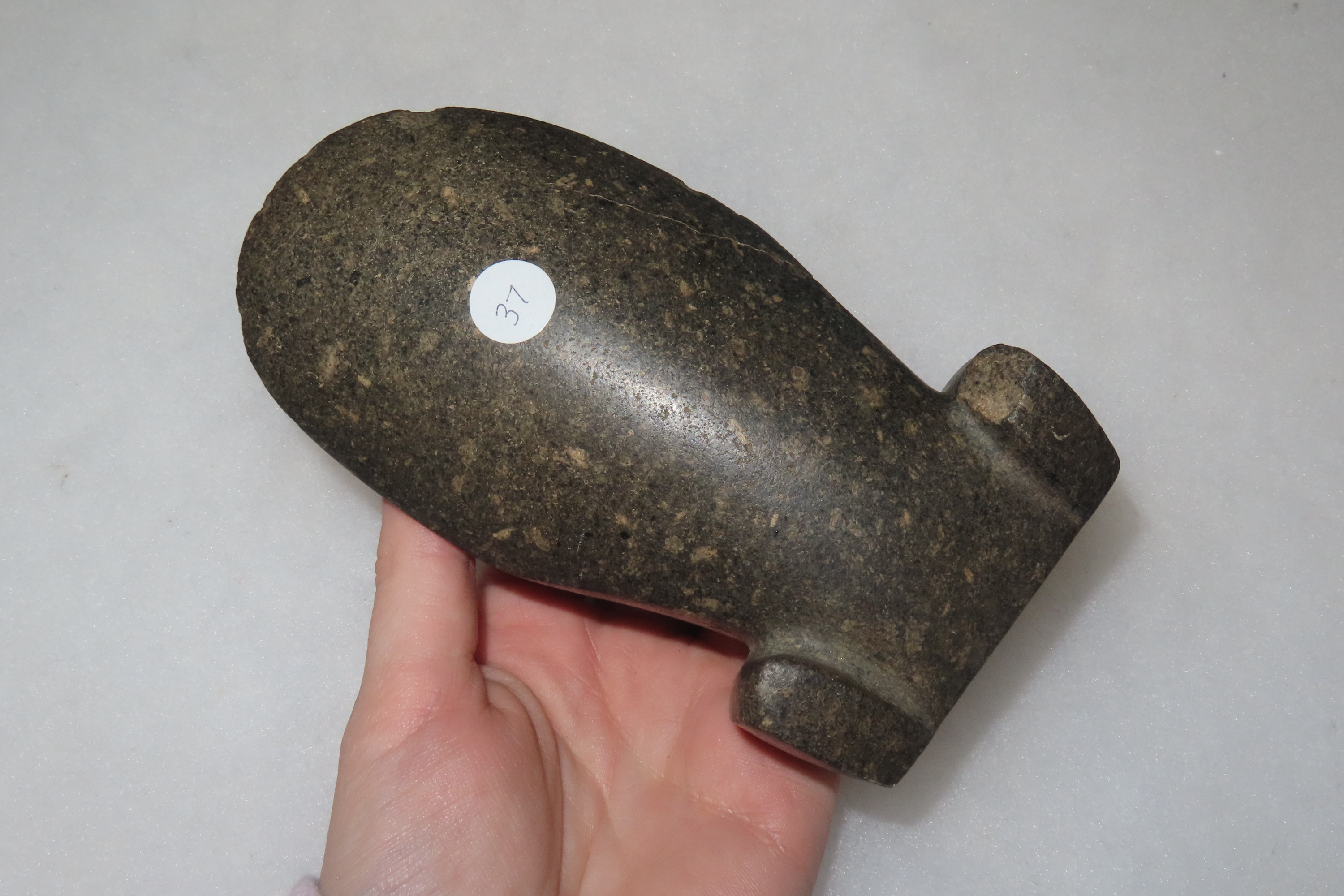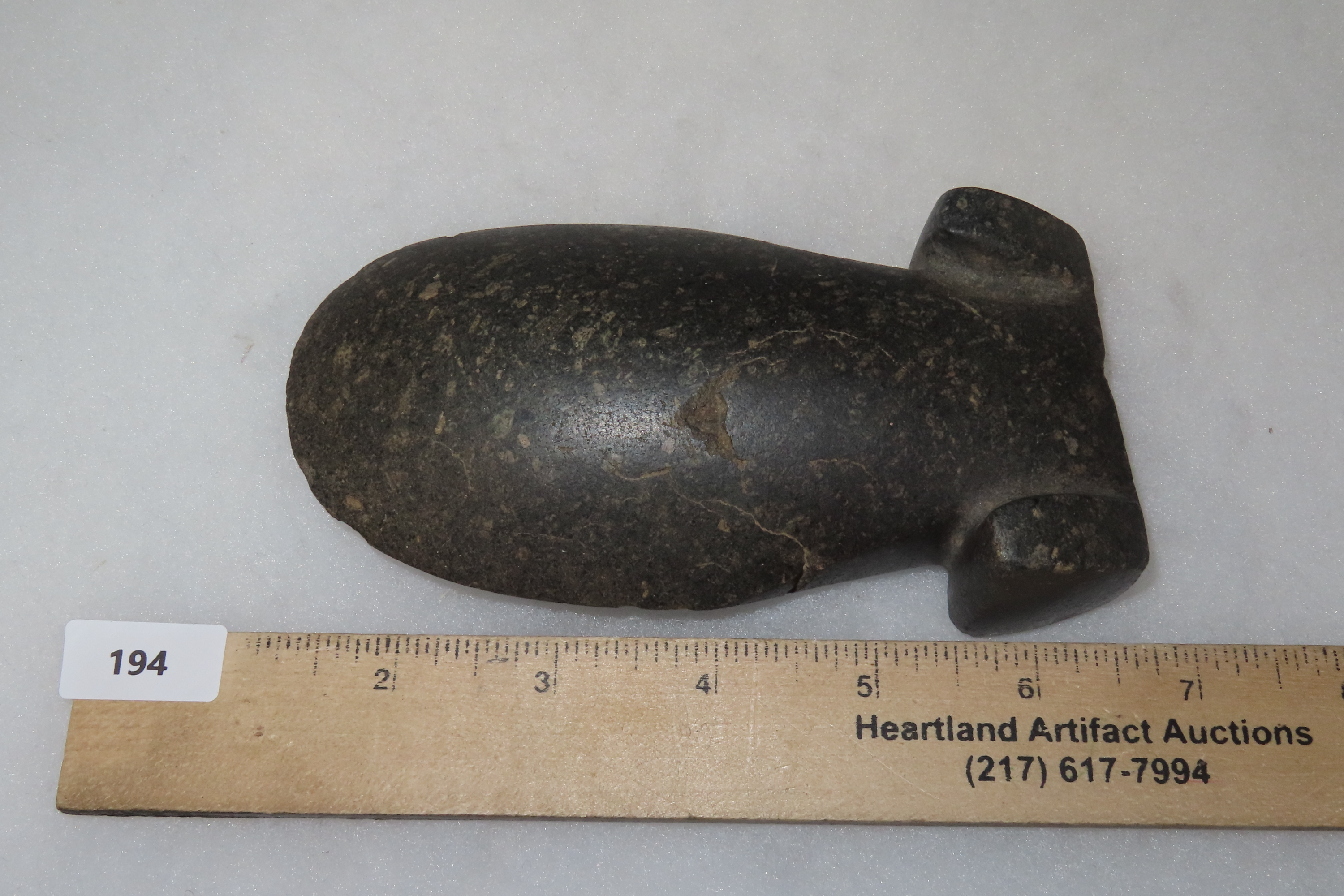 4 15/16″ x 2 5/8″ Pre-Columbian Colorful Hardstone Celt Head, Motley COA, from Ecuador, Ex Rich Atkins Collection