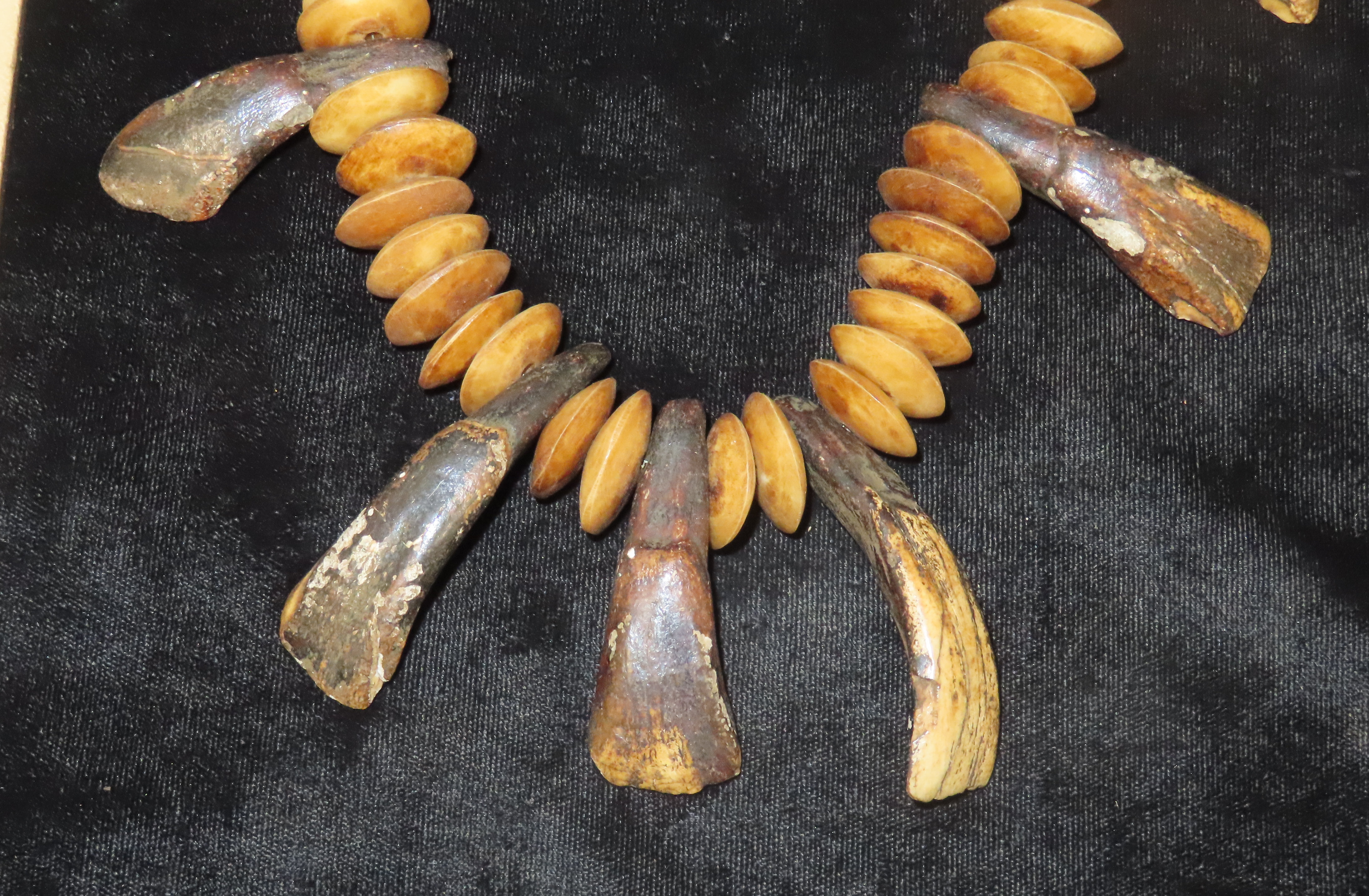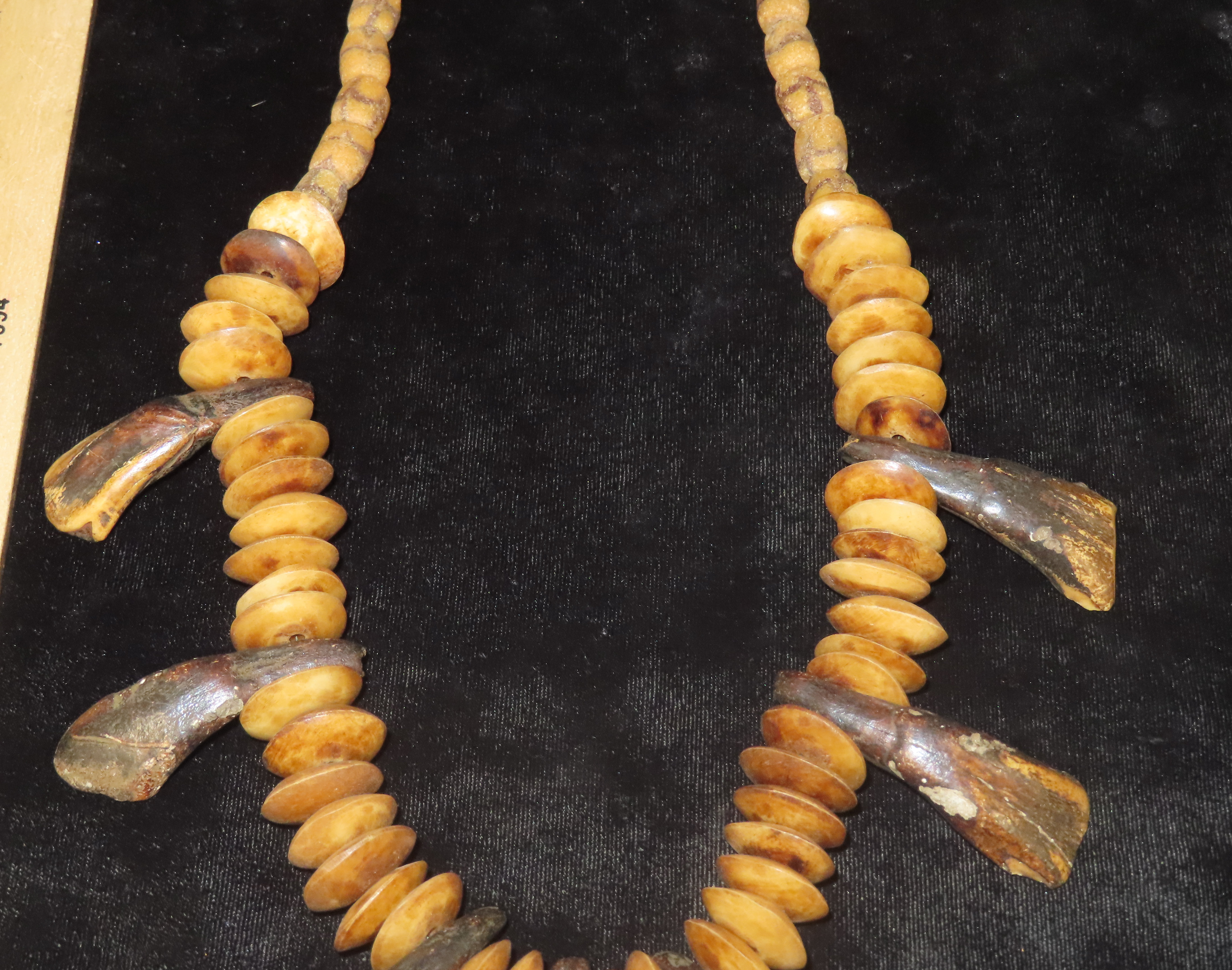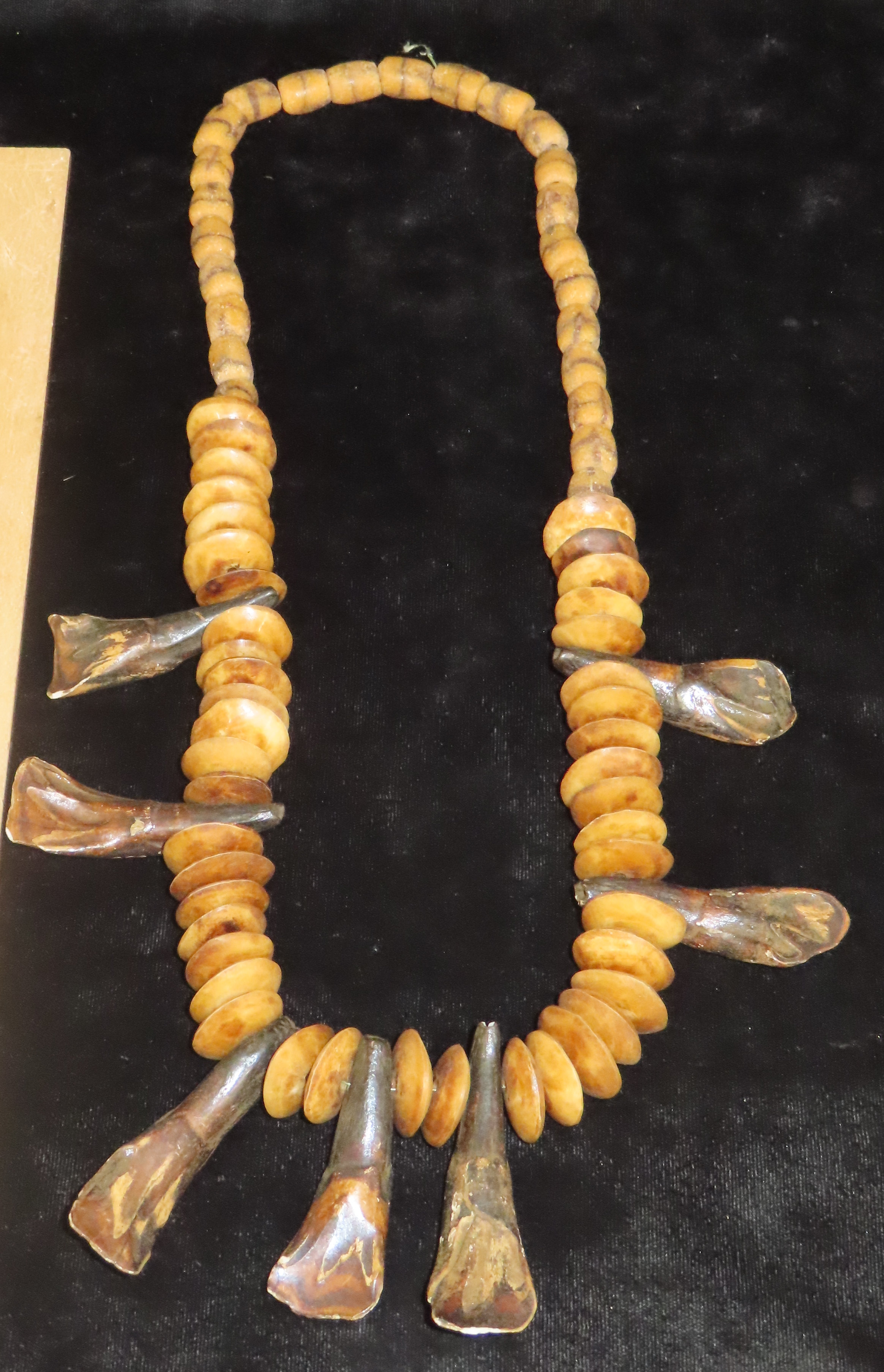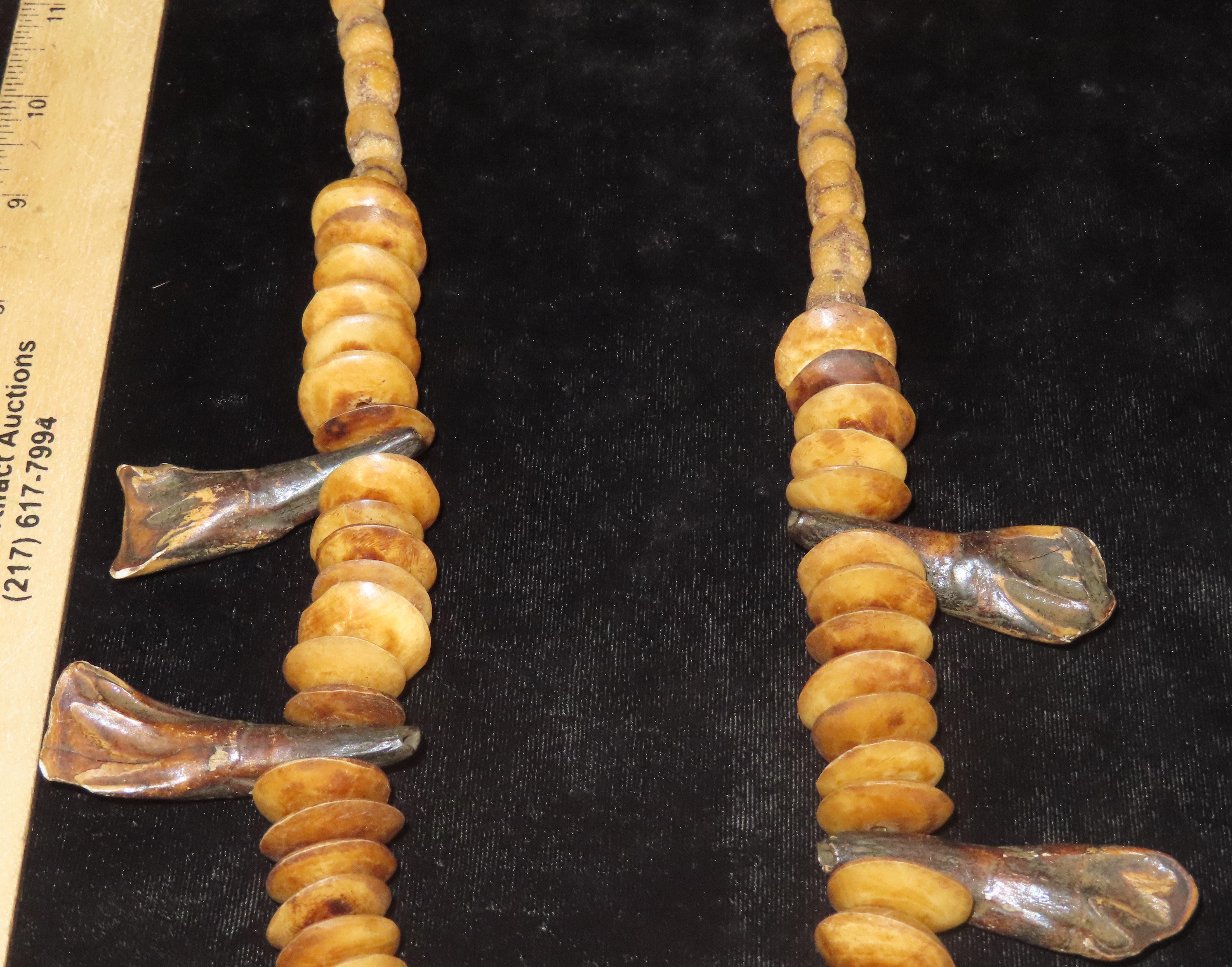 14 1/2″ Buffalo Tooth & Bone Bead/Sandcast Bead Necklace