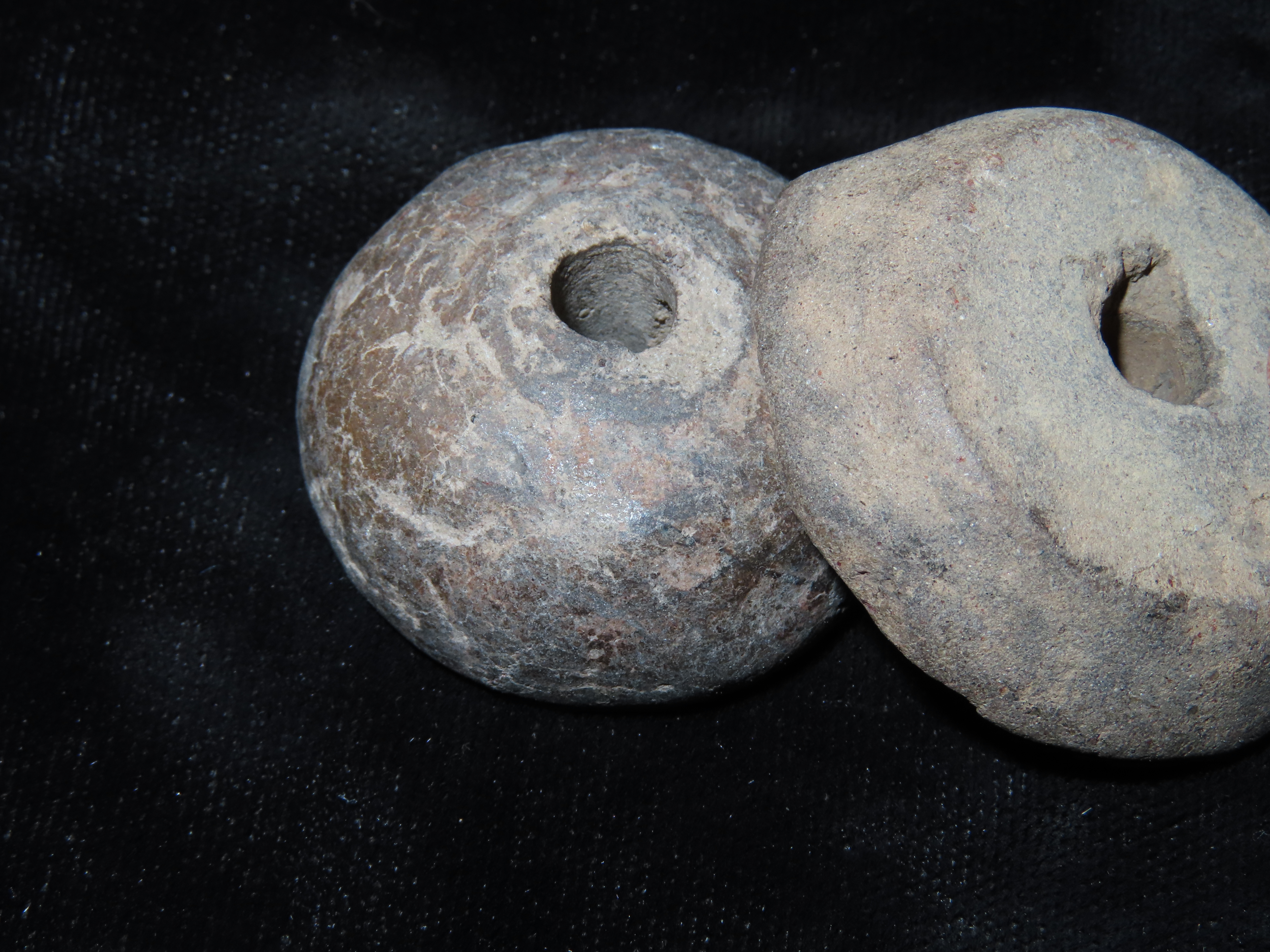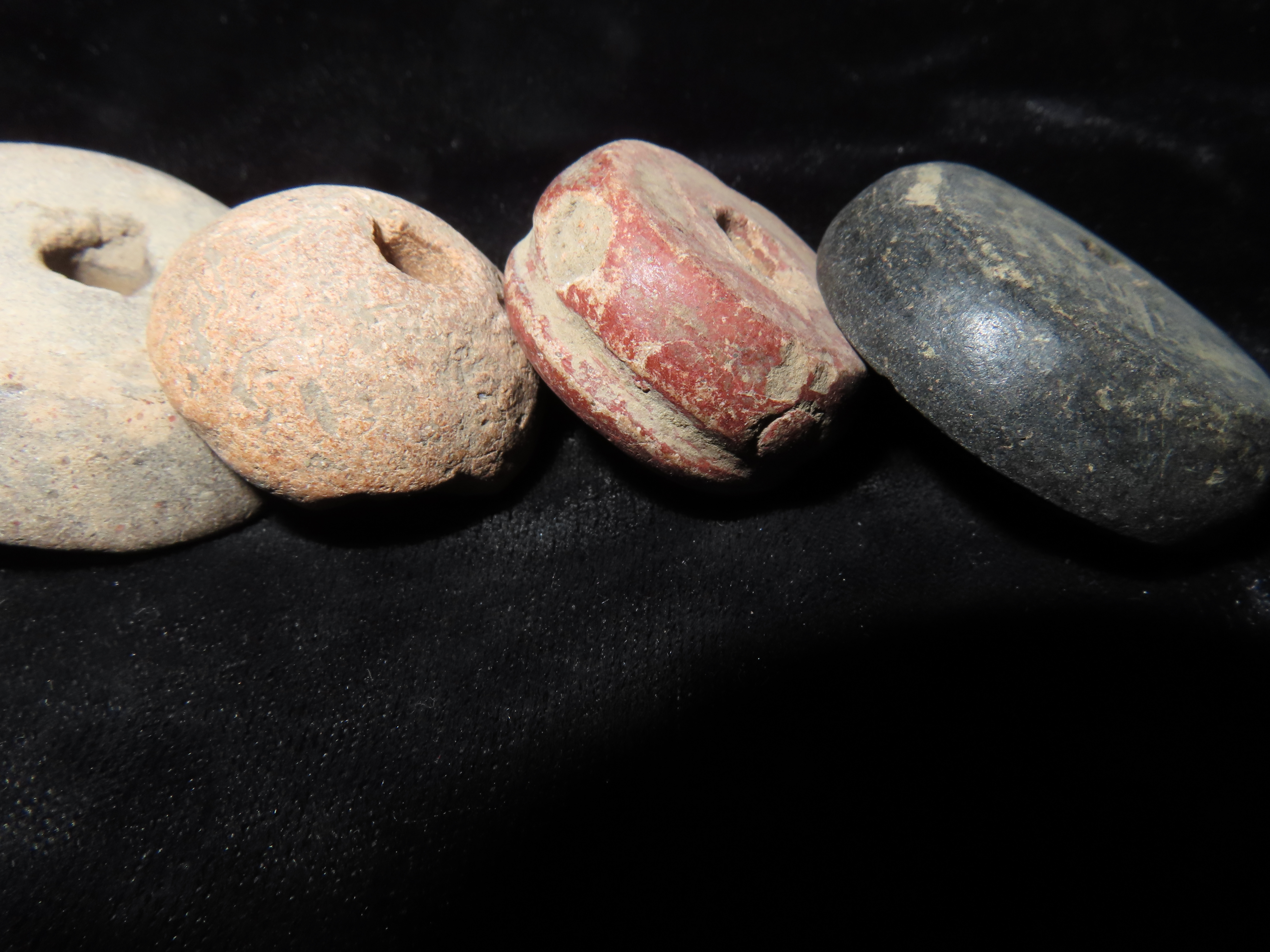 Lot of 5 Pre-Columbian Pottery Whorl Beads, Some Engraved/Notched, Guatemala, Ex Rich Atkins Collection